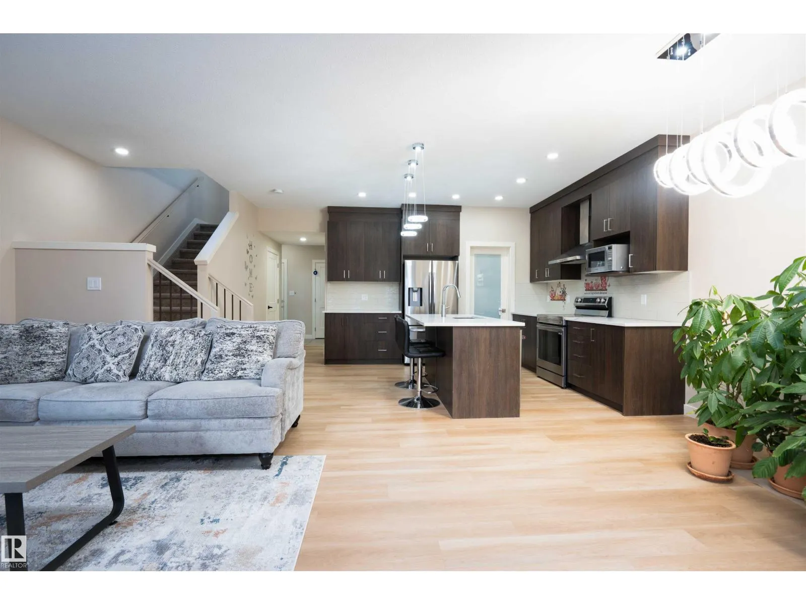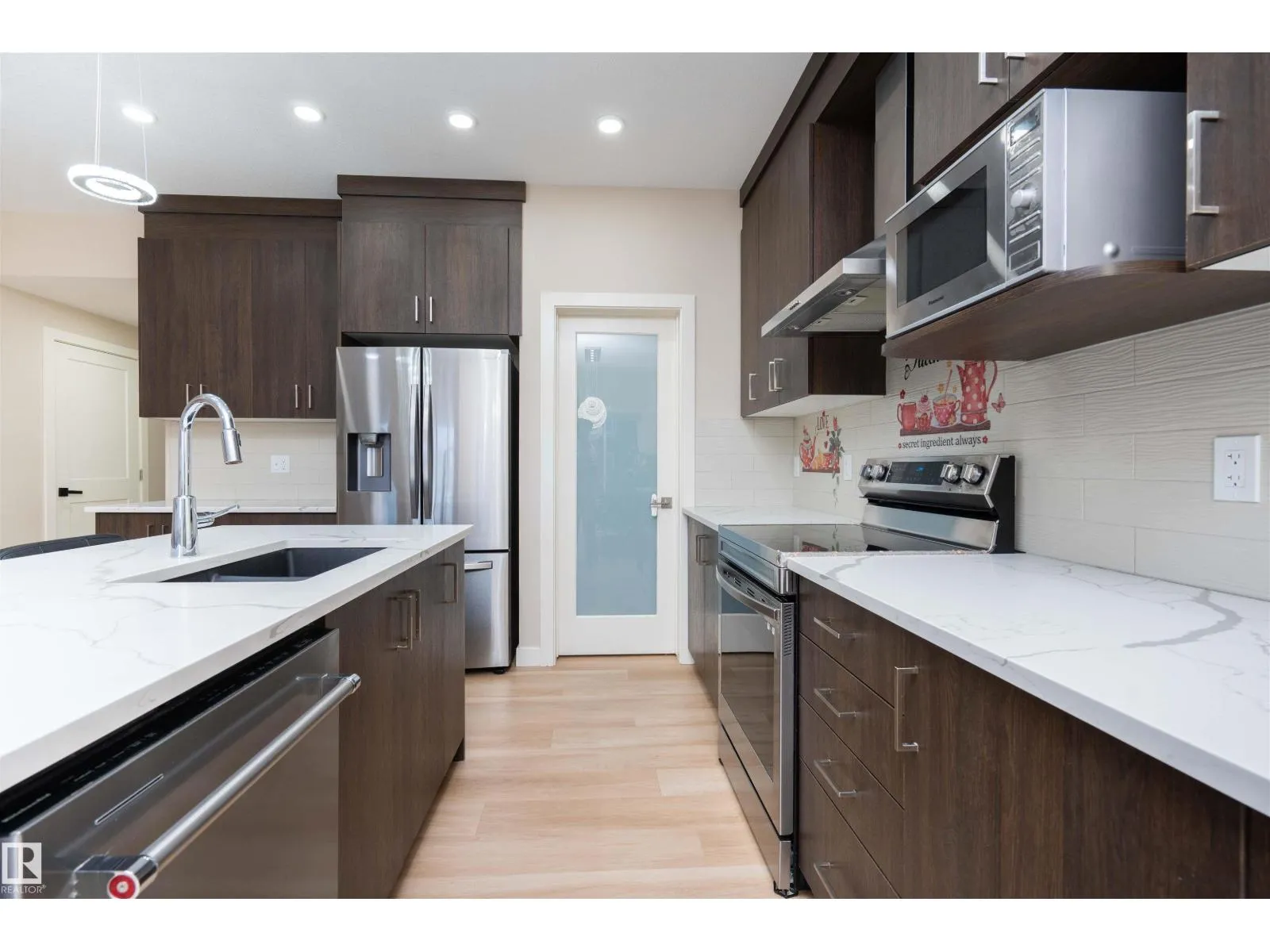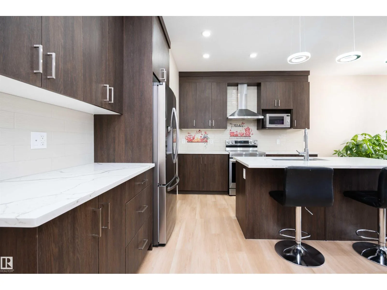 Beautifully crafted corner-lot Half Duplex nestled in a peaceful Edmonton community, offering 5 bed, 3.5 bath & double attached garage. Upgraded quartz countertops and upgraded electric fixtures throughout the house. The bright & spacious main level features living area with fireplace, kitchen with walk-through pantry, island seating & dining space and a convenient half bath. Upstairs, relax in the luxurious primary suite with indent ceiling, walk-in closet and spa-like 5-pc ensuite, along with two additional bedrooms, a 4-pc bath, laundry & a versatile bonus room. The fully finished basement with a separate entrance adds incredible flexibility, featuring 2 bedrooms, a 4-pc bath, separate laundry & a functional kitchen/living area. Close to parks, ponds, ravines, scenic walking trails, schools, shopping, dining & public transit, with quick access to Hwy 2, 20 mins drive to YEG Airport, Premium Outlet Mall & 10 mins to South Common. A rare corner-lot opportunity in a serene yet connected location. (id:27476)
