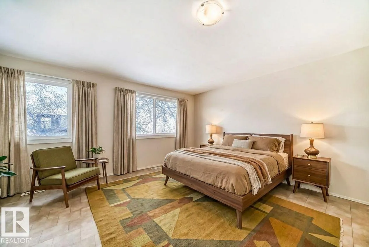 Spacious 2557 sq.ft. 2-story home in the heart of Belgravia! Situated on quiet tree-lined street with a 600 sq.m. lot (54'x120'), backing the Charles Simmonds Park! The home is bright + open with great natural light, plus numerous upgrades including windows (2020), shingles (2020) , sewer line, eaves, electrical. As you enter you are greeted with hardwood flooring in the living room area, plus new lino throughout the kitchen, dining + hallway. The dining room has a wood-burning fireplace for warmth and ambiance, with easy access out to the deck, yard + views of the park. The upper levels have a total of 5 bedrooms, with two full bathrooms on the top floor plus a small bonus room area. On the main you will also find another usable office/bedroom, with 2-piece bath adjacent to it. The lower level features a rec room area with t + g pine, laundry area + extra storage. Complete the package with a double detached garage + large driveway. Great location close to parks, U of A, River Valley, Whyte Avenue + LRT! (id:27476)