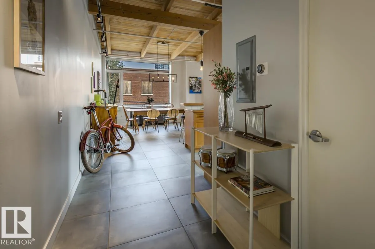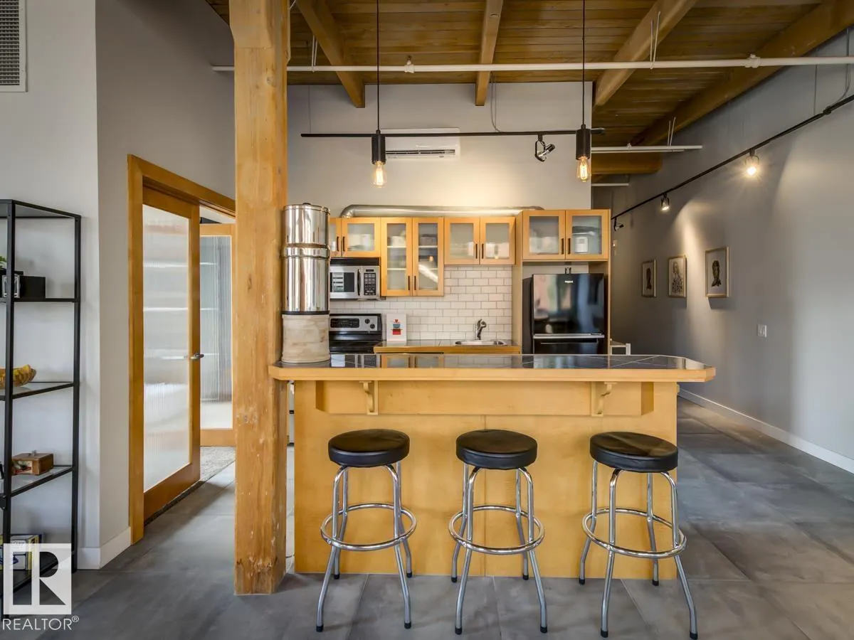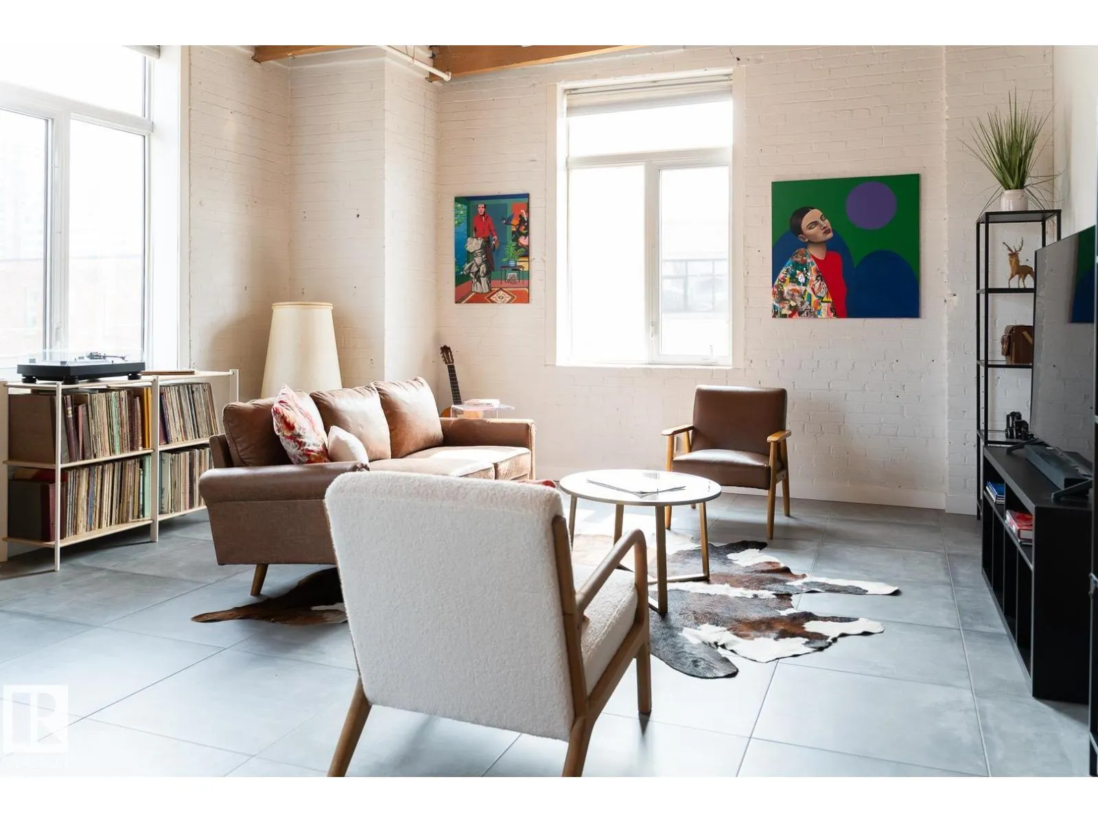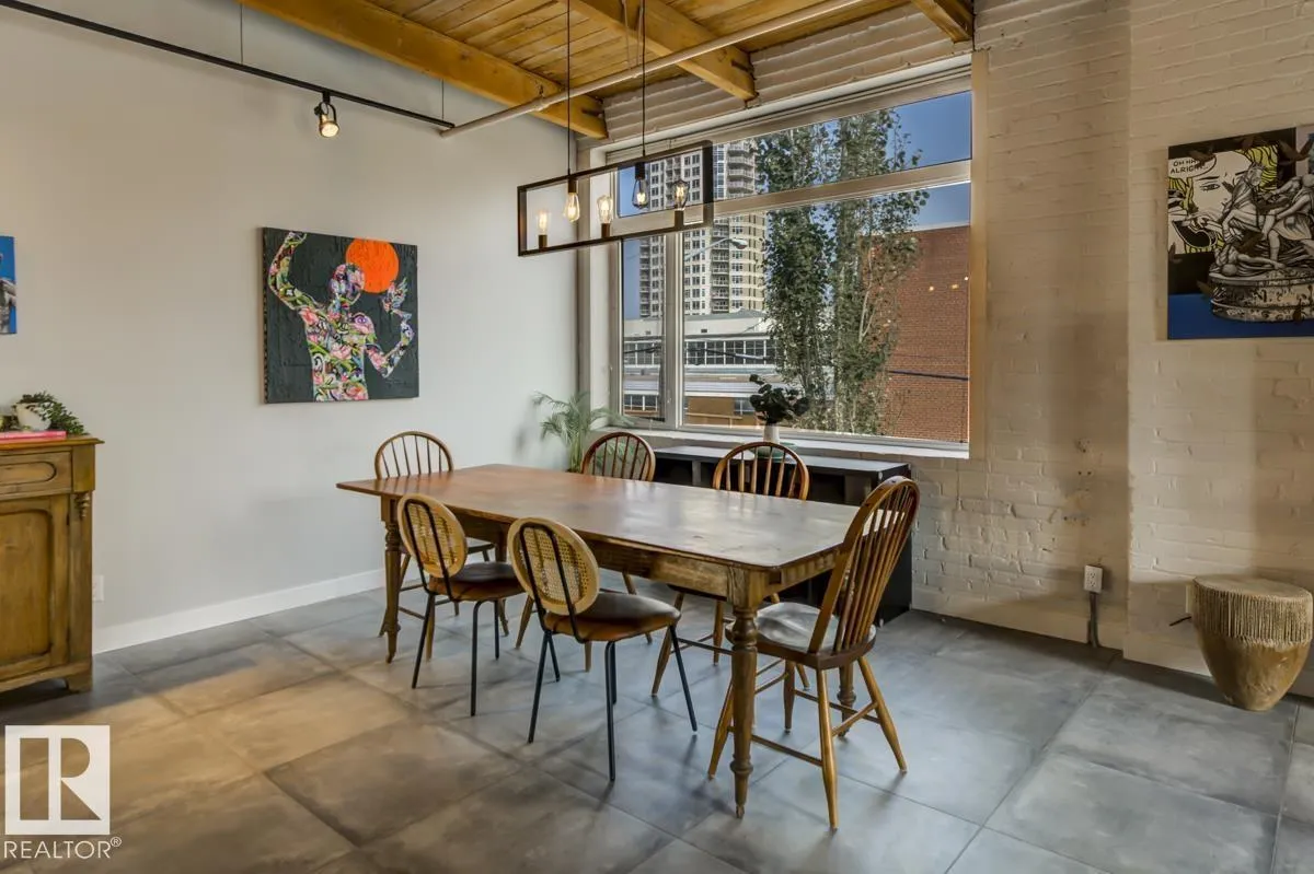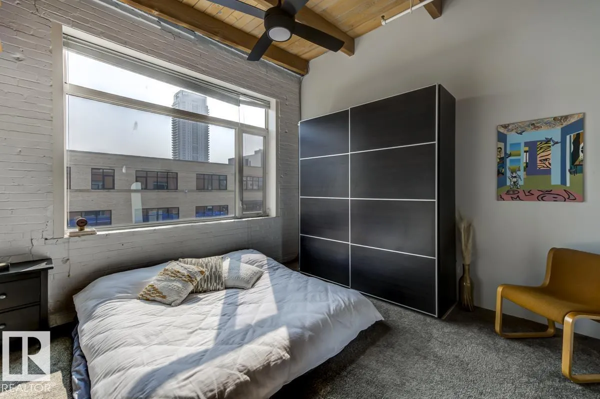 Step into one of Edmontonâs rarest lofts: a top-floor, corner residence in the iconic 1929 John Deere Warehouse, reimagined by DUB Architects as Seventh Street Lofts. This 945 sq ft space delivers true loft living with soaring 13-ft fir-beam ceilings, exposed brick, rare and expansive south- and east-facing windows flooding the loft with natural light. Industrial meets modern with imported porcelain tile, fresh paint, a sleek renovated 4-piece bath, and brand-new A/C. The open kitchen, with stainless appliances and a generous islandâis made for hosting, while the private bedroom and full wardrobe keep life effortless. Flexible, bold, and unapologetically different, this loft adapts to your lifestyle. In-suite laundry, parking, and Airbnb-friendly bylaws offer flexibility. Steps to the Ice District, MacEwan, cafés, markets, nightlife, and the future LRTâthis isnât just a home, itâs a piece of Edmonton history you can live in (id:27476)