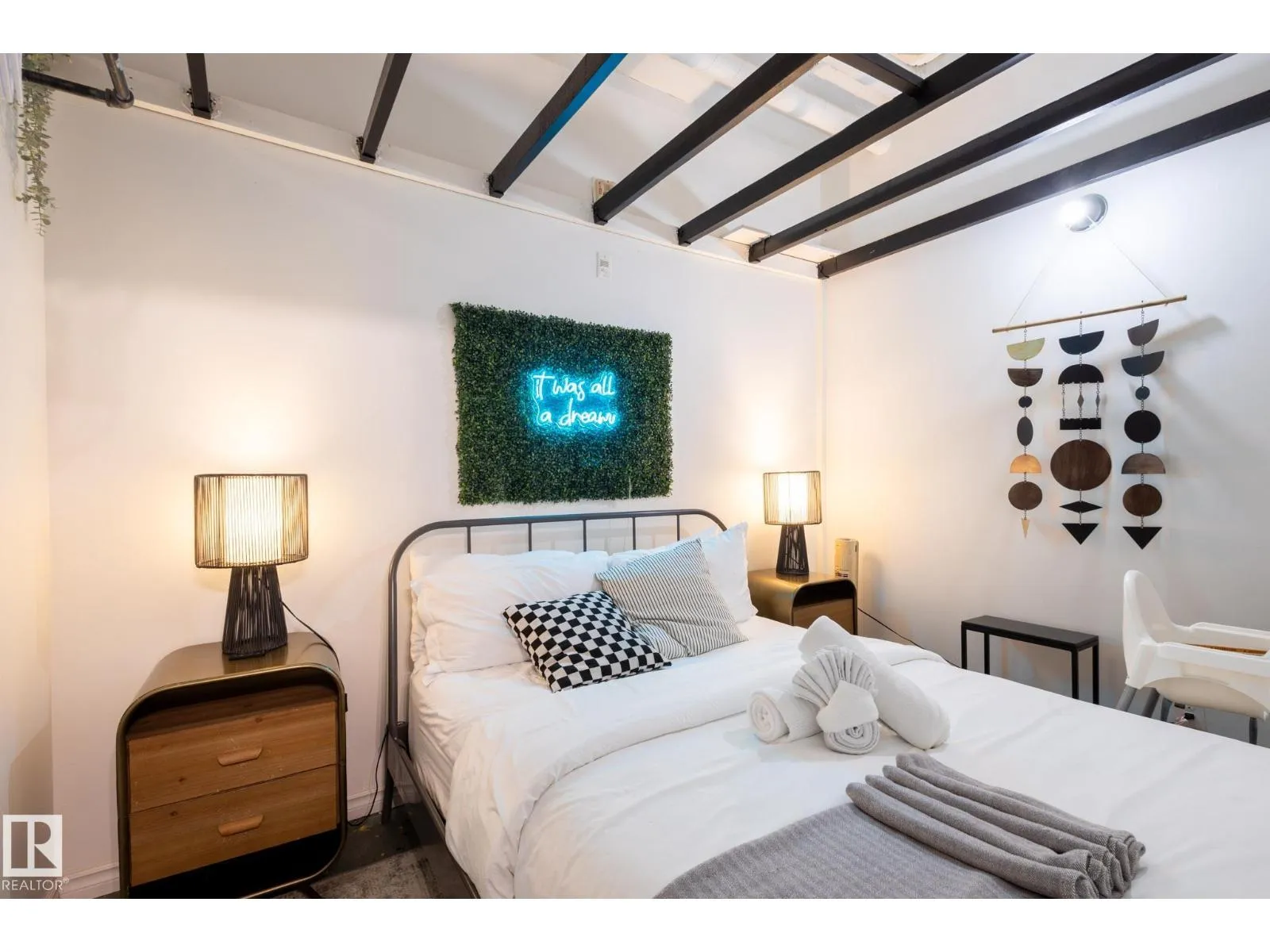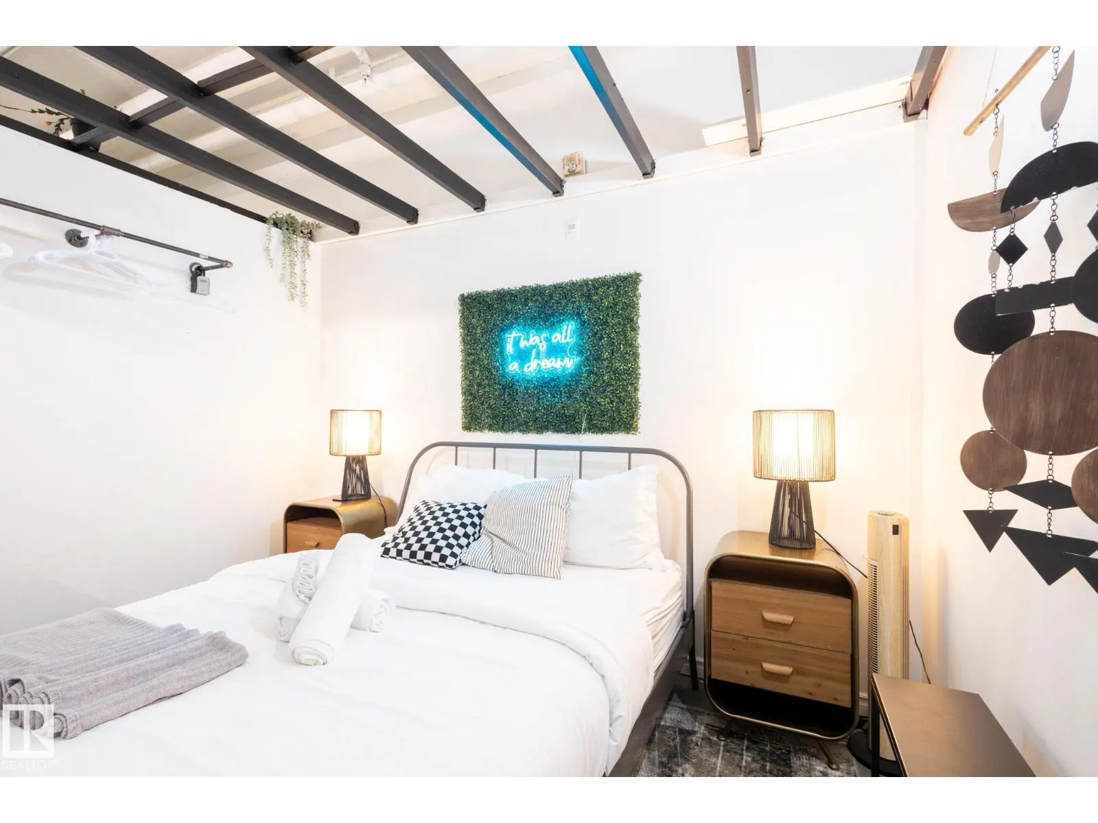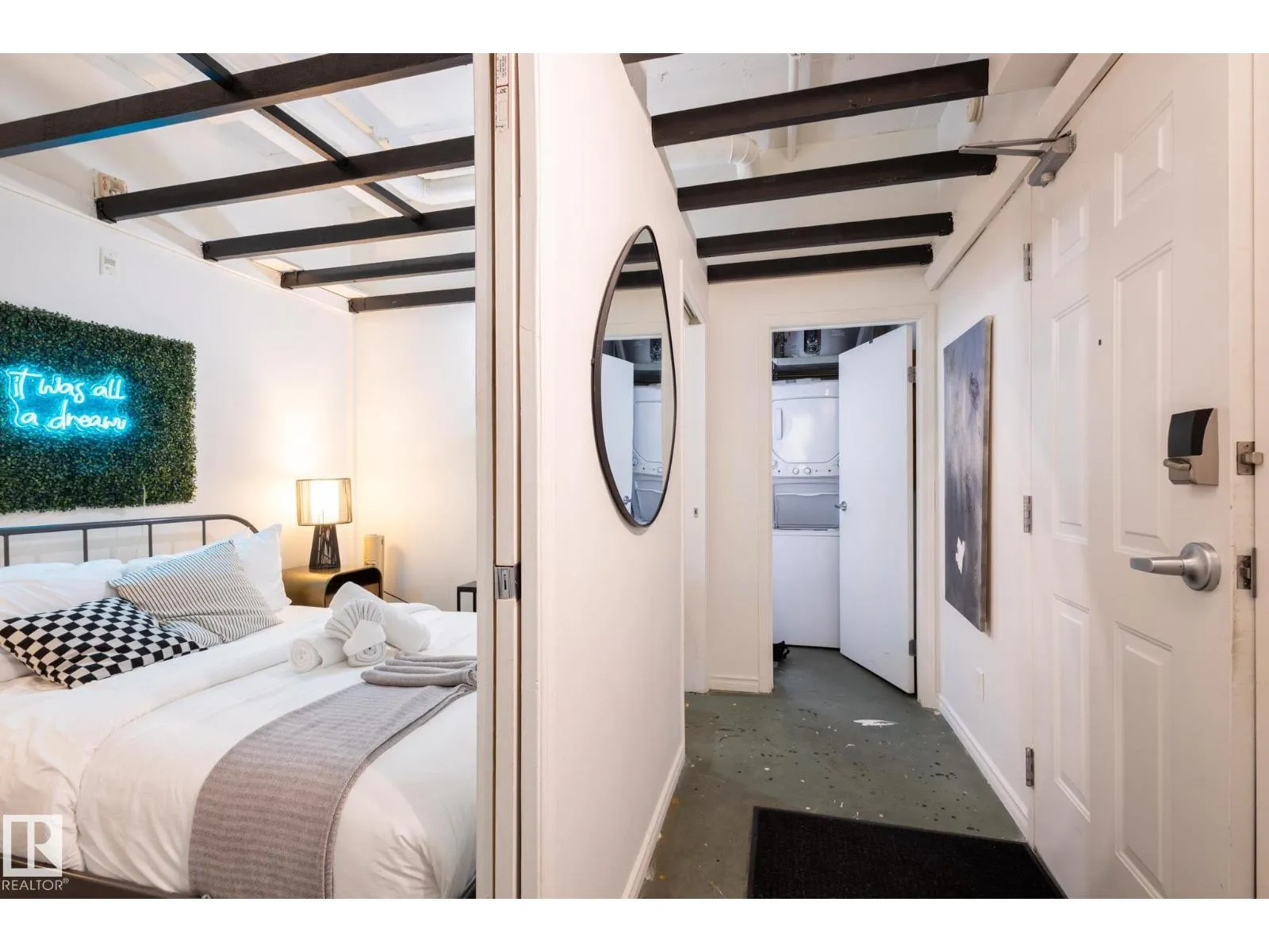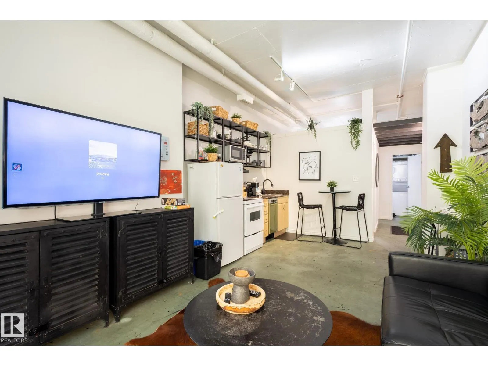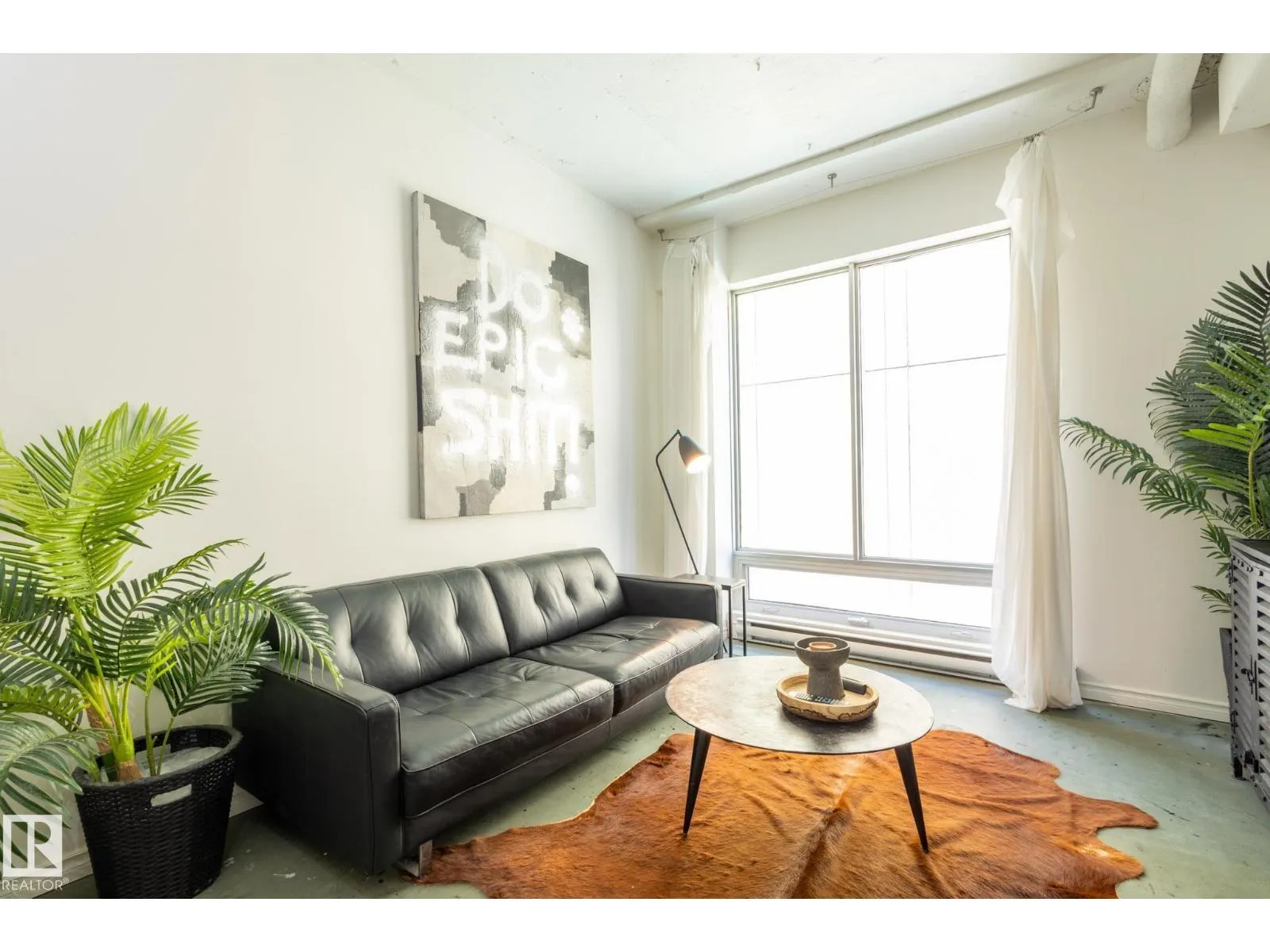 Experience downtown Edmonton living in this unique 1 bedroom loft style condo at Cambridge Lofts. Designed with exposed concrete flooring and ceilings, this unit boasts a functional open layout, with a modern urban feel. The kitchen has been tastefully updated with efficient storage, flowing seamlessly into a bright living space ideal for everyday living or entertaining. The bedroom is well sized and complemented by a full four piece bathroom and the convenience of in suite laundry. Located directly on Jasper Avenue, steps to LRT, restaurants, nightlife, shopping, and the River Valley. The unit can be sold fully furnished and is currently operating as a short term rental, making it an excellent option for investors, students, or professionals seeking flexibility. (id:27476)