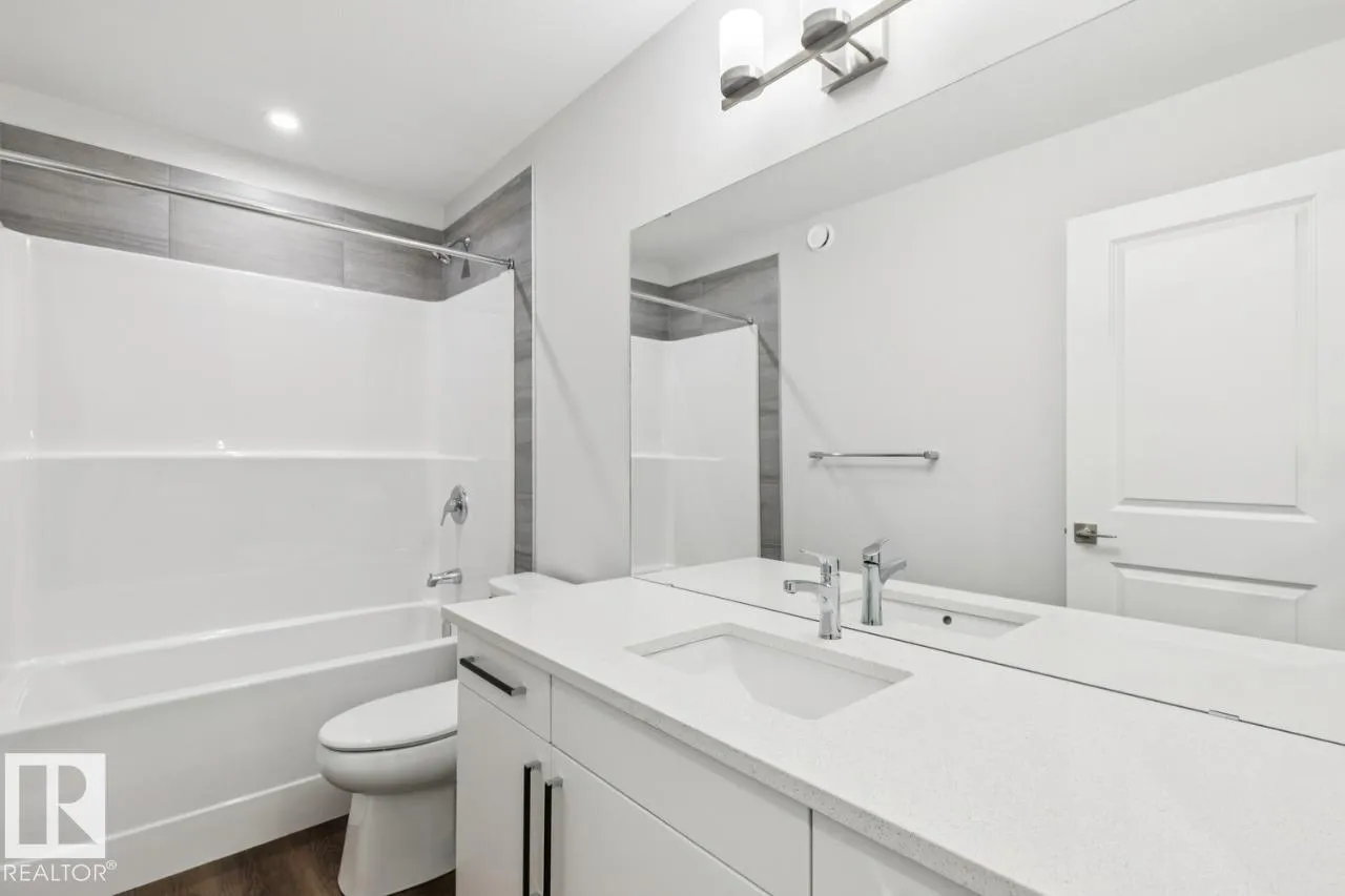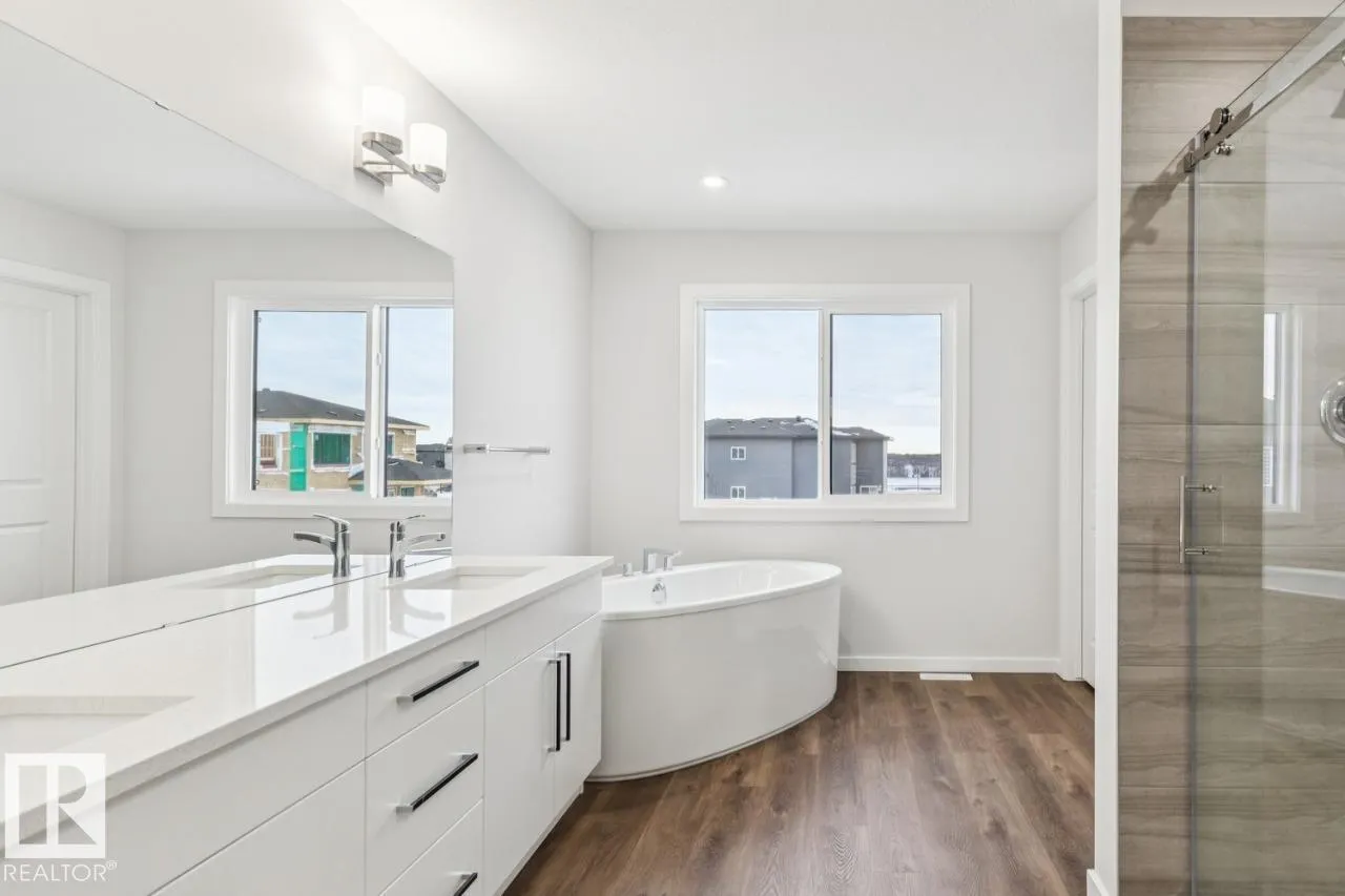 The Remi features a grand entrance with open-to-above foyer, a main floor bedroom and full bathroom with a tiled shower, and a side entrance with 9ft foundation and 3 basement windows, ready for a future potential development. The main floor also features a mudroom, a large walkthrough pantry and a spacious kitchen, dining area and great room for seamless living. Upstairs, you will find double doors leading into the large primary bedroom, featuring a stunning 5-piece ensuite and large walk-in closet, as well as a large laundry room, bonus room, 2 secondary bedrooms, and a main bathroom. This home features spindle railing that contributes to the open feel of the home, upgraded quartz countertops and melamine shelving throughout the entire house, soft close cabinet doors and drawers throughout, and 41â upper cabinets in the kitchen. This home features Luxury Vinyl Plank flooring throughout the main floor and all bathrooms, upgraded chandeliers in the stairwell and dinette. Photos are representative. (id:27476)