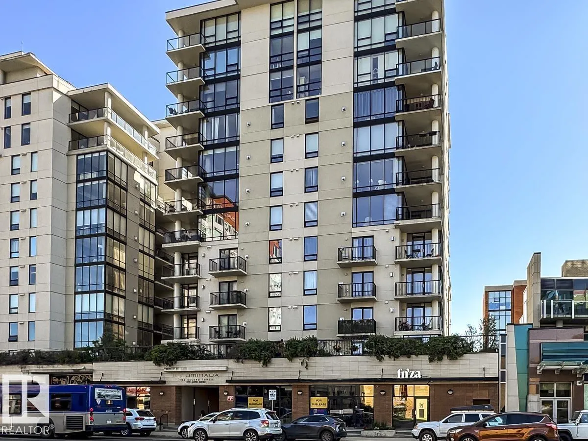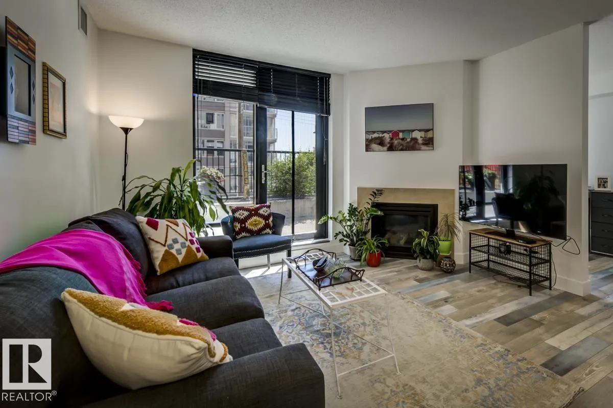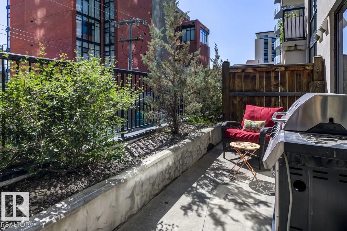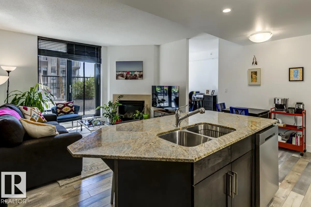 Live in style at the prestigious Illuminada II! This upscale 1 bed + den unit is packed w/ upgrades & offers a rare blend of luxury, function, & location. The sleek kitchen features granite counters, S/S appliances & an eating bar, all overlooking a sunlit living room w/ a cozy fireplace. Step out to your MASSIVE 343 sqft PRIVATE PATIOâa true outdoor oasis w/ gas BBQ hookup & water tap, ideal for entertaining or unwinding. The spacious primary boasts a spa-inspired 3pc ensuite, while the den adds flexibility as a home office or guest space. Extras include a 2pc bath, in-suite laundry w/ added storage, A/C, new heat pump (2024), newer laminate floors (2018), LED lighting, updated shower (2018), new carpet (2023) & fresh paint. Titled underground parking adds convenience in this sought-after, well-maintained building. Steps to fine dining, shops, transit, river valley trails & Victoria Golf Courseâthis is elevated downtown living at its best! (id:27476)
