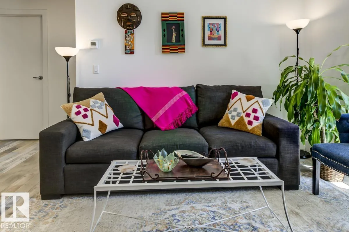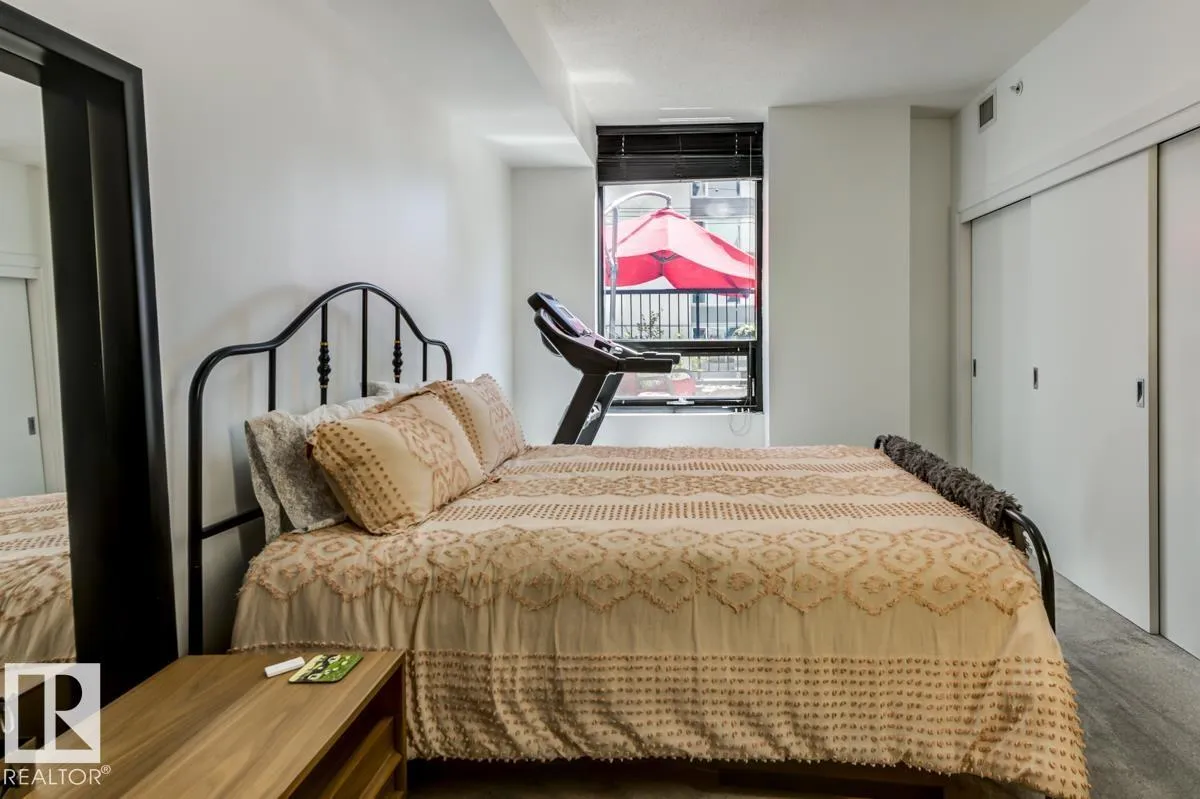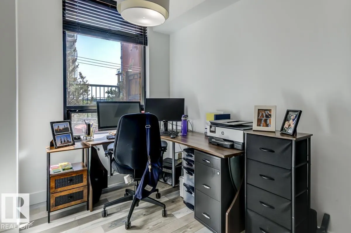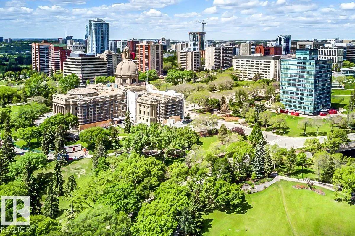 Live in style at the prestigious Illuminada II! This upscale 1 bed + den unit is packed w/ upgrades & offers a rare blend of luxury, function, & location. The sleek kitchen features granite counters, S/S appliances & an eating bar, all overlooking a sunlit living room w/ a cozy fireplace. Step out to your MASSIVE 343 sqft PRIVATE PATIOâa true outdoor oasis w/ gas BBQ hookup & water tap, ideal for entertaining or unwinding. The spacious primary boasts a spa-inspired 3pc ensuite, while the den adds flexibility as a home office or guest space. Extras include a 2pc bath, in-suite laundry w/ added storage, A/C, new heat pump (2024), newer laminate floors (2018), LED lighting, updated shower (2018), new carpet (2023) & fresh paint. Titled underground parking adds convenience in this sought-after, well-maintained building. Steps to fine dining, shops, transit, river valley trails & Victoria Golf Courseâthis is elevated downtown living at its best! (id:27476)