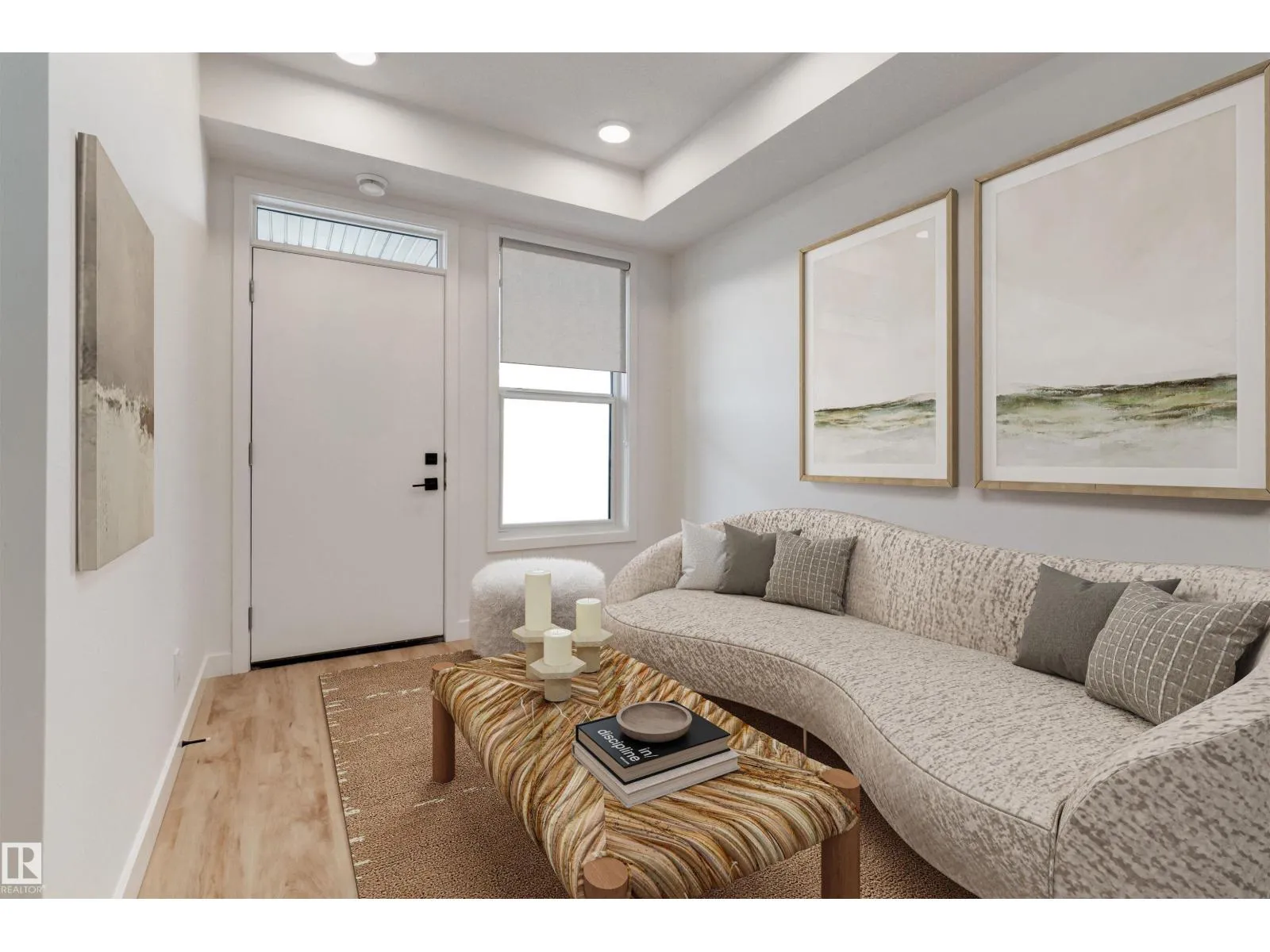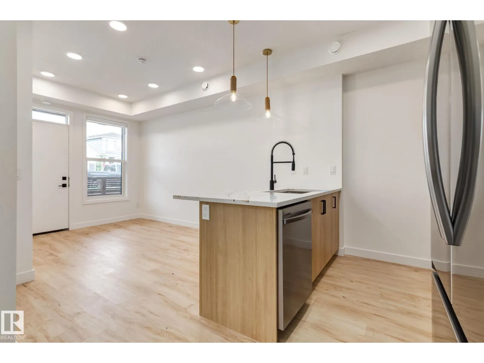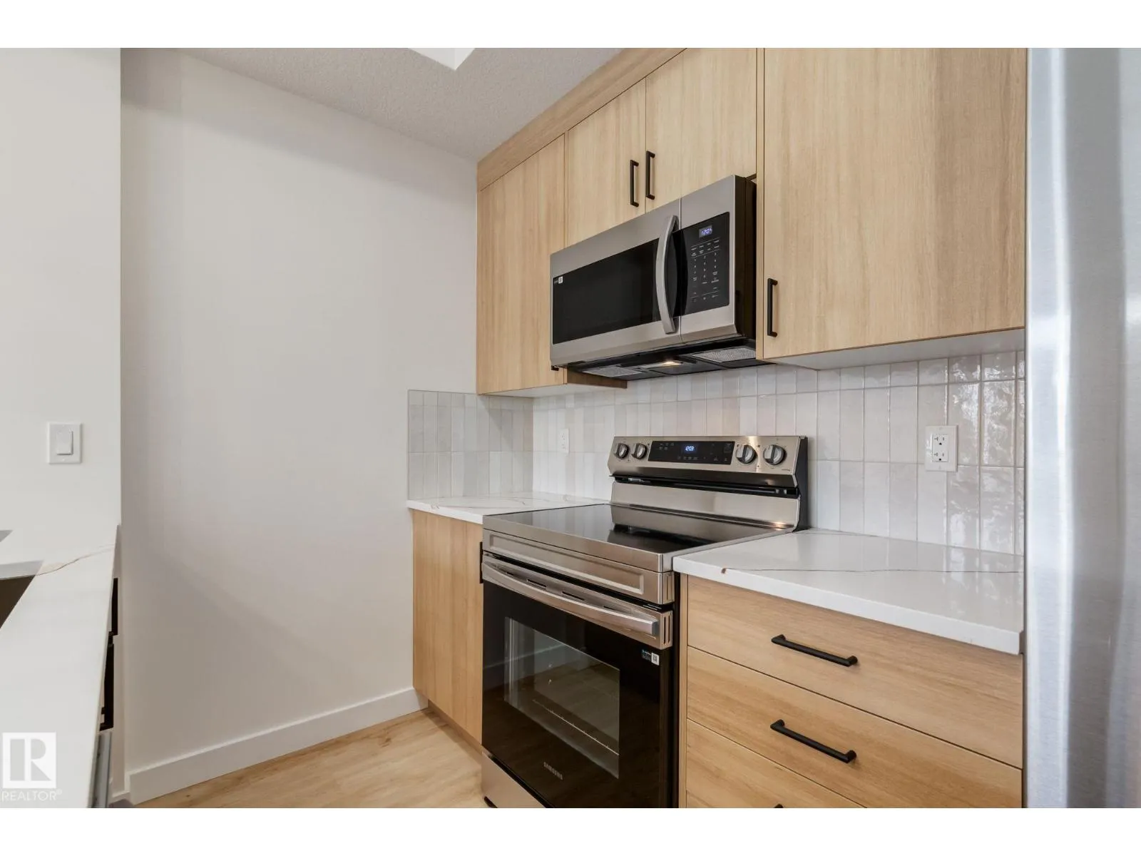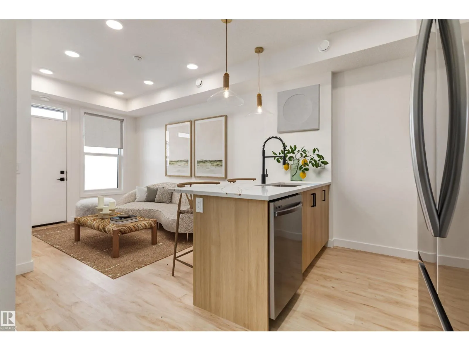 Experience effortless modern living in this Glenridding Essential condo featuring the thoughtfully designed Cedar model by award-winning Rohit Homes. This single level has the Rohitâs serene Ethereal Zen interior palette, the space blends soft tones, natural textures, and calming design elements to create a warm, modern ambiance. This thoughtfully designed floor plan offers a functional main-floor layout, featuring a contemporary kitchen with a central island that flows into a bright living area with direct access to a private patioâperfect for relaxing or entertaining. The home includes a comfortable bedroom, a 4-piece bathroom, in-suite laundry for everyday convenience, and an assigned parking stall. Ideally located close to schools, parks, interconnected walking trails, Whitemud Creek Ravine, Jagare Ridge Golf Course, and the Currents of Windermere shopping and dining district. Property under construction, photos of a different unit with the same layout and finishes, virtually staged for illustration. (id:27476)