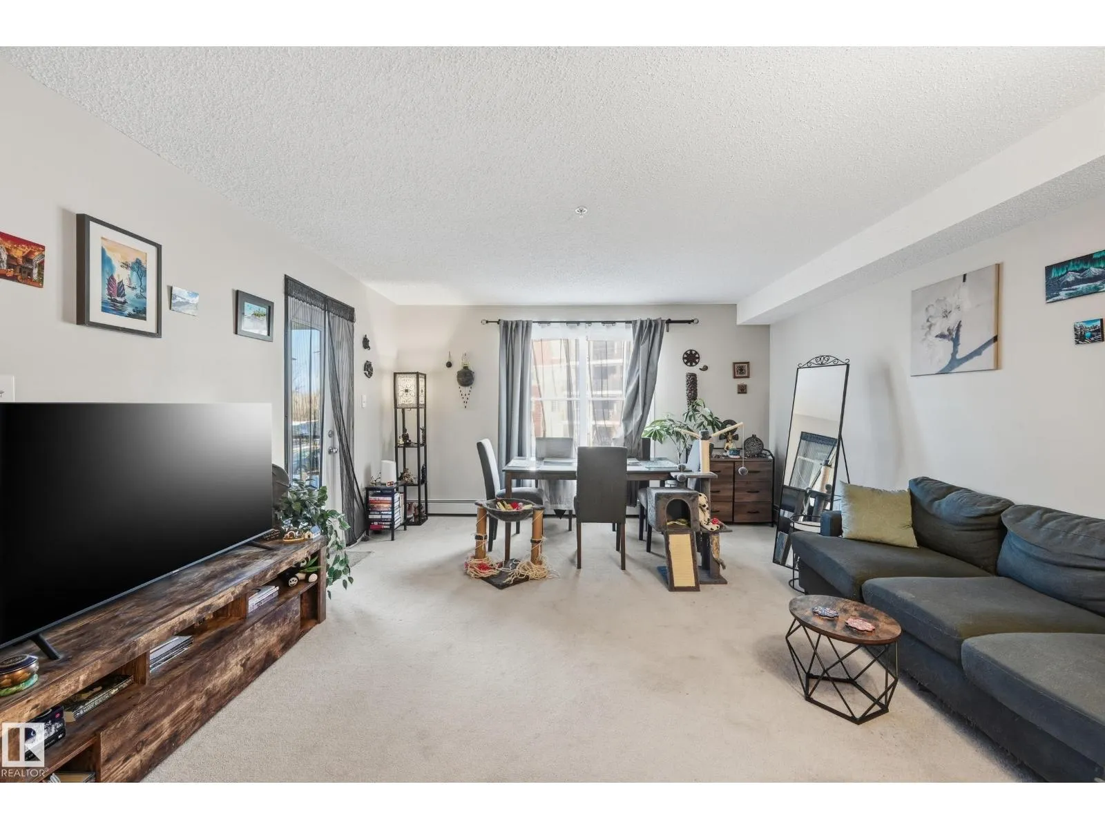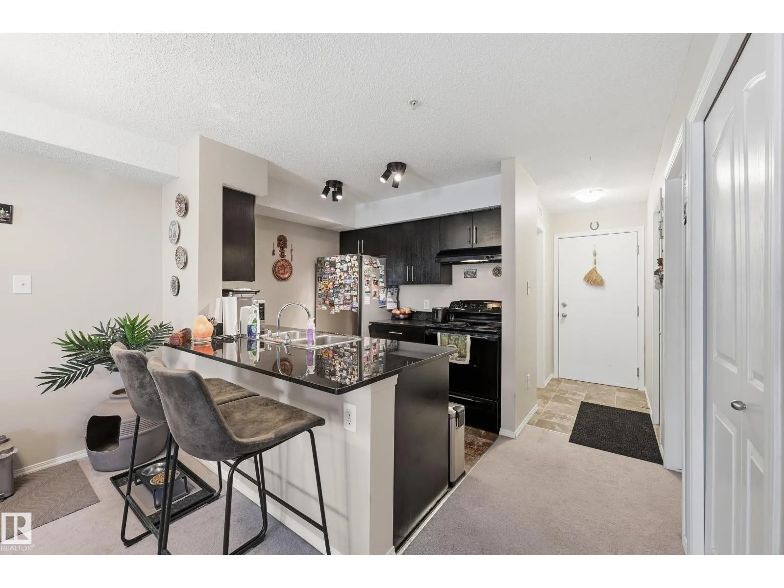 Welcome to this well-kept and affordable condo offering comfort and convenience. This unit features two bedrooms, one full bathroom, ensuite laundry, and one assigned parking stall. The modern kitchen is finished with dark cabinetry, granite countertops, and matching appliances, opening into a spacious living area with patio doors that lead to a low-maintenance balconyâperfect for enjoying fresh air. The primary bedroom offers a generously sized closet and an additional large storage room, providing plenty of space for organization. A stackable washer and dryer are included for added convenience. The building is well maintained and equipped with an elevator. Ideally located close to schools, green spaces, walking trails, shopping, and with quick access to Anthony Henday. Priced aggressively and listed to sellâan excellent opportunity for first-time buyers or investors. (id:27476)