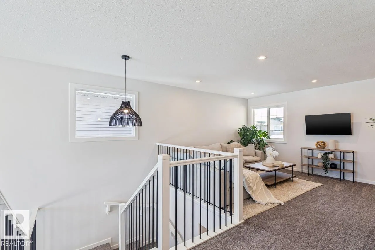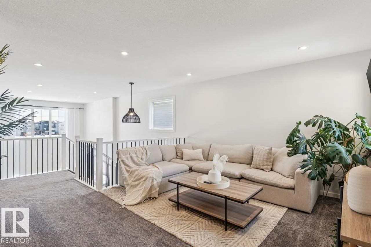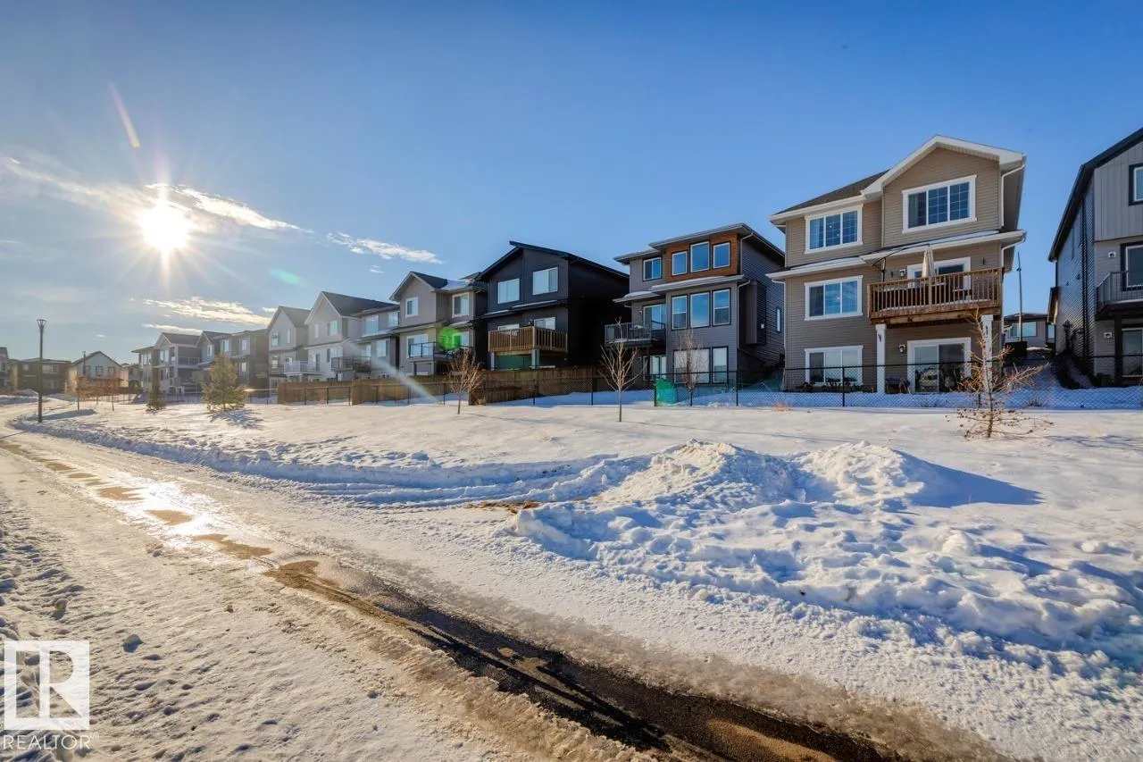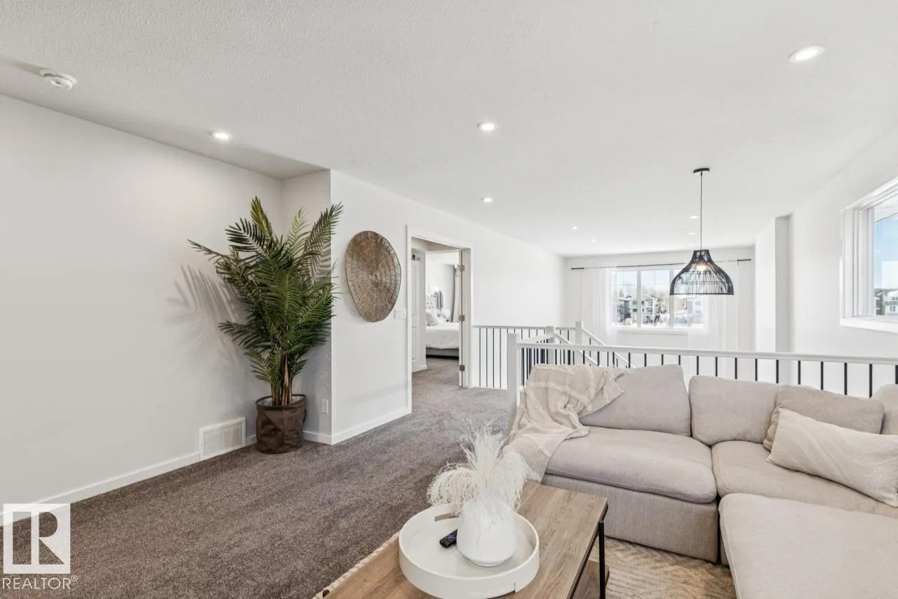 Located at 2543 208 Street NW, this well-maintained 2,300 sq ft walkout home backs onto a pond with no rear neighbours, offering privacy and open views. Situated in a completed community with finished street construction, the property is move-in ready. The main level features an open-to-above living room with large windows capturing natural light and pond views, along with a main-floor bedroom and full bathroom with walk-in shower, ideal for guests, or a home office. Central air conditioning is included. Upstairs, the primary bedroom is accessed through double doors and offers a spa-inspired ensuite and a large walk-in closet. Additional bedrooms and bathrooms complete the upper level. The walkout basement is unfinished and ready for potential future development with large windows. Fully landscaped yard, attached double garage, driveway parking, smart home features, nearby playground, schools, transit, and walkable access to grocery-anchored retail complete this offering. (id:27476)