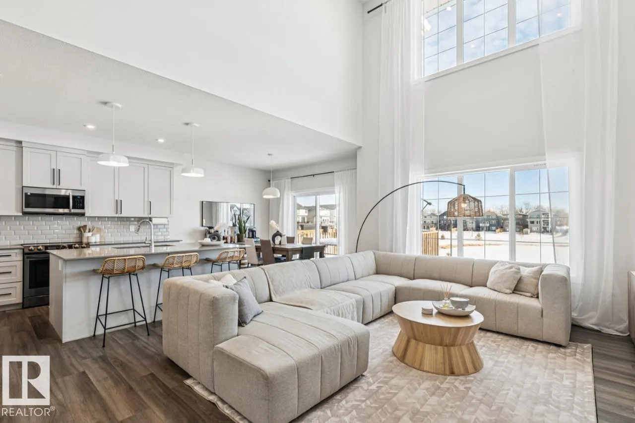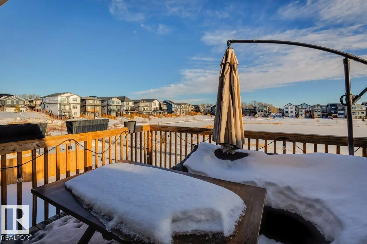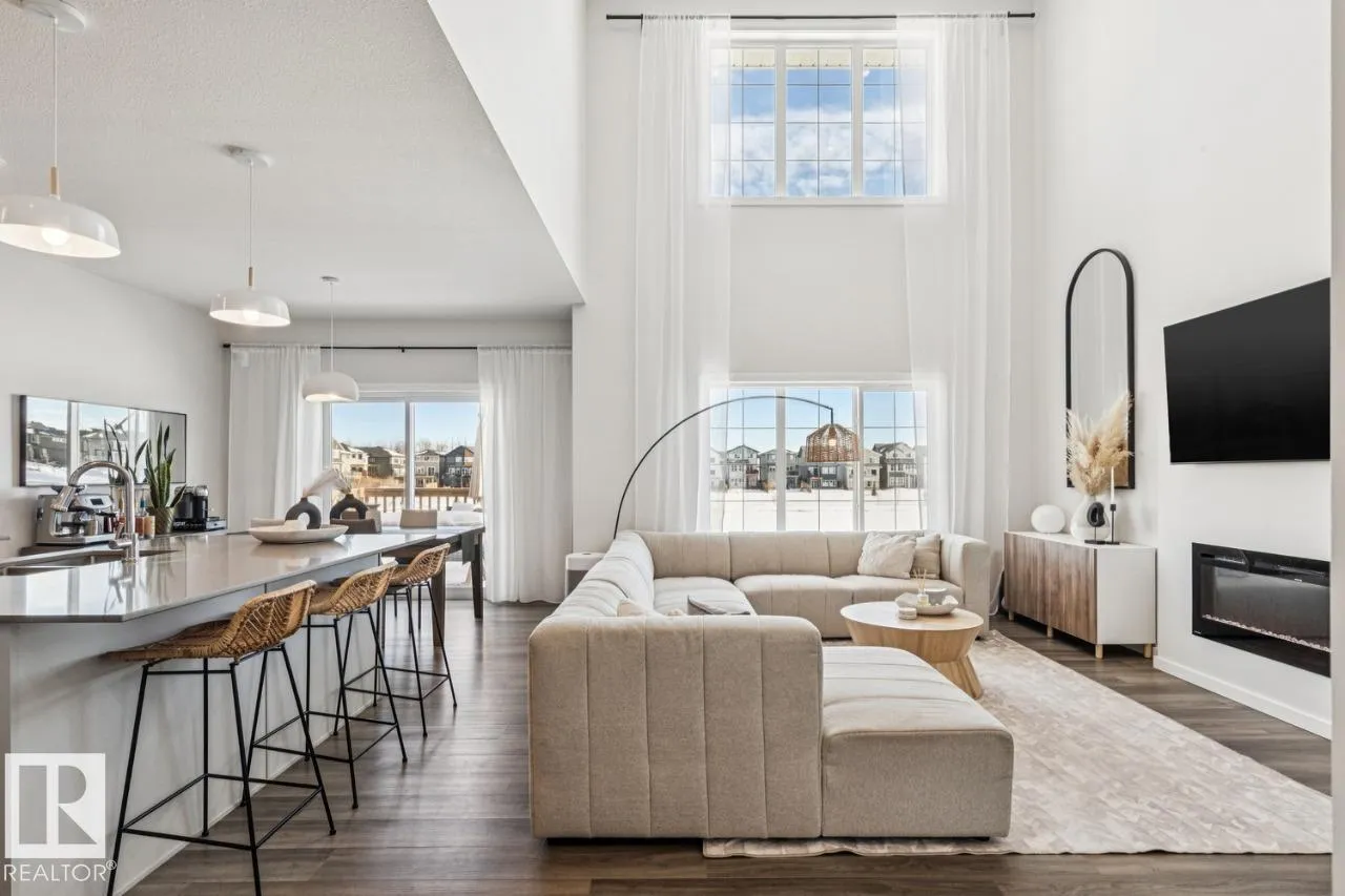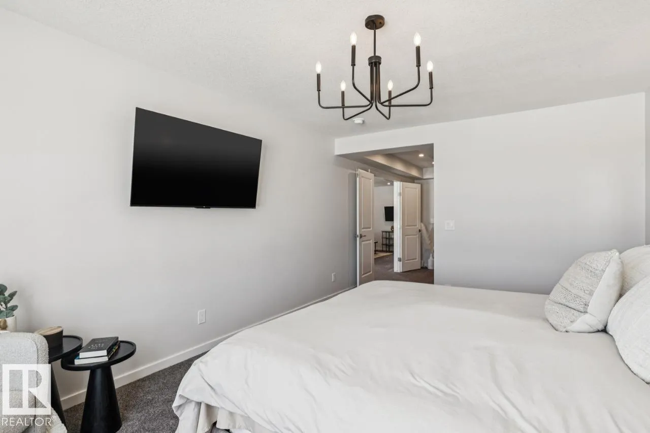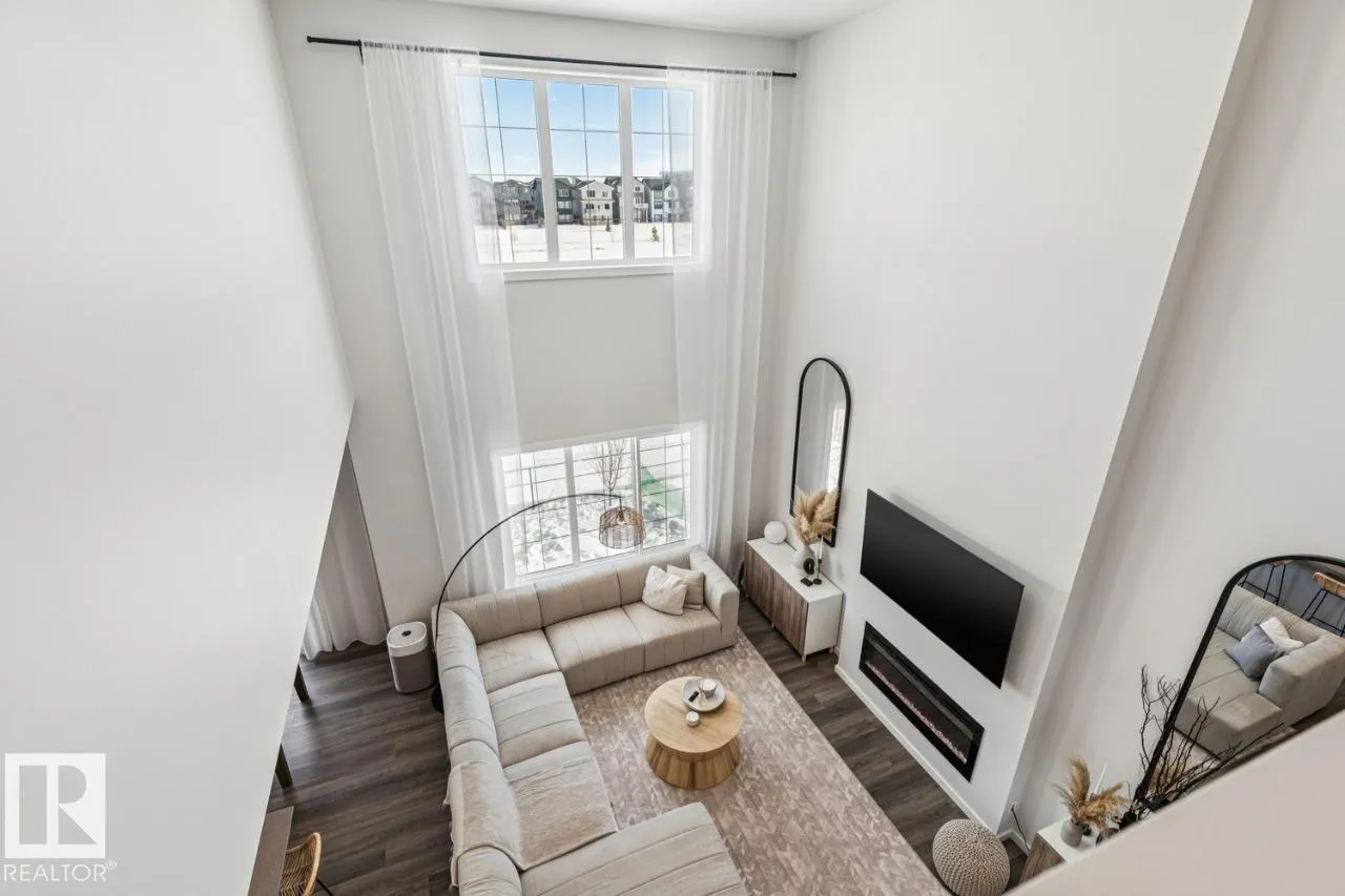 Located at 2543 208 Street NW, this well-maintained 2,300 sq ft walkout home backs onto a pond with no rear neighbours, offering privacy and open views. Situated in a completed community with finished street construction, the property is move-in ready. The main level features an open-to-above living room with large windows capturing natural light and pond views, along with a main-floor bedroom and full bathroom with walk-in shower, ideal for guests, or a home office. Central air conditioning is included. Upstairs, the primary bedroom is accessed through double doors and offers a spa-inspired ensuite and a large walk-in closet. Additional bedrooms and bathrooms complete the upper level. The walkout basement is unfinished and ready for potential future development with large windows. Fully landscaped yard, attached double garage, driveway parking, smart home features, nearby playground, schools, transit, and walkable access to grocery-anchored retail complete this offering. (id:27476)