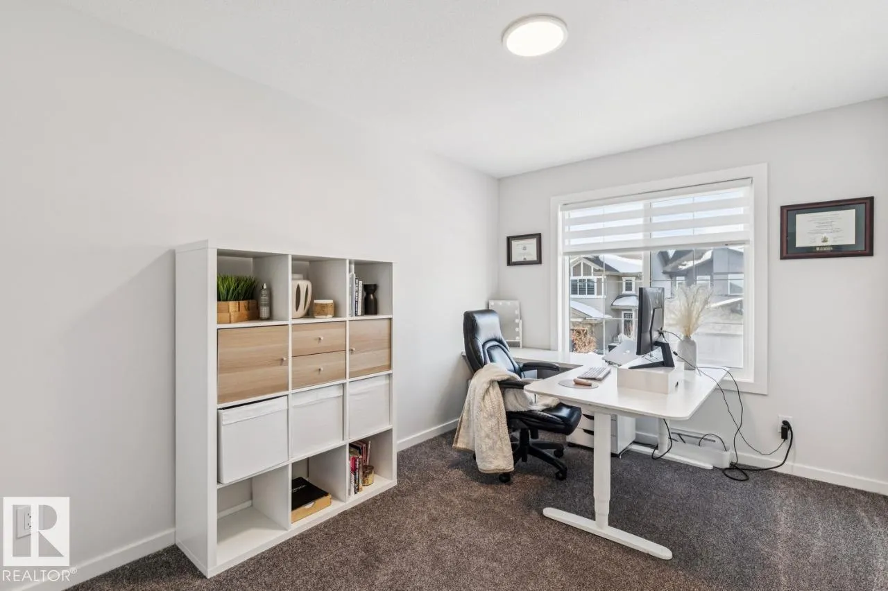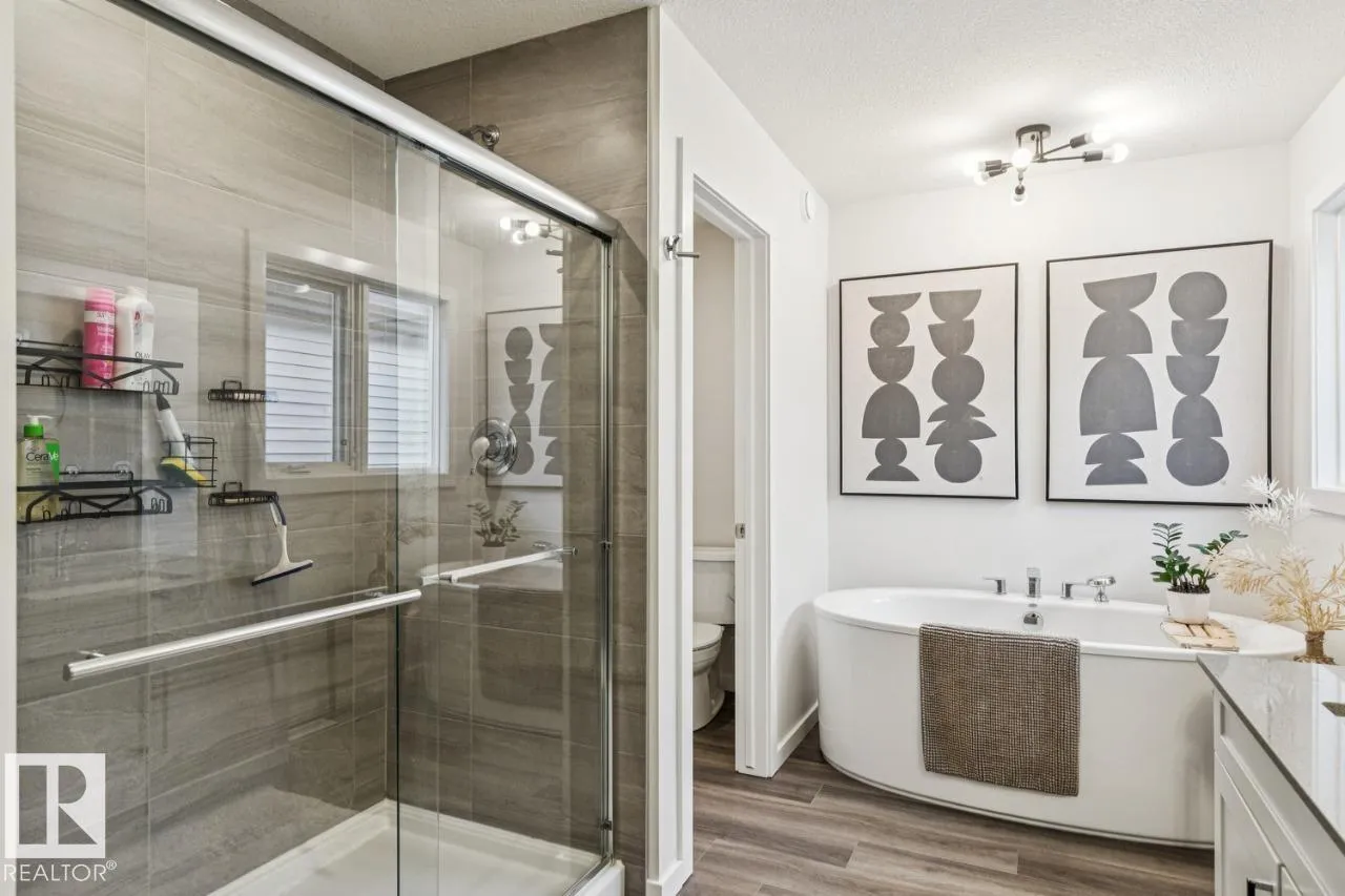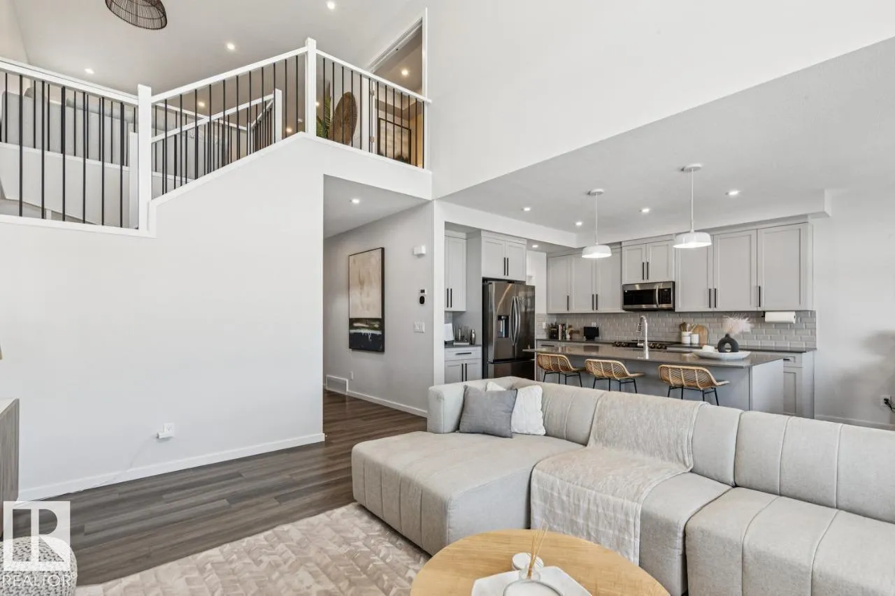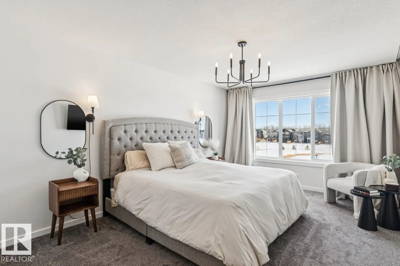 Located at 2543 208 Street NW, this well-maintained 2,300 sq ft walkout home backs onto a pond with no rear neighbours, offering privacy and open views. Situated in a completed community with finished street construction, the property is move-in ready. The main level features an open-to-above living room with large windows capturing natural light and pond views, along with a main-floor bedroom and full bathroom with walk-in shower, ideal for guests, or a home office. Central air conditioning is included. Upstairs, the primary bedroom is accessed through double doors and offers a spa-inspired ensuite and a large walk-in closet. Additional bedrooms and bathrooms complete the upper level. The walkout basement is unfinished and ready for potential future development with large windows. Fully landscaped yard, attached double garage, driveway parking, smart home features, nearby playground, schools, transit, and walkable access to grocery-anchored retail complete this offering. (id:27476)