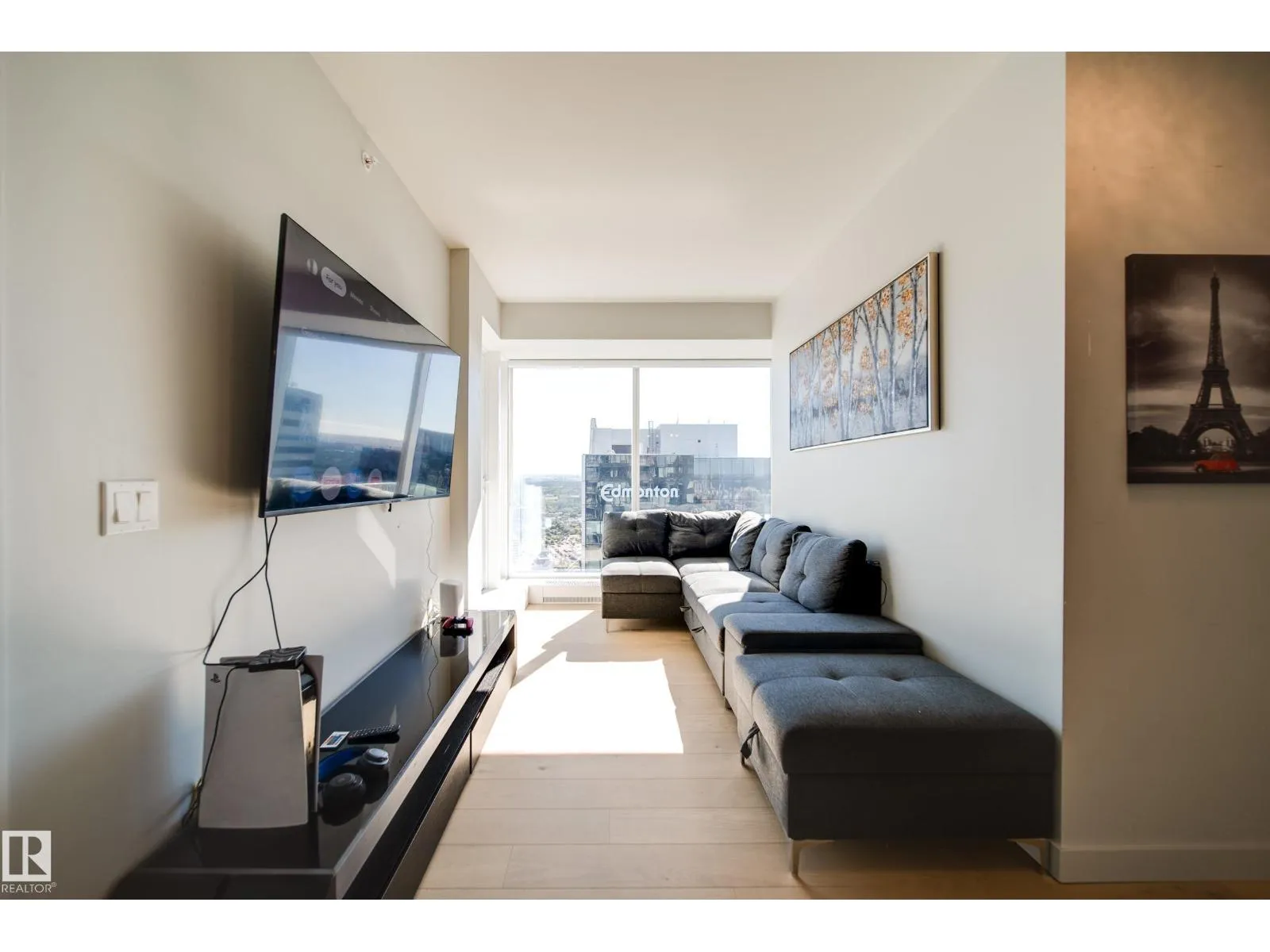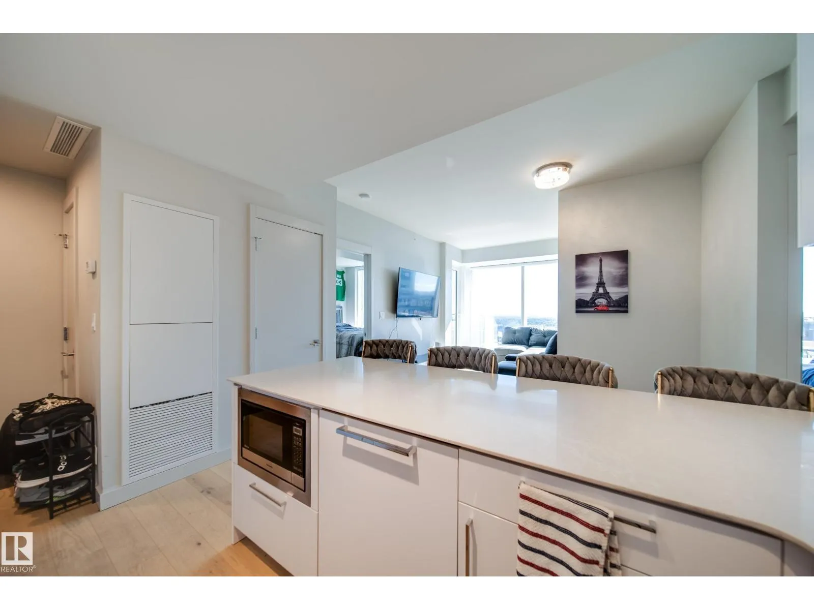 Welcome to luxury living at The Legends. Living on the 35th floor you will get views of the river and the downtown skyline. This TWO BEDROOM, 2 BATHROOM unit offers a perfect layout with in suite laundry. The luxurious kitchen has QUARTZ countertops and BOSCH appliances. Love to cook? Enjoy the ample counter and cabinet space. There is also room for 4 bar stools. Floor to ceiling windows allow light to pour in. The balcony offers a private oasis to enjoy the views. Both bathrooms also have QUARTZ countertops. The best thing about living in The Legends is all its amenities such as world class gym, pool, hot tub, access to 2 restaurants and 2 bars, spa and unlike no other the glamourous amenities room and patio with wolf bbqs all within the building. Hockey fan? Live steps away from Rogers Place. (id:27476)