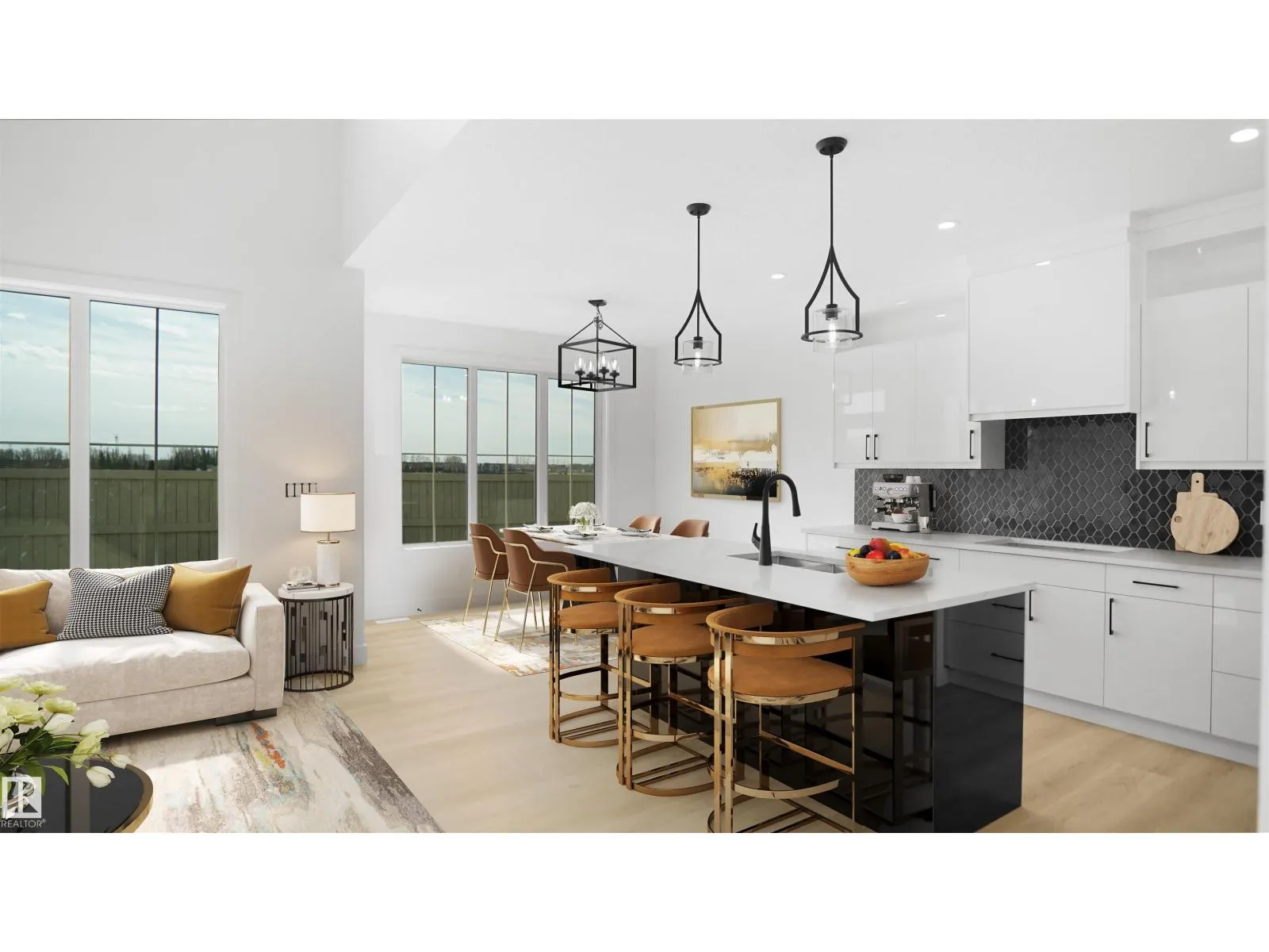 Completing this March! This brand new, 2217 sqft home offers modern luxury and smart design. Backing onto green space, this home has 4 bedrooms and 3 full baths. Step inside and be greeted by upgraded spindle railings and luxurious vinyl plank flooring that flows seamlessly throughout the house. Custom gloss cabinetry provides both style and ample storage. The gourmet Spice Kitchen is perfect for your cooking needs. Complemented by a main floor bedroom and full bathroom. This home comes packed with upgrades including matte black fixtures, upgraded backsplash, spindle railings and 5 piece spa like ensuite in the primary. The open-to-below design with a custom accent wall and a mounted electric fireplace creates a cozy ambiance. With a separate entry to the basement, the possibilities for customization are endless. Backing onto green-space with no neighbours behind you offering extra privacy. (id:27476)