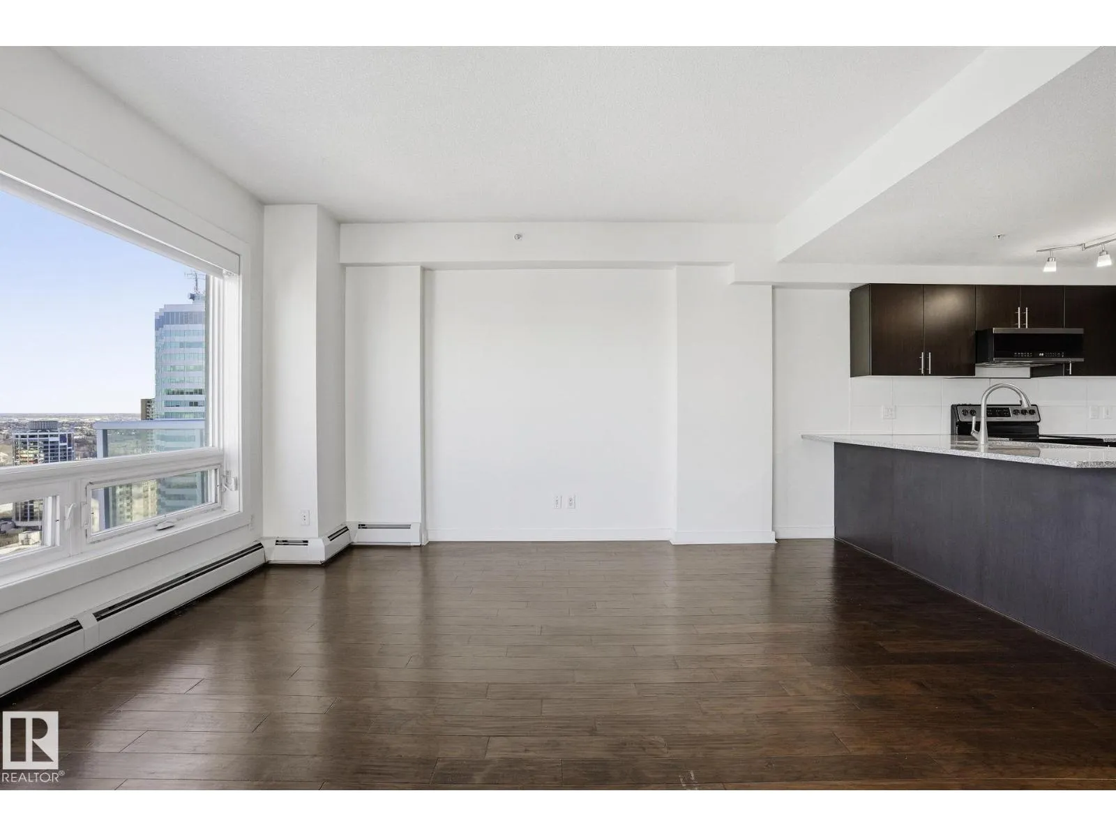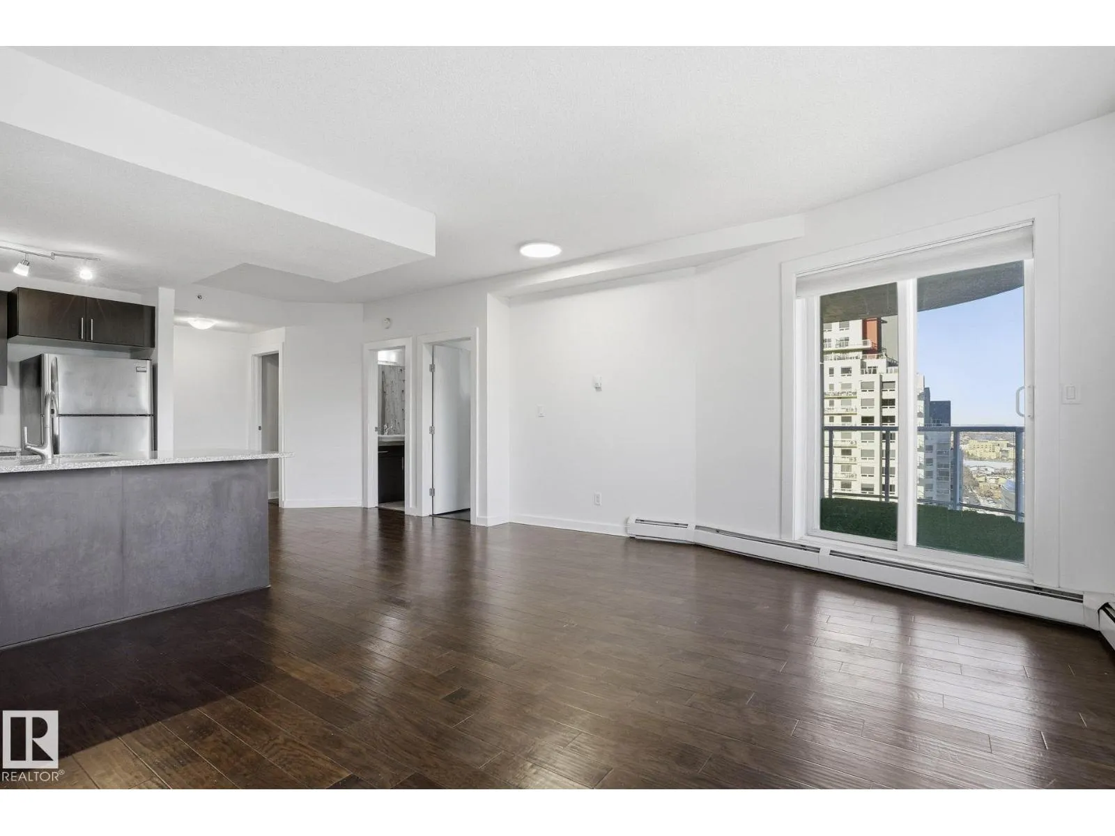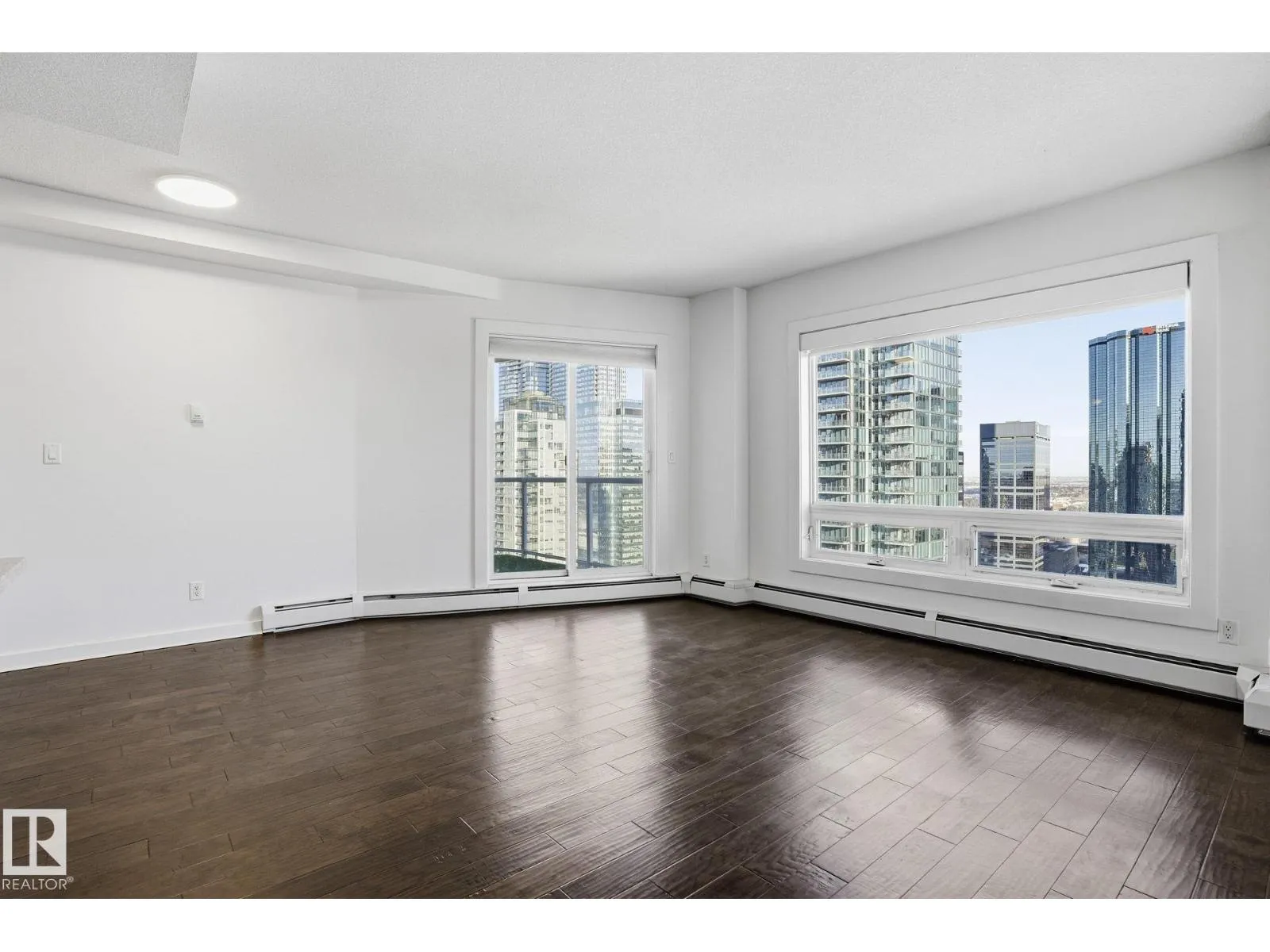 Live in the heart of downtown in this stunning 27th-floor condo in Icon II, offering incredible Downtown, NE, and SE River Valley views. This highly functional 2 bedroom, 2 bath features 098SqFt of spacious living with contemporary finishes throughout, including engineered hardwood, tile flooring, granite countertops, sleek cabinetry, upgraded fixtures & fresh paint. The open-concept kitchen is equipped with stainless steel appliances & a breakfast bar overlooking the spacious great room with dining nook & access to the balcony showcasing breathtaking views. The primary bedroom features a walk-in closet & 4 piece ensuite, while the large 2nd bedroom offers ample closet space. Enjoy in-suite laundry, plenty of storage, and secure heated underground parking, plus heated visitor parking. Unbeatable downtown location on one of Edmontonâs best streetsâsteps to markets, dining, Ice District/Rogers Place, MacEwan, River Valley trails LRT, & minutes to the U of A and NAIT. Urban living at its finest! (id:27476)