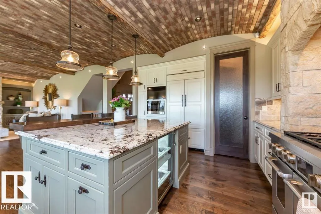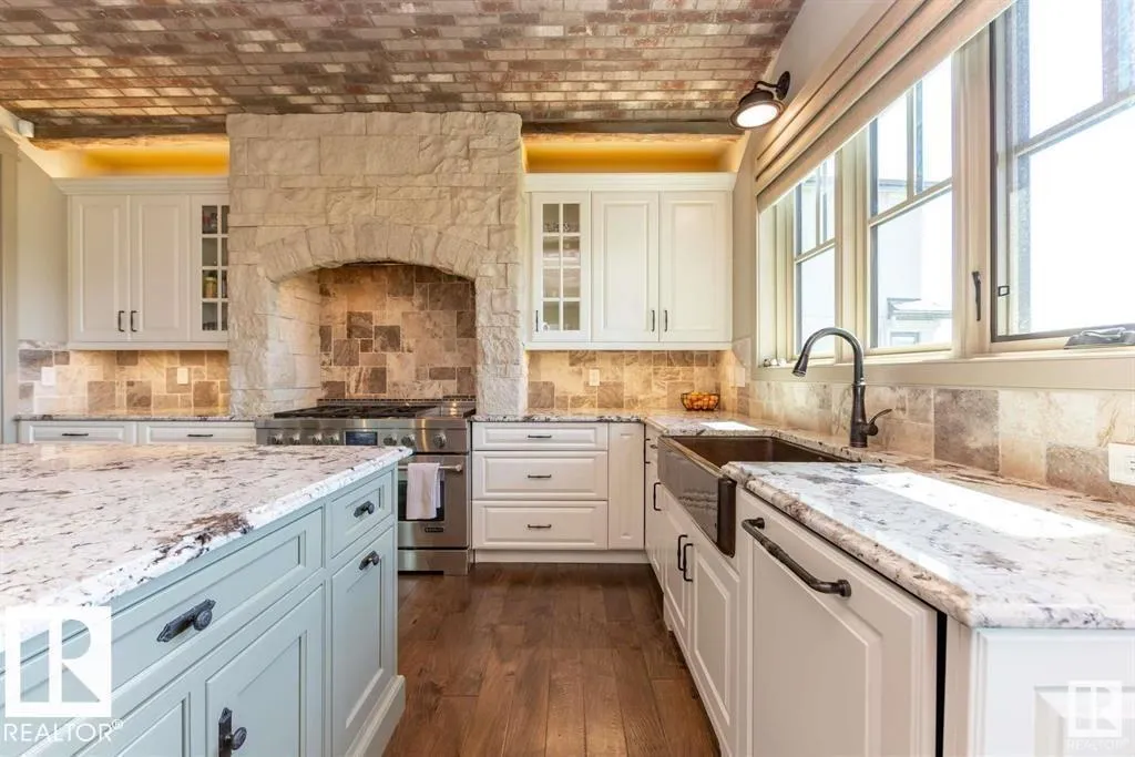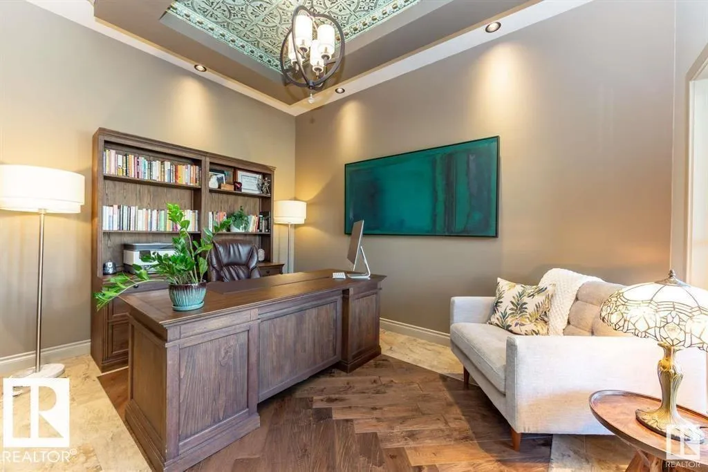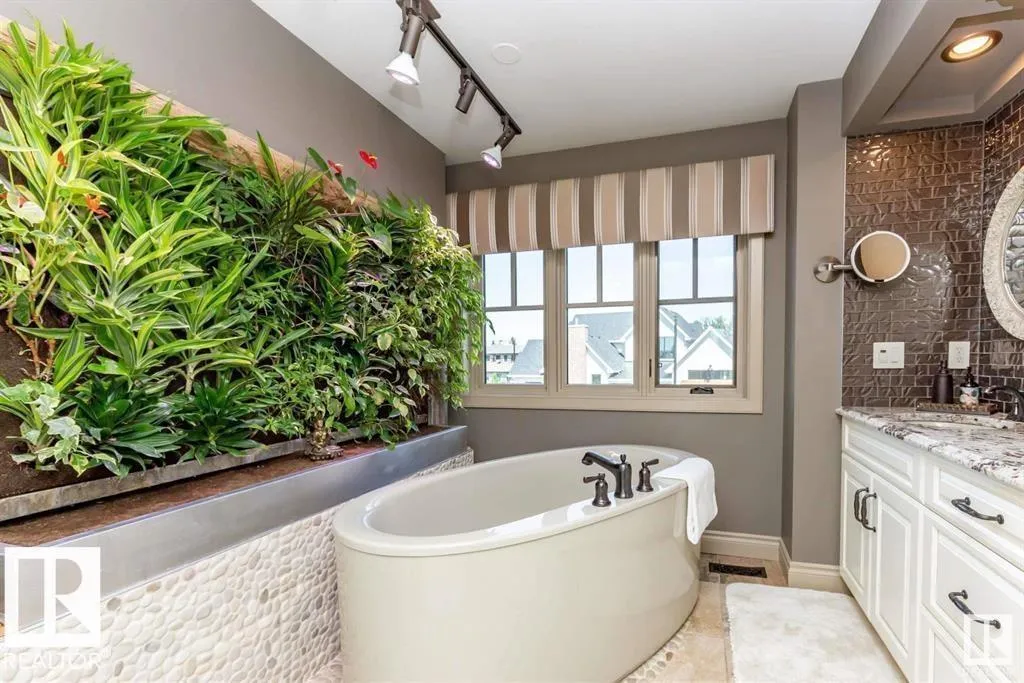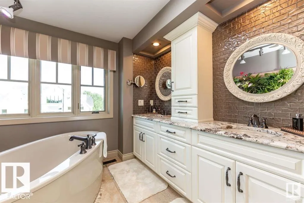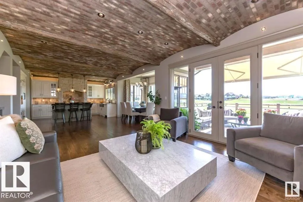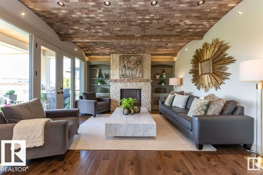 An award winning french country style property, on one of the nicest streets in South Edmonton. A custom built former lottery home backing onto the greens of Jager Ridge Course with over 3500sqft of living space, this eco-elegant home has been upgraded in every possible way. A ZERO ENERGY HOME with $85,000 Solar Panel System to power your home & sell back to the grid. It includes R40 Insulated Walls, R80 Attic, drain water heat recovery, HRV & air source heat pumps for heating & cooling, insulated tri-pane smart windows, radiant floors & electric car charger. High end estate level finishing, include a french style brick barrel ceiling on the main floor and wood beamed ceilings throughout. A true chefs kitchen with all paneled appliances, Jennair range and Urban Cultivator. Two custom living walls, 3 Bedrooms up all with their own ensuite, bonus room up, mainfloor den, walkout basement with guest suite & fully landscaped large lot with irrigation. Rebuild cost on this house would far exceed asking price. (id:27476)