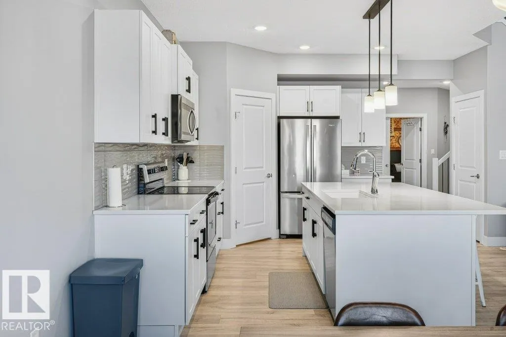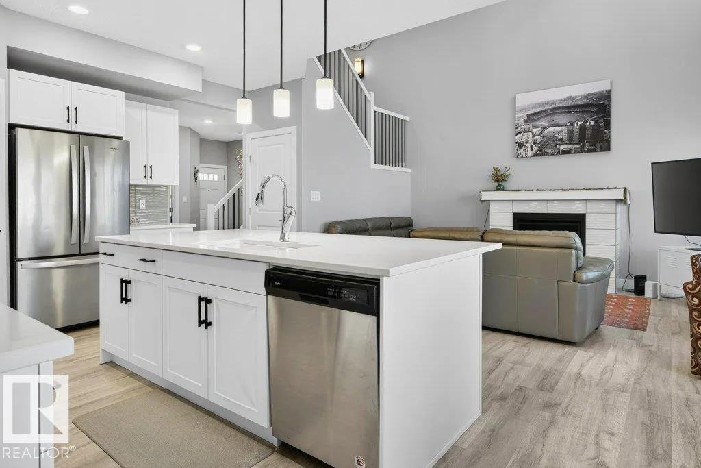 The ONE you've been waiting for! A rare POND-BACKING, 2-story WALKOUT, former Landmark Showhome in sought-after Desrochers! Built in 2018, this 2,161 SF home features an expansive OPEN-TO-BELOW great room with 18â ceilings, gas fireplace, and stunning pond views. BRIGHT, MODERN kitchen with QUARTZ counters, silgranite sink, SS appliances, HUGE ISLAND, and corner WALKTHROUGH PANTRY. Main floor FLEX ROOM with plumbing rough-ins - perfect for a home based business. 2nd floor BONUS ROOM overlooks the great room and also has a WORKSTATION NOOK. Massive Owner's suite with 5-pc ENSUITE and spacious WIC. 2 more LARGE bedrooms + 4-piece bath, and spacious laundry room completes the second floor. Central A/C! Unfinished, pond-facing walk-out basement with large windows + poured patio offers endless opportunities for future potential or a rental suite with separate entrance. Built 2018 and in IMMACULATE MOVE-IN READY condition! Quick and easy access to schools, transit, and amenities. A beautiful and RARE FIND! (id:27476)