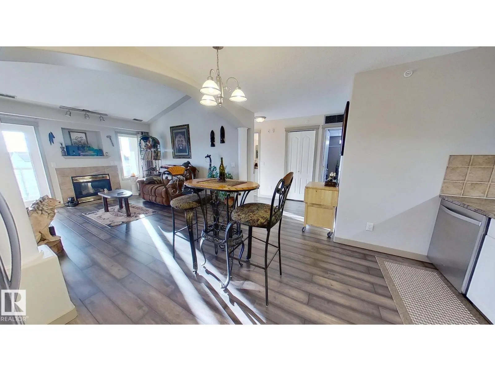Top-floor unit offering 2 bedroom and 2 full bathrooms with a functional layout. The living room features a vaulted ceiling, decorative columns and a gas fireplace with door to south-facing balcony. The kitchen is adjacent to the living area, and the unit includes a combined laundry/storage room. The total living space is approximately 955.8 sq. ft., and includes one titled underground parking space with storage unit. Condo building amenities include a gym, steam room, sauna, games rooms, guest suites, social room/kitchen, workshop, car wash and visitor parking.Close to schools, shopping, hospital, public transportation/LRT Station and environmental reserve/park, with easy access to Whitemud Drive and Anthony Henday Drive. Condominium building is an 18+ building. (id:27476)