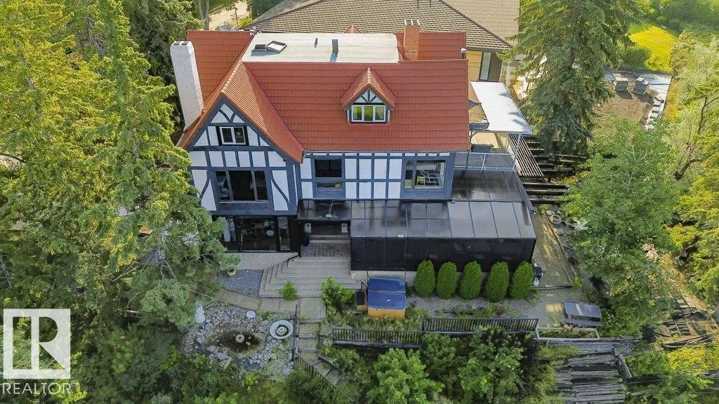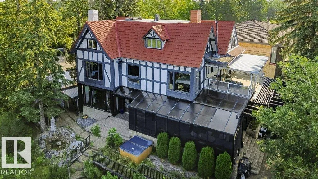 Itâs a rare redevelopment or renovation opportunity on one the best river lot in the city. Indulge your creative ideas of essence of luxury living with this secluded, one-of-a-kind estate nestled in the prestigious Windsor Park enclave. Breathtaking panoramic views that stretches across the North Saskatchewan River, this residence boasts 8 bedrooms & 8 baths total 6456 SQ FT. The main level unfolds to reveal a spacious living room adorned with a fireplace, flowing into a sunroom. The kitchen features ample cabinetry and counter space alongside a quaint dining area, and the expansive formal dining room offers a picturesque backdrop. Outside, your private oasis awaits. Lounge by the pool, unwind in the hot tub on the patio while enjoying the unparalleled views surrounding you. Perfectly positioned in a prime location, this estate affords easy access to the Royal Mayfair Golf Course and the University of Alberta, ensuring convenience at your fingertips. Make the move today. (id:27476)