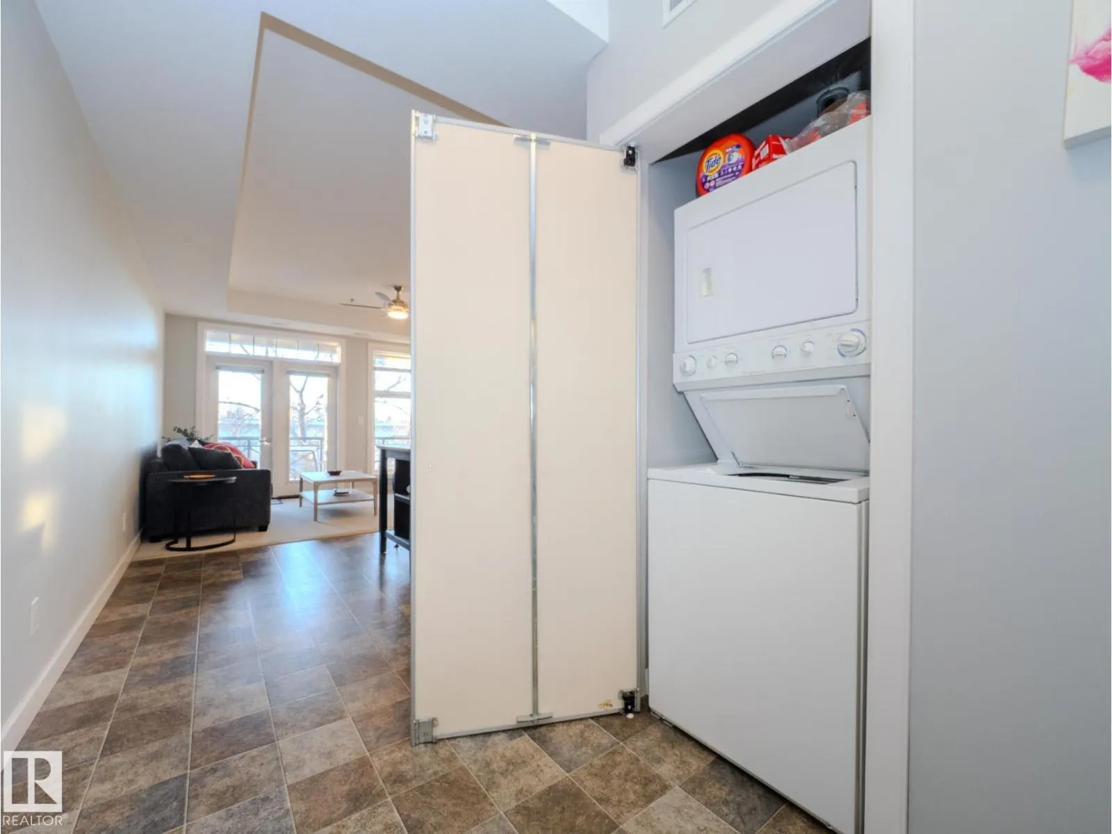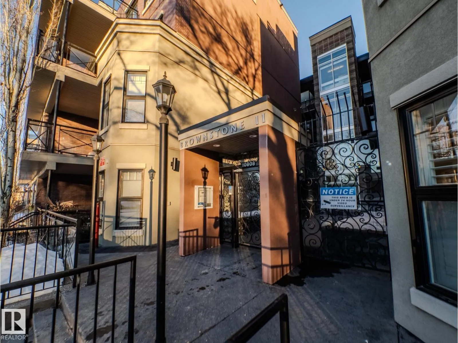 THIS IS SUCH A COOL BUILDING...ALMOST 700 SQ FT....THIS IS A LIFE STYLE...ATTN STUDENTS/PROFESSIONALS...~!WELCOME HOME!~ This 1 bed/1 bath condo in the highly sought-after Brownstones II sits on the 3rd floor and delivers 650 sq. ft. of smart, functional spaceâperfect for students, first-time buyers, or young professionals who want to be close to everything. The open-concept layout features a bright living room with floor-to-ceiling windows, plus patio access for some fresh air and sunshine. The kitchen brings the style with great cabinet space, open shelving, and a sleek black subway tile backsplash. Youâll also love the in-suite laundry, a clean 4-piece bathroom, and a spacious bedroom with a mirrored double closet. This professionally managed building includes a gated courtyard, elevator, and assigned parking. Walkable, central, and dialed-in for lifestyleâminutes to U of A, transit, McKernan/Belgravia LRT, and just blocks from Whyte Ave, 109 Street, University Ave++ (id:27476)