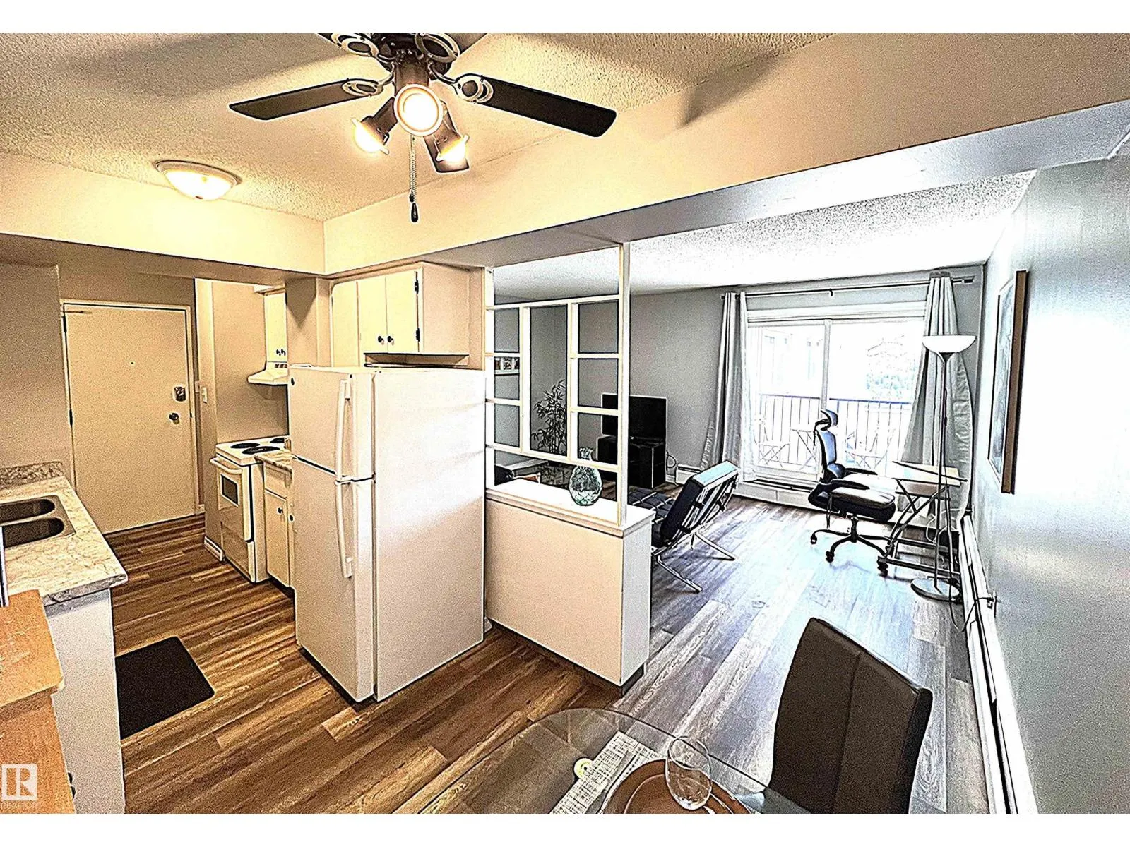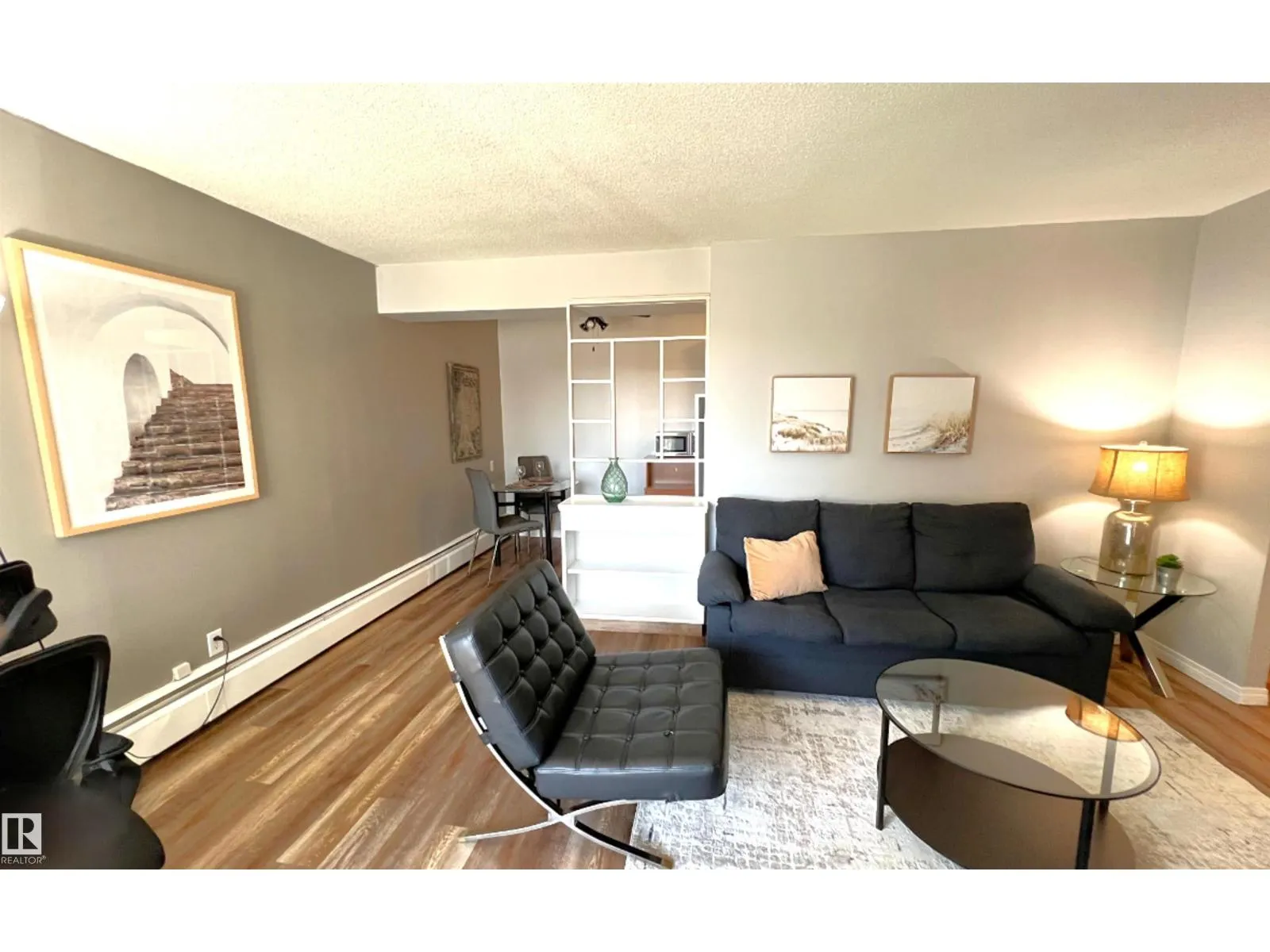 Amazing Location and River Valley View from your 2nd floor balcony in the heart of Edmonton on Jasper Av just blocks from Ada Boulevard, Borden Park and the Stadium. This is perfect for a first time buyer, someone looking to downsize or as a very desirable rental just 7 minutes to the Ice District and Downtown in an area seeing major renewal and development. Many recent upgrades in this functional and open floor plan unit include paint, flooring and countertops. This is move in ready, well kept and fully furnished if the buyer wants! Quiet and well maintained building, all utilities included in fees, comfort and convenience in this ideal retreat. Don't miss the opportunity to own a home that offers location, views and lifestyle! Pictures are from before last tenant (May 2025). (id:27476)
