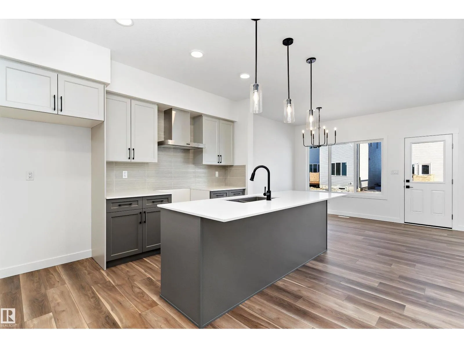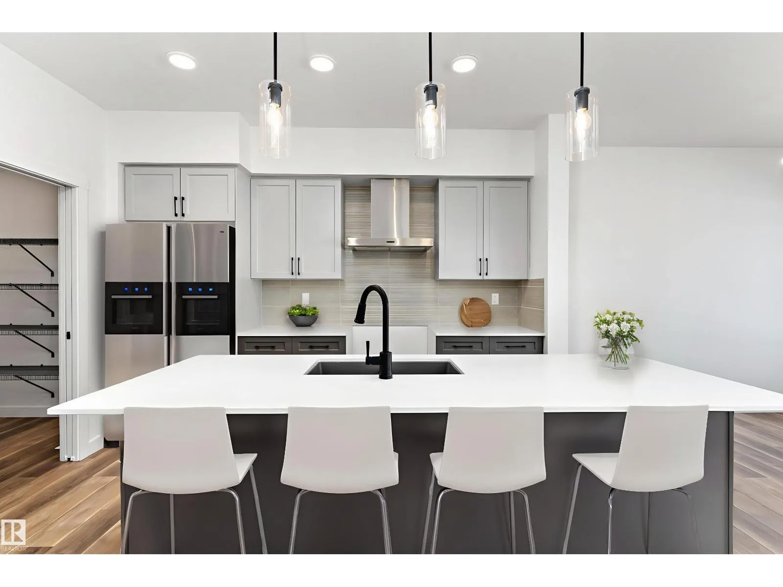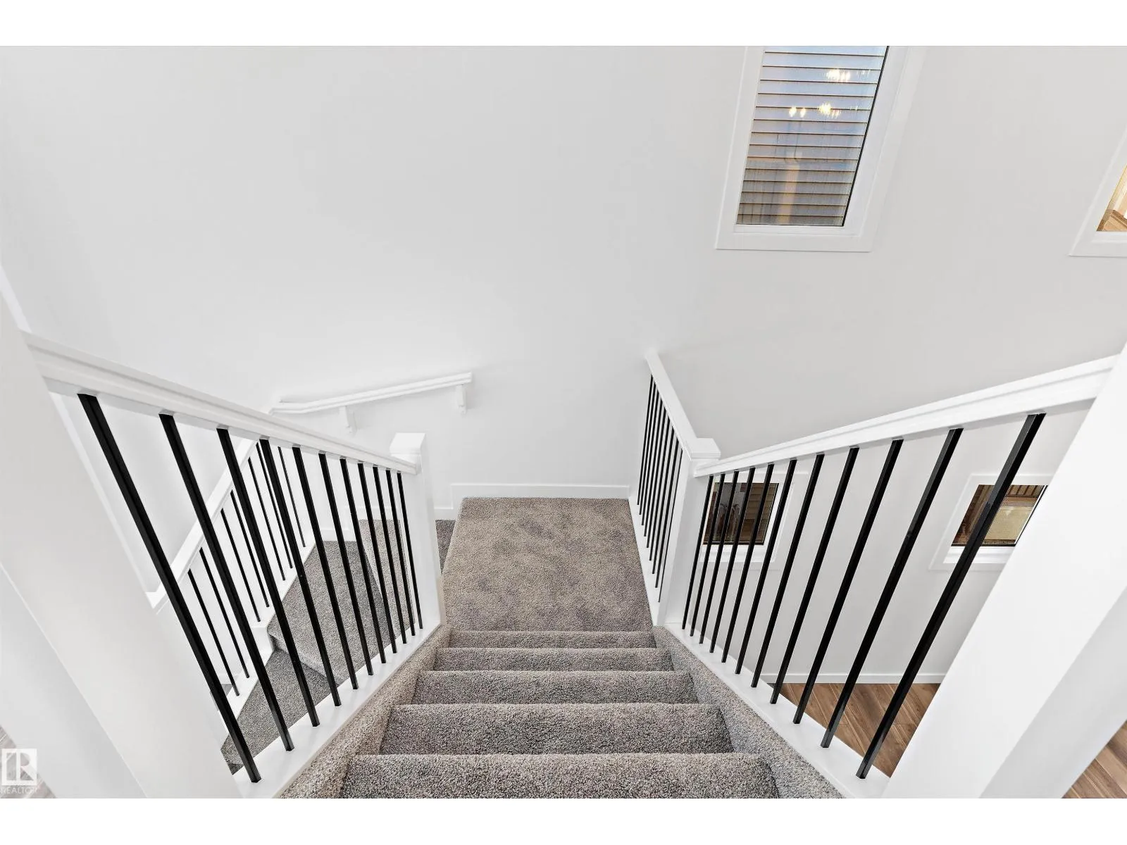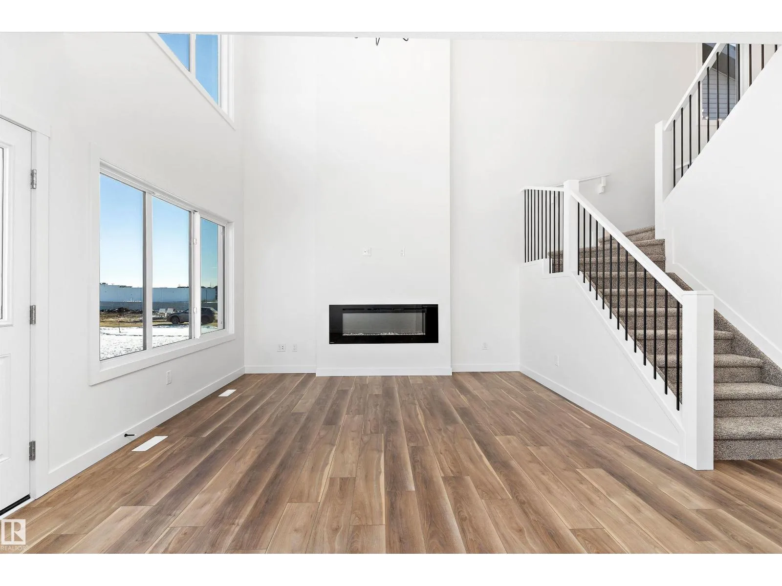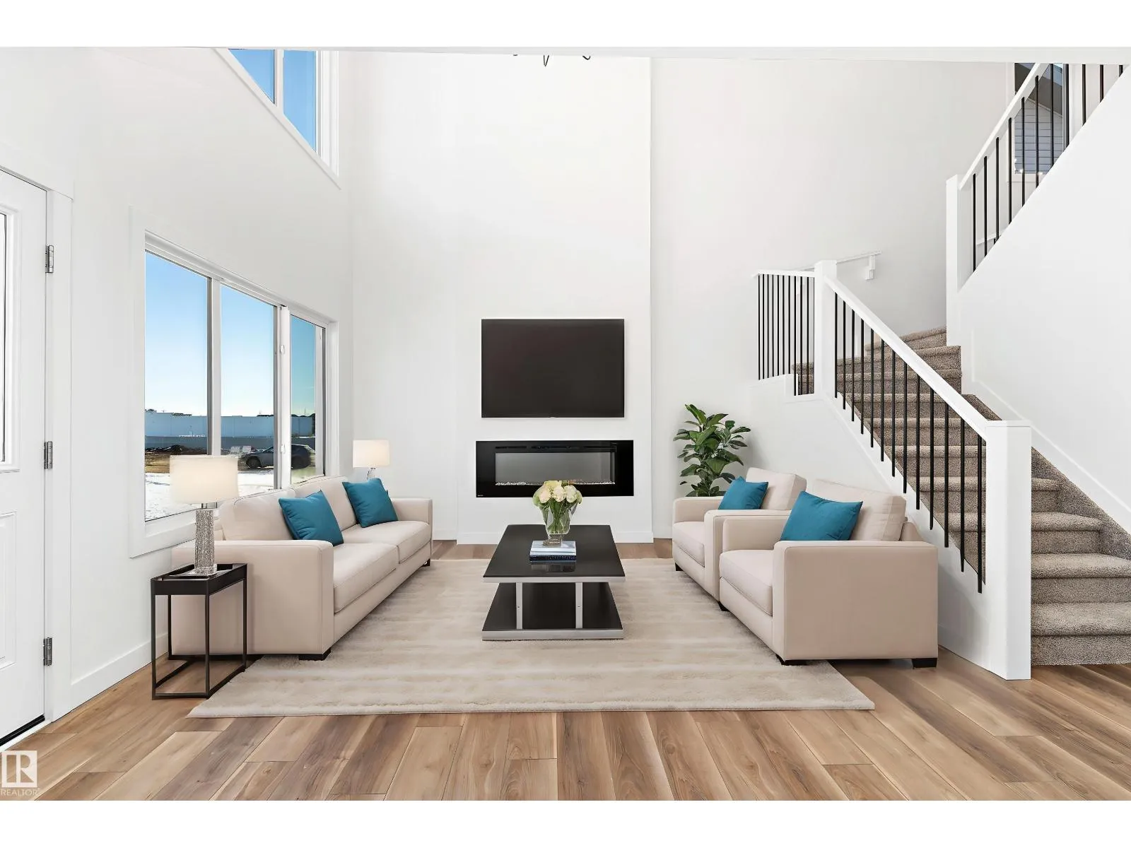 The Artemis is a thoughtfully designed family home featuring 9â ceilings on the main and basement, a double attached garage with floor drain, separate side entrance, and luxury vinyl plank flooring on the main level. The open-concept kitchen, nook, and great room include quartz countertops, an island with eating ledge, full-height tile backsplash, soft-close cabinetry, built-in microwave, and an electric fireplace with a dramatic 17â ceiling. The main floor also offers a bedroom, 3-piece bath, and mudroom with walkthrough pantry. Upstairs features a primary suite with a 4-piece ensuite and walk-in closet, plus a bonus room, upper laundry, a main 4-piece bath, and two additional bedrooms with walk-in closets. Includes black fixtures, upgraded railings, basement rough-in, and Sterling Signature Specifications. (id:27476)