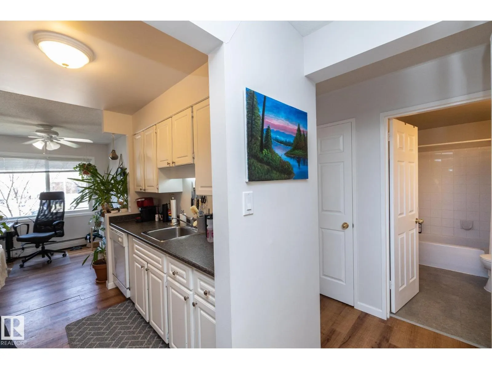 Absolutely lovely 1 bedroom 2nd floor unit that has been nicely updated! Nice kitchen, open and spacious living room and a big balcony. Large bedroom and a nice bathroom. Quiet building located in Royal Gardens which is a great neighborhood with easy access all around the city. Close to all amenities, public transportation and has one energized parking stall. Great starter condo! The condo fee of $413 covers all utilities except power. There is an exercise room and lots of common area space outside in the large grassy area in-between buildings. (id:27476)