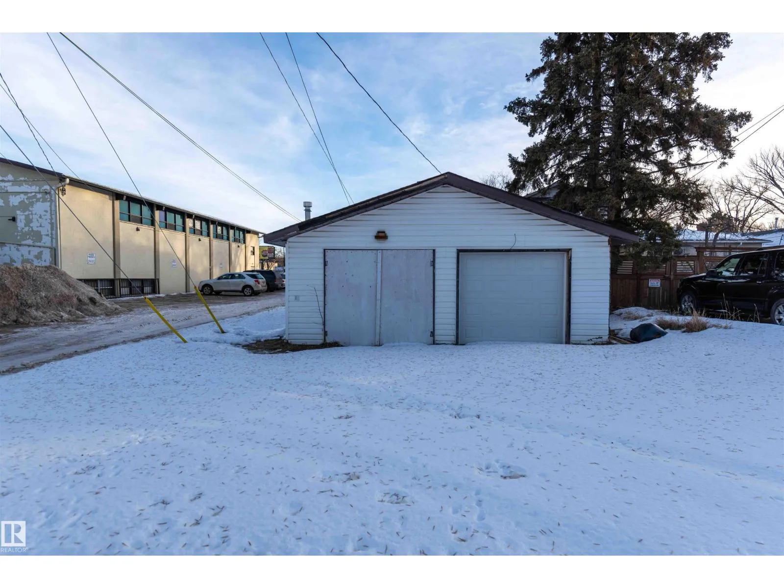 Developer or Investor Opportunity. This larger corner lot offers exceptional potential, with zoning that allows for developments of up to six units. The property provides flexible zoning suitable for residential use or small-scale commercial applications, including food and beverage service, health services, office space, or child care. It also presents an excellent opportunity for those seeking an affordable primary residence. The main floor features three bedrooms, one full bathroom, a kitchen, and a living room. The basement includes one bedroom, one bathroom, a laundry area, and utility space. A separate rear entrance to the basement offers the potential for additional rental income. Ideally located with convenient access to all amenities, the property is approximately a 10-minute drive to the University of Alberta and just minutes from downtown Edmonton. A double detached garage provides ample parking and storage. This is a rare opportunity with significant development and investment potential. Do (id:27476)