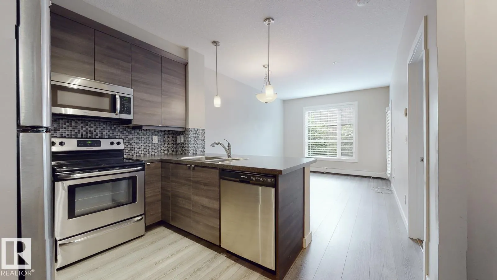 This building is located in the ION of AMBLESIDE. The condo features a spacious layout including an open concept kitchen with tile backsplash and stainless steel appliances. The large living and dining room features laminate flooring and an entrance to a patio area. There is a spacious bedroom with WALK-IN closet, a full bathroom, in-suite laundry and a computer station. Enjoy the convenience of a TITLE energized parking stall. This complex features many amenities including BBQ area, entertainment room, fitness room and a guest suite. This building in close to all amenities including shopping, public transportation, restaurants, schools, Currents of Windermere and easy access to the Anthony Henday. (id:27476)