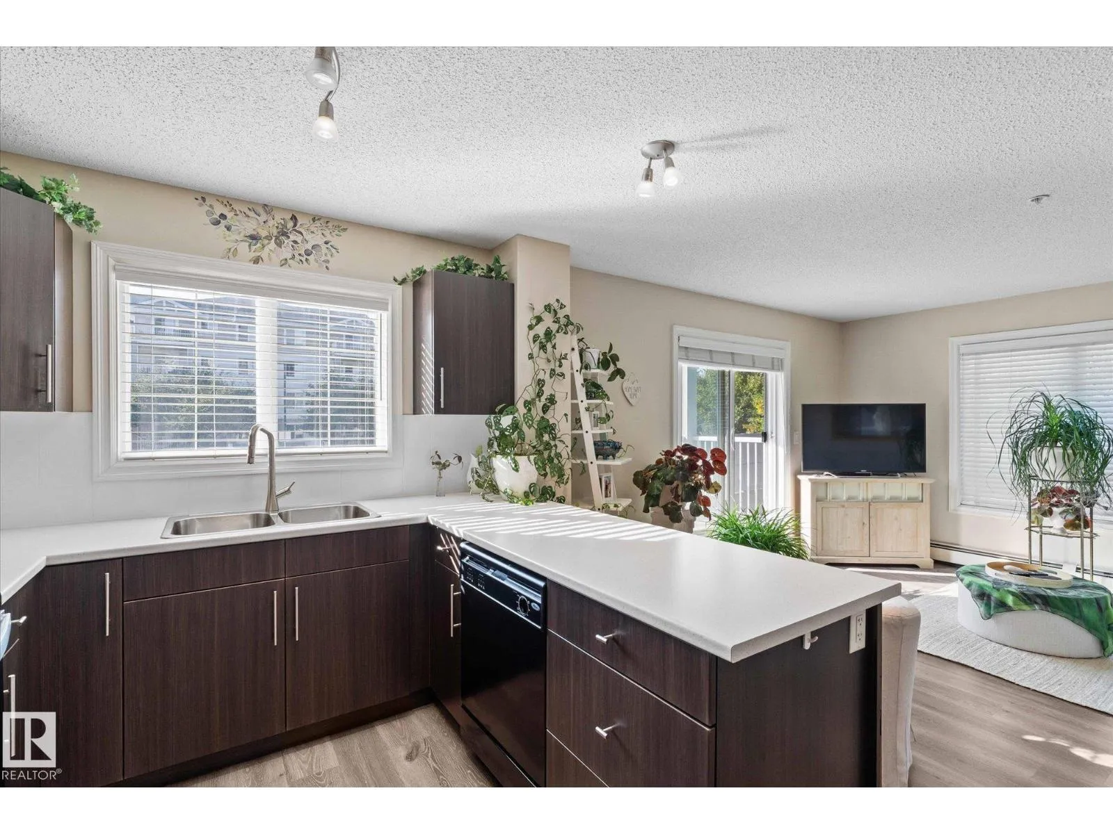 Welcome to Aspen Meadows!This upgraded 2-bedroom,2-bathroom condo in Aspen Meadows II offers 875sqft of modern living space. Recent updates include fresh paint, new lighting, window coverings,and updated kitchen appliances, faucet, and sink.The open-concept kitchen features ample counter space and flows seamlessly into a bright living area with oversized windowsâperfect for entertaining.The spacious primary suite comfortably fits a king-sized bed and features a walk-through closet leading to a private ensuite.A second bedroom and an updated full bathroom complete the well-designed layout.Additional upgrades include a new deck membrane and updated bathroom countertops. Enjoy the convenience of in-suite laundry, a titled heated underground parking stall, and a designated storage cage.The building also offers a fitness room and social room. Ideally located near the Meadows Recreation Centre, schools, shopping, dining, and entertainment, this move-in-ready home is the perfect blend of comfort and convenience. (id:27476)