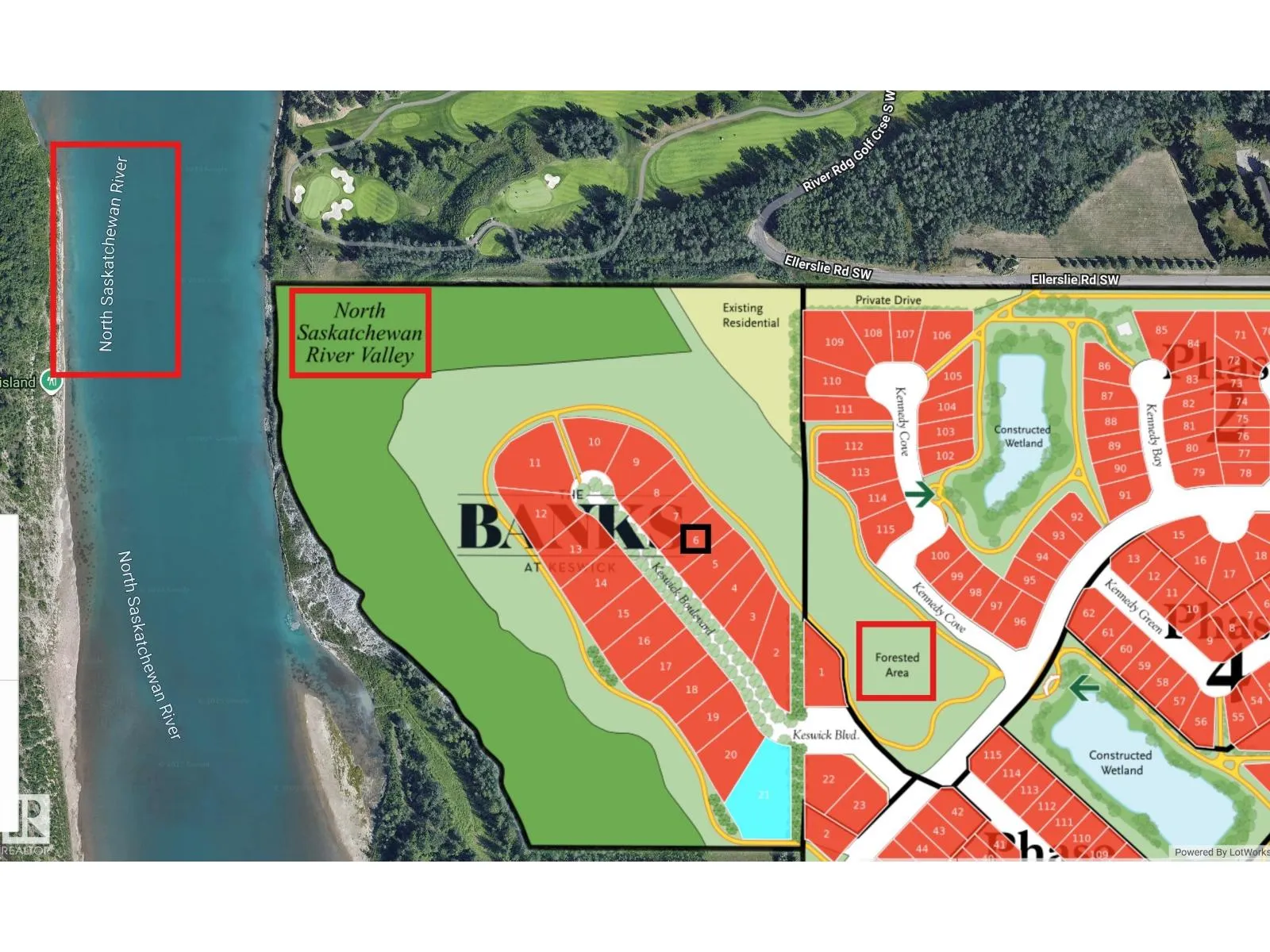 Rare opportunity! Picturesque 11,983 sq.ft. (.27-acre) estate WALKOUT lot featuring a 62-ft wide building pocket, backing directly onto a ravine. Located in Southwest Edmontonâs prestigious Keswick â The Banks, an exclusive gated enclave of only 23 estate lots, surrounded by ravine, environmental reserve, and the stunning river valley. This private sanctuary will showcase luxury estate homes in the $2.5M+ range. Enjoy a serene country-style lifestyle with parks, ponds, and extensive trail systems just steps away, yet only minutes from shopping, dining, major amenities, and Windermere Golf & Country Club. Bring your own builder and create your dream homeâ3- or 4-car garages, flat roof, contemporary, transitional, or traditional designs are all permitted. Architectural guidelines ensure exceptional quality and cohesive streetscape appeal. (id:27476)
