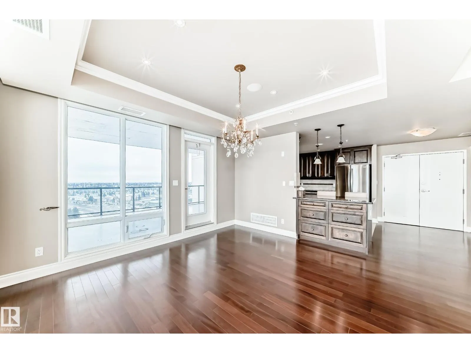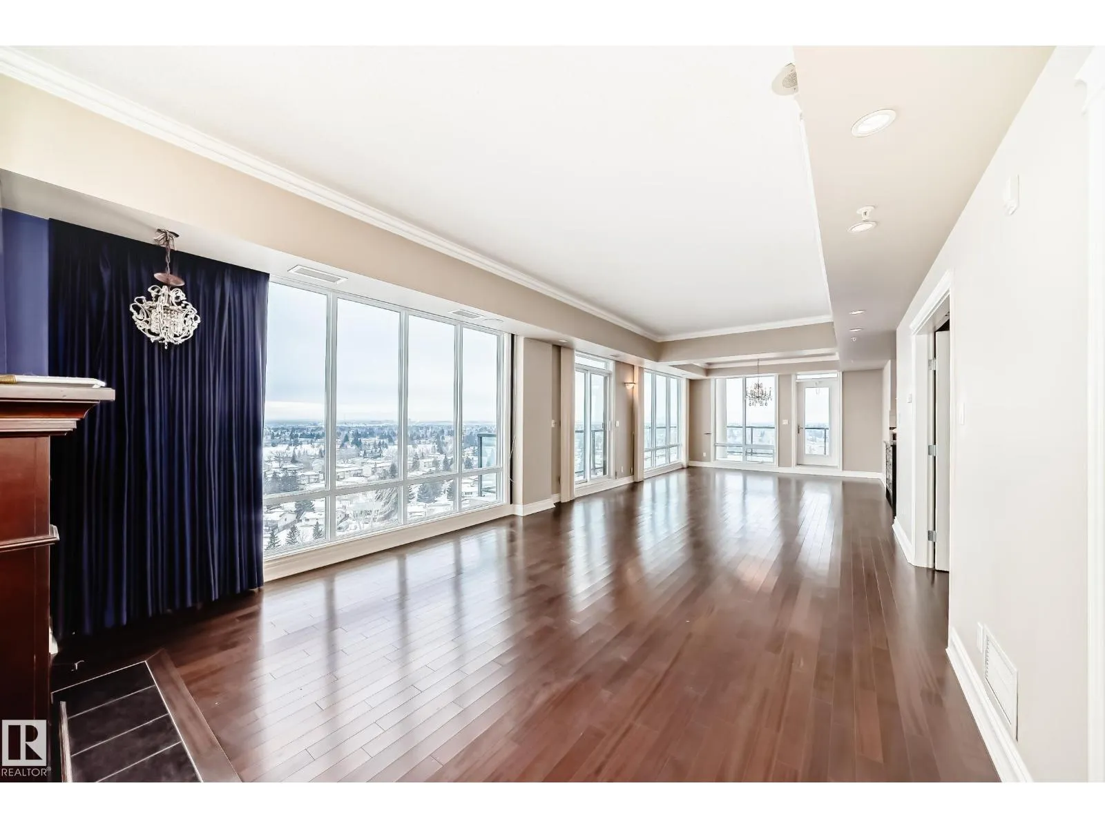 Welcome to this impressive 55+ PENTHOUSE! Over 1,850 sq ft of beautifully designed living space. Featuring 2 spacious bedrooms plus a versatile den, the functional layout is filled with natural light from floor-to-ceiling windows. The stunning kitchen boasts granite countertops, SS appliances, and an abundance of cupboards. Enjoy the expansive living room with a cozy fireplace, perfect for relaxing or entertaining. Step outside to two massive balconies showcasing incredible views. The home includes a glamorous 5-piece bathroom, an additional 3-piece bath, and a large laundry room with sink, extra cabinetry, and storage. Condo fees include ALL utilities (even electricity) and basic cable. Comes with a titled underground parking stall. This adult community is connected to Shepherdâs Care Facility, offering access to full care services if needed. Amenities include a full-service dining room (in-suite delivery available for a fee), guest suite, 4th floor patio & garden, chapel, and social room. Welcome home!! (id:27476)