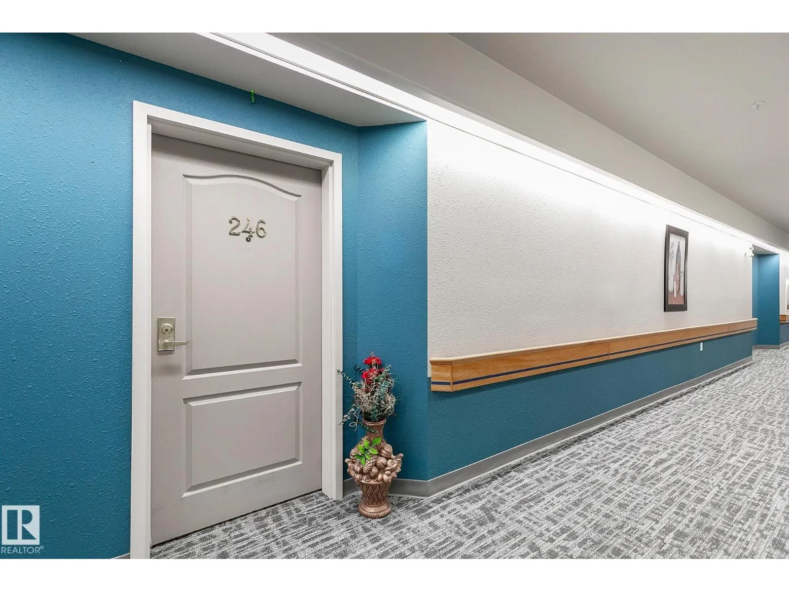 Wheelchair adapted Adult living in desirable Kensington . Shephard's Place is a 55+ community complex. This 2 bedroom 790 square foot home has a wheelchair friendly design (no transitions). Large 11' x 12.9' primary bedroom and second bedroom or den. The bathroom is equipped with a custom easy access sit down shower. Separate laundry room in-suite with full size washer and dryer provides extra storage space. The spacious living room has access to the South facing balcony. Kitchen has Corian countertops, counter top stove, built-in dishwasher and pantry. This unit is carpet free. Amenities galore in the complex include a very private outdoor courtyard, hair salon, games room, chapel, dining facilities, social activities, exercise equipment and more. Indoor access to the other buildings - Shepherd's Garden Manor and Shepherds Care LTC. Conveniently located near shopping on 137 Avenue as well as Public Transit. Parking stall can be rented for $25 per month. (id:27476)
