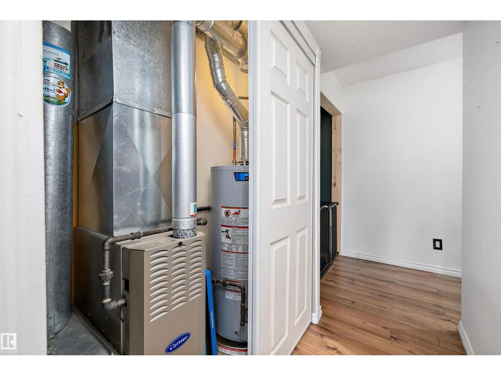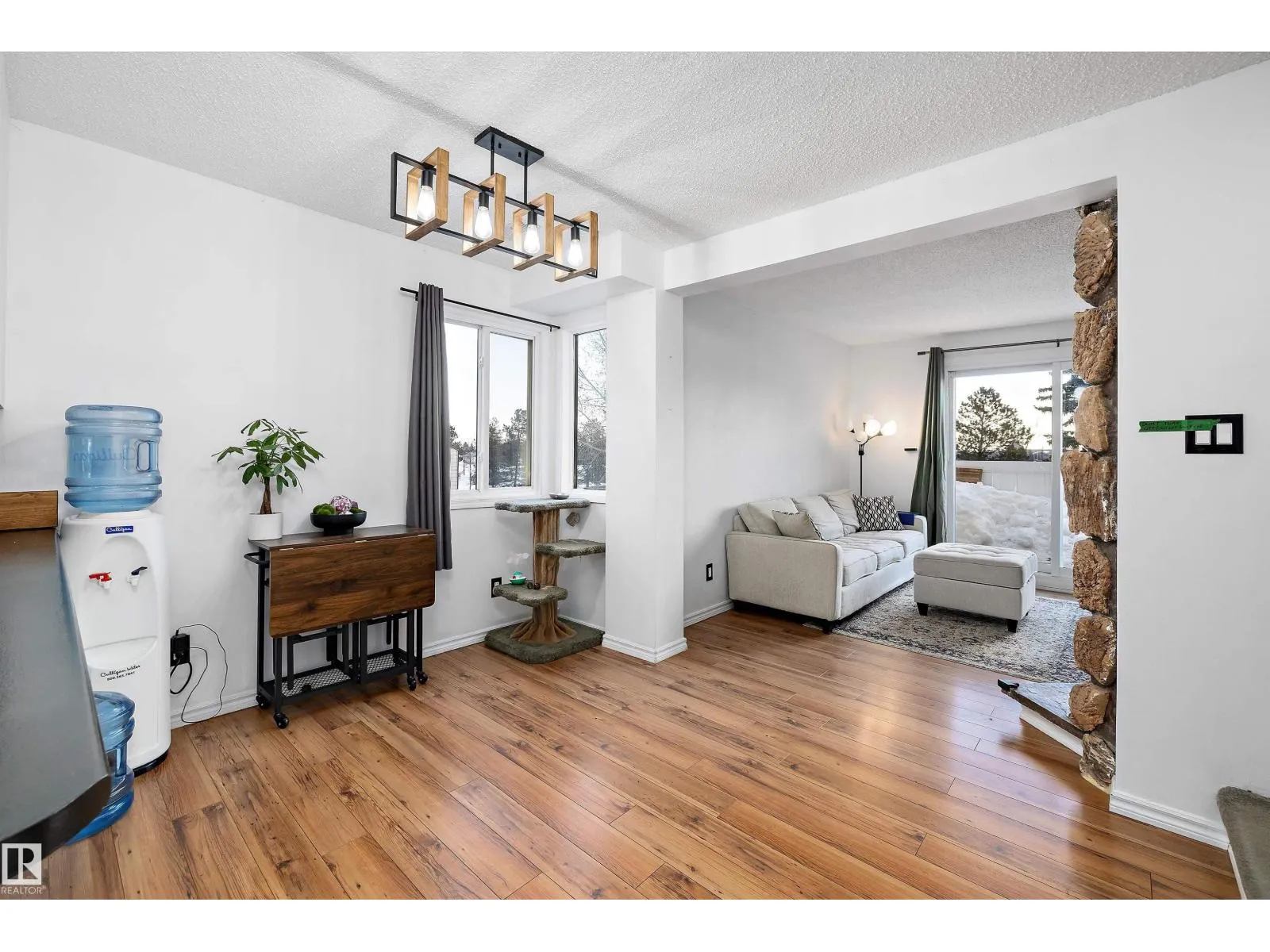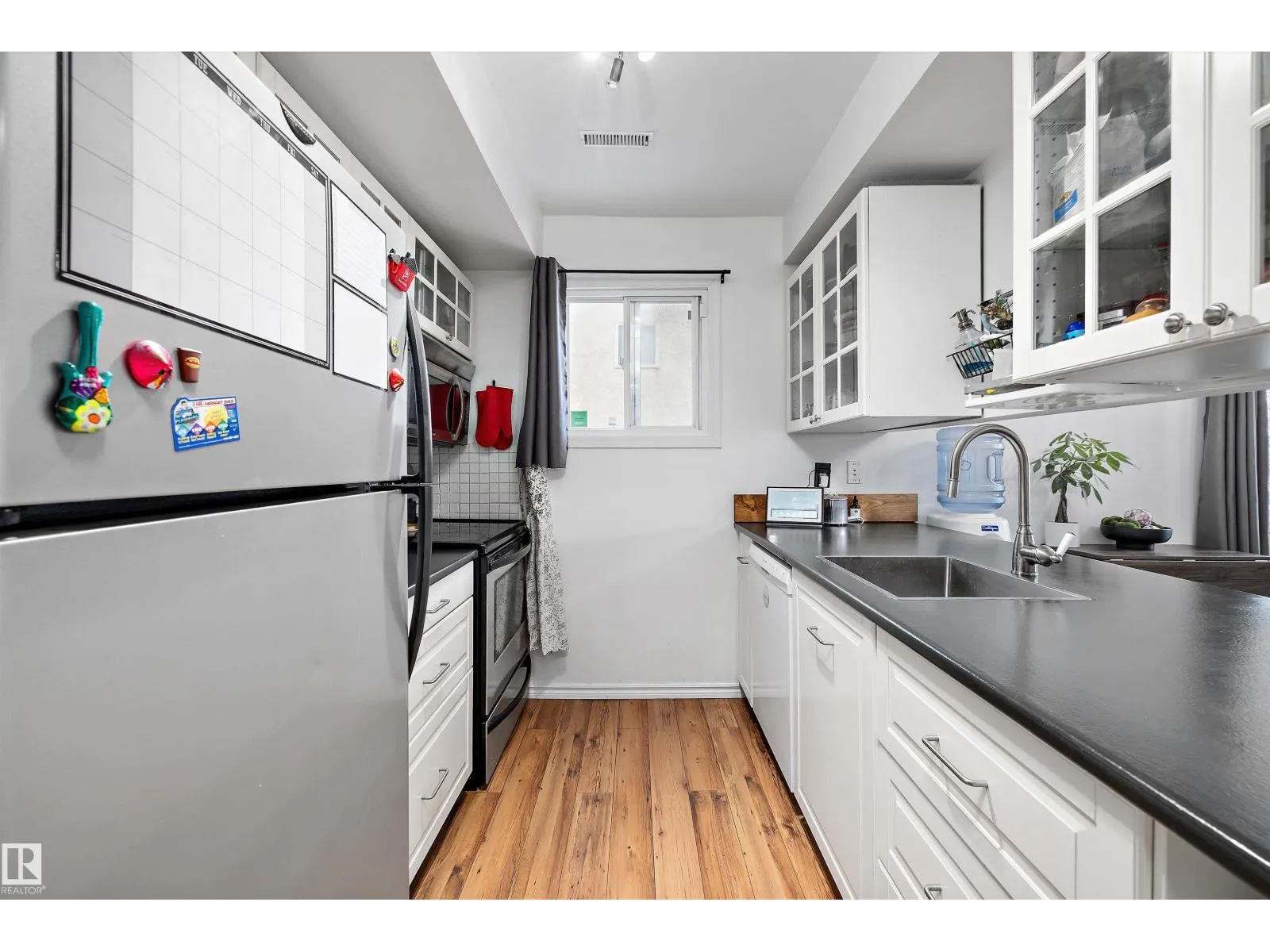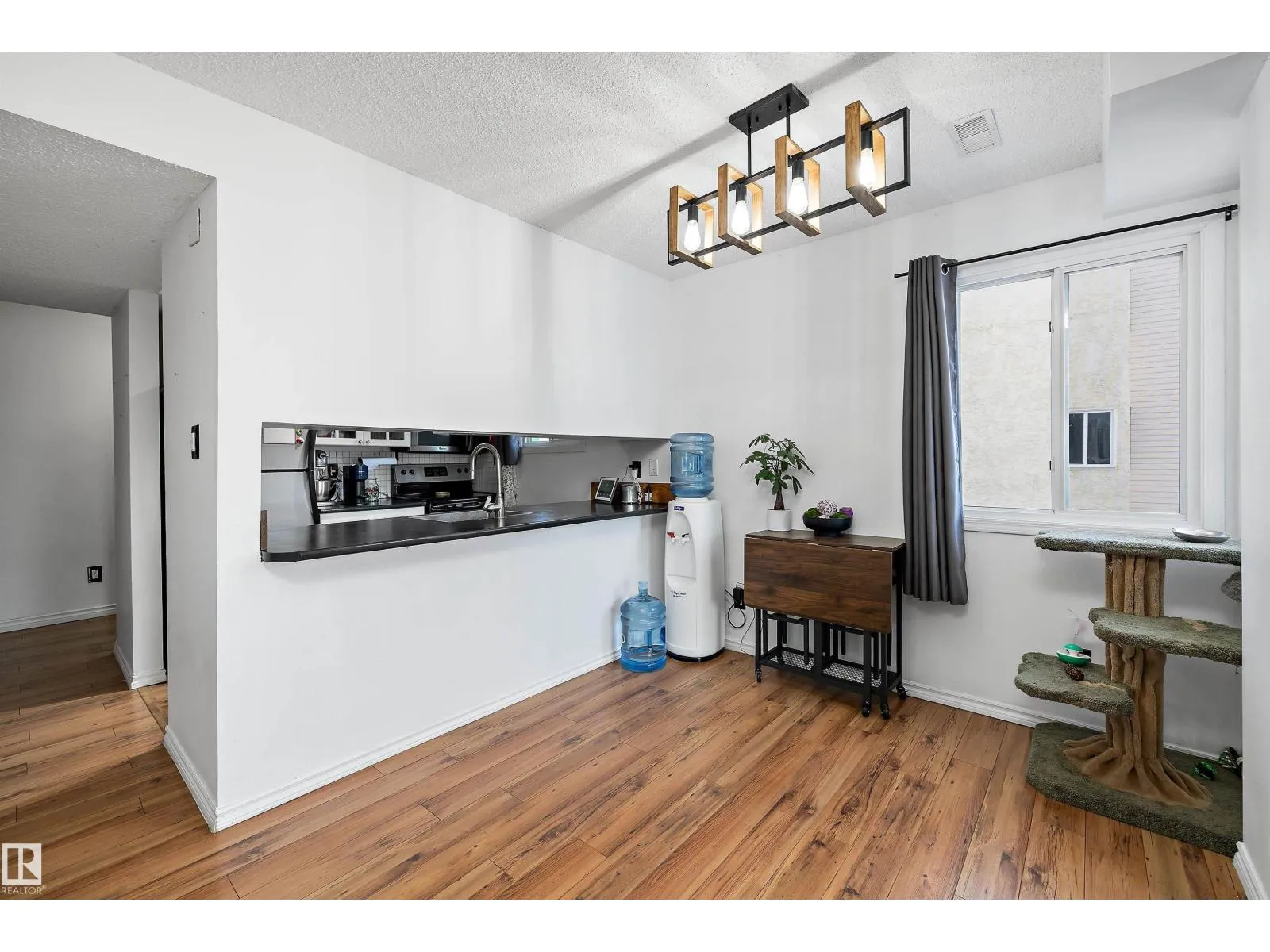 BRIGHT, FUNCTIONAL & MOVE-IN READY. Welcome home to this well-kept 2-storey townhouse in the family-friendly community of Dunluce. Offering 860 sq ft, this home features 2 bedrooms and a full 4-piece bathroom with a practical, efficient layout. The main floor includes a spacious living room with a wood-burning fireplace and access to a balcony with planter boxes overlooking park space. Large windows allow for excellent natural light throughout. The dining area flows into a functional galley kitchen with ample cabinetry. Upstairs youâll find two generously sized bedrooms, a 4-piece bath, in-suite laundry, and additional storage. Freshly painted throughout with new washer and dryer. Includes one assigned, covered parking stall in the parkade with plug-in. Quiet location with quick access to amenities, transit, and green space, ideal for first-time buyers or investors. (id:27476)