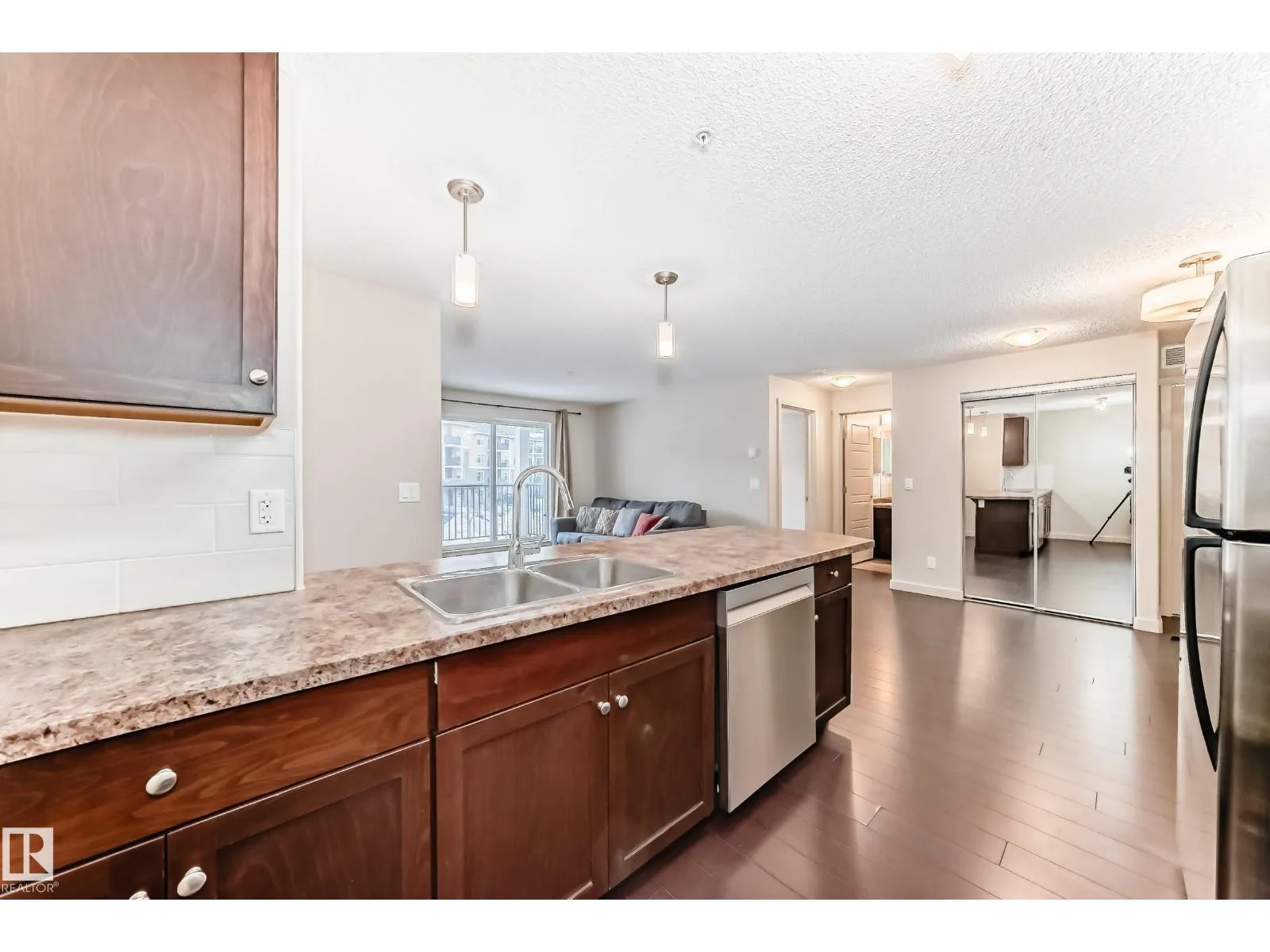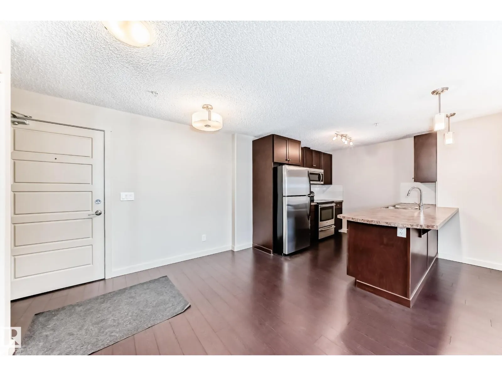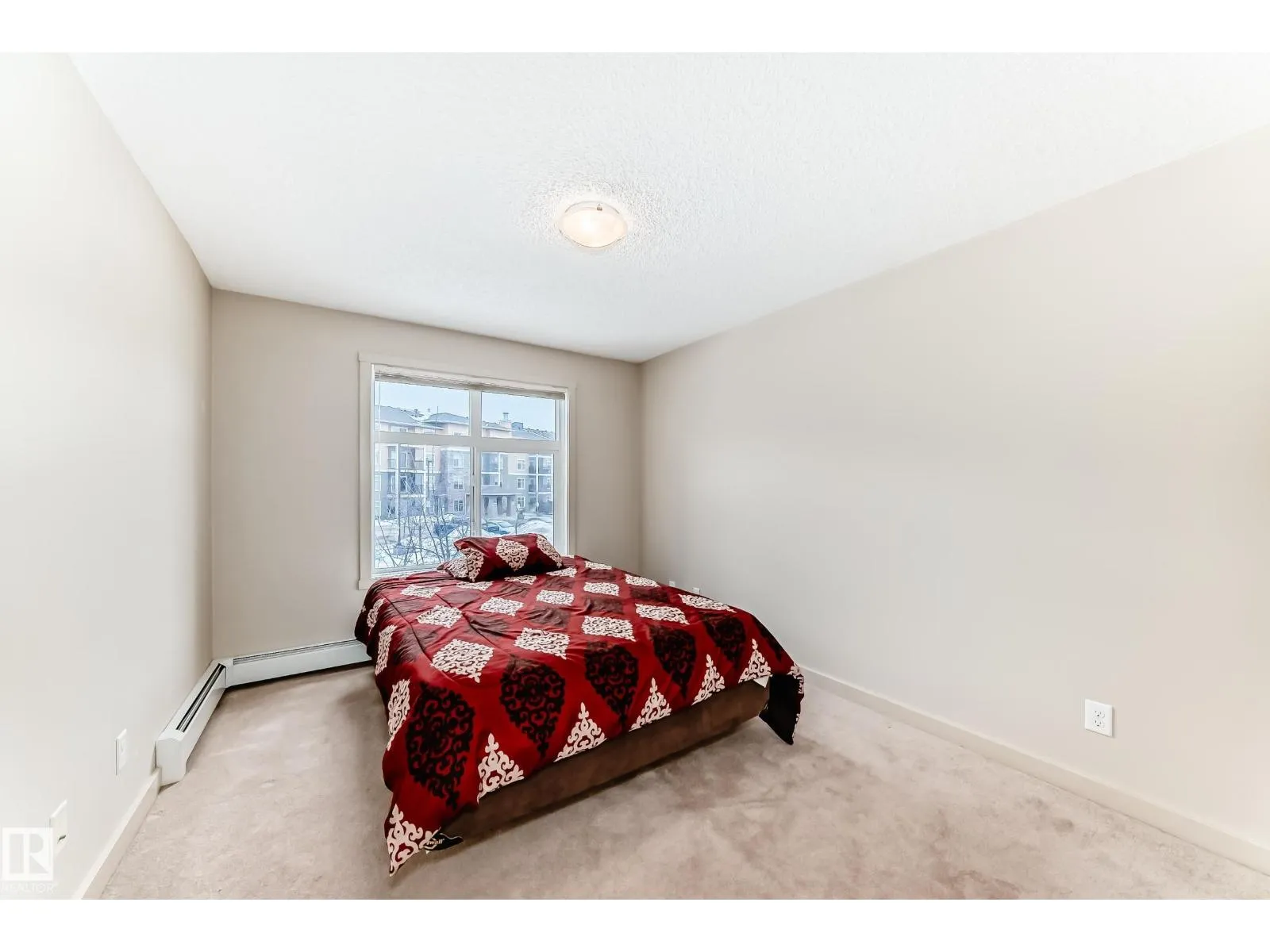Welcome to this turn-key Schonsee unit! Original owner, Like-new 2 bedroom, 2 bathroom condo featuring a smart split-bedroom layout for added privacy. This bright 2nd-floor unit offers open-concept design with rich, dark kitchen cabinetry, stainless steel appliances, double sink, durable laminate flooring, in-suite laundry, & New SS Dishwasher - 2025 Enjoy a large, private & covered balcony w/ BBQ gas hookup & no shared neighbouring balcony, + 1 titled HEATED underground parking stall. LOW condo fees of just $363.54 include HEAT/WATER! This unit is conveniently located near elevator, stairway & is on the same floor as the social room, with additional building amenities including a fitness room. Close to schools, shopping, playground with SPRAY PARK, 2 nearby ponds (Shonsee Lake & Crystallina Lake), public transit, & quick access to Anthony Henday. Immediate possession available â ideal for first-time buyers or downsizers seeking low-maintenance living. Some pics virtually staged. Welcome home! (id:27476)