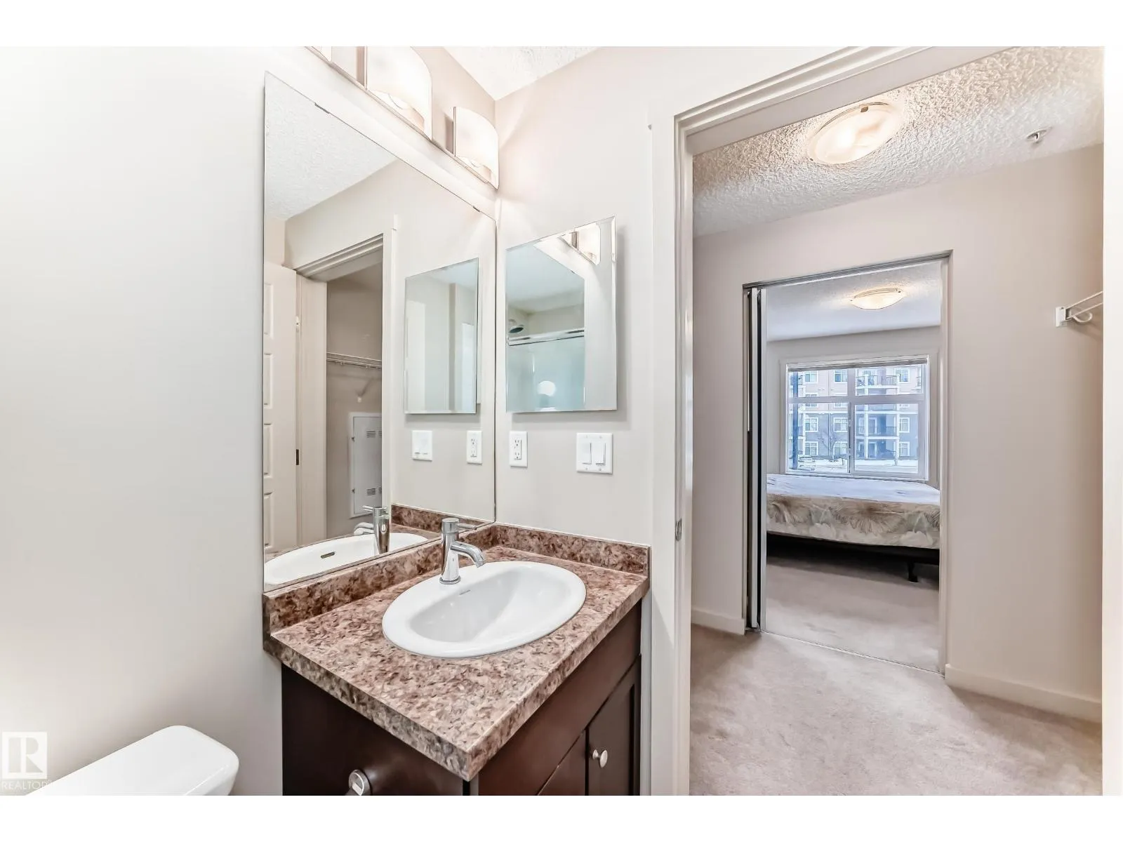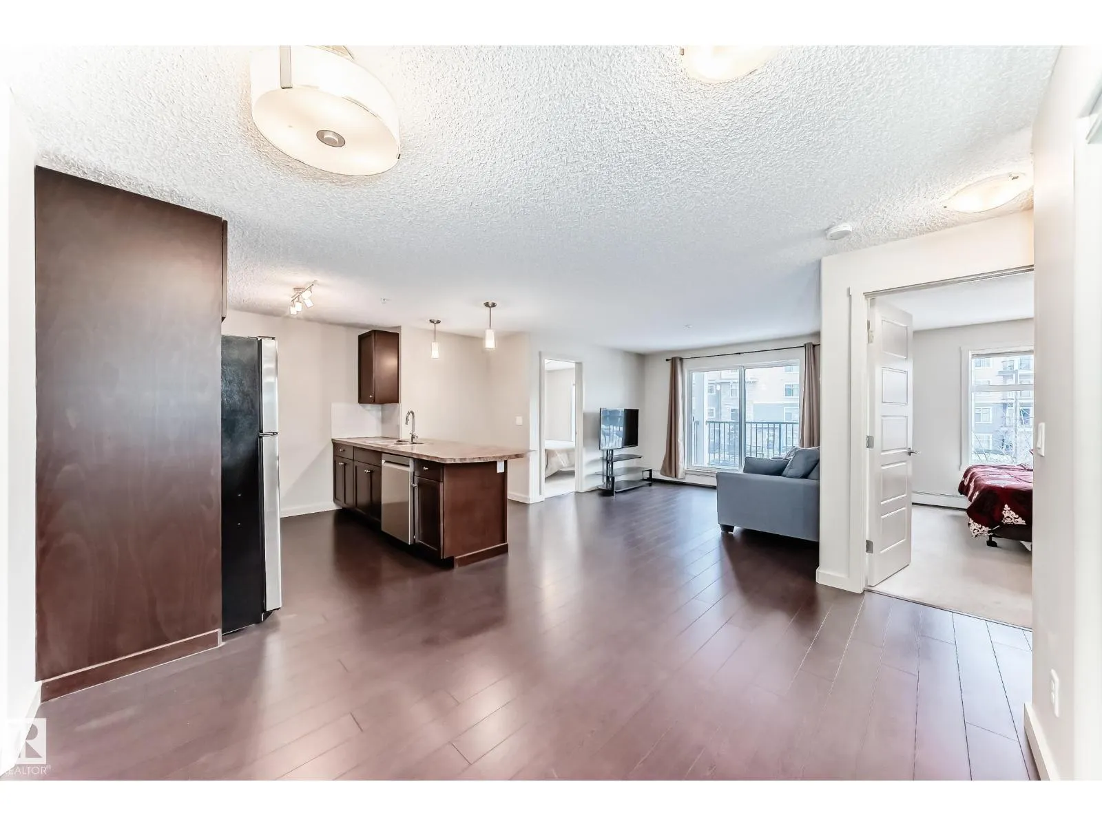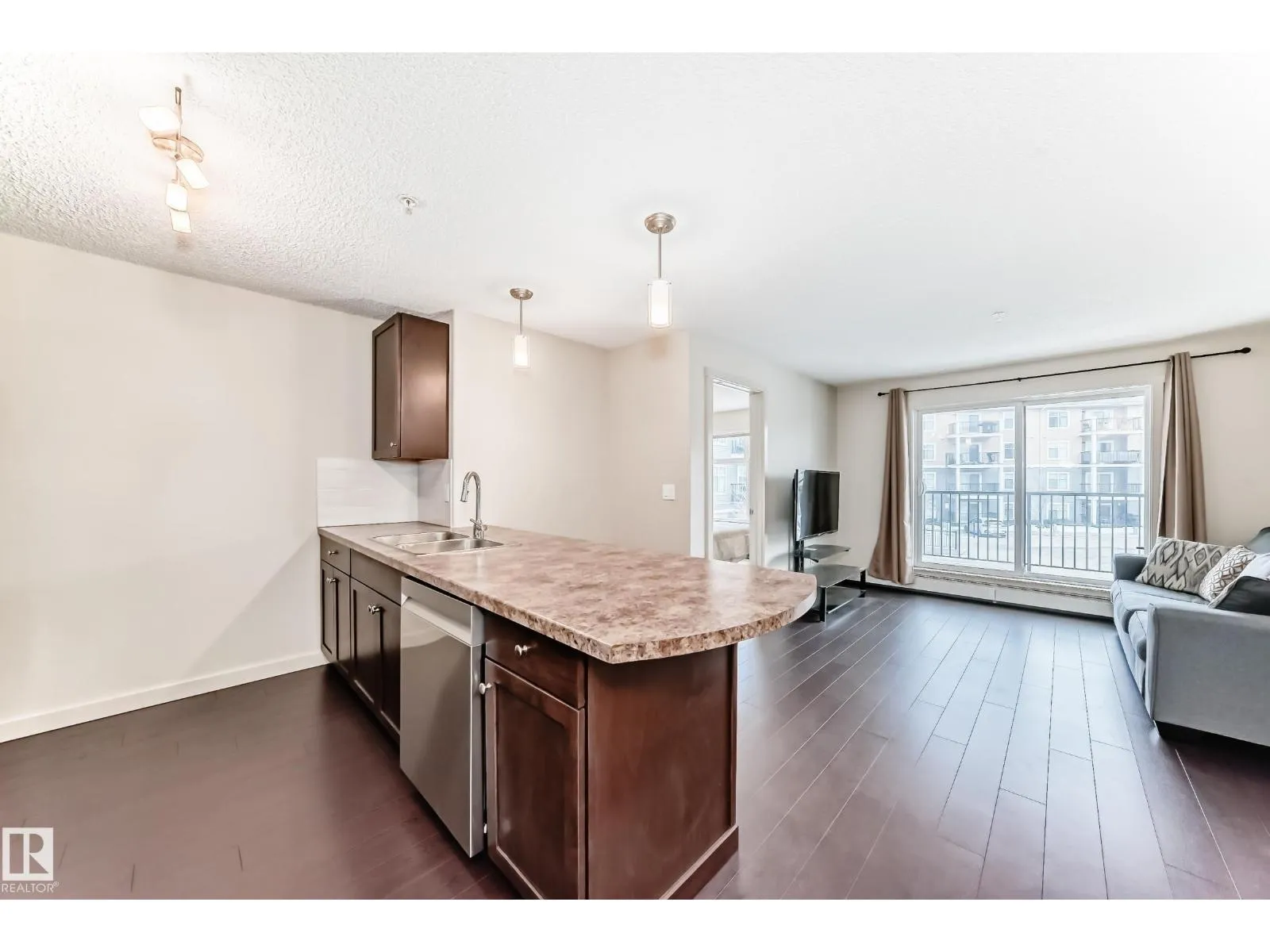 Welcome to this turn-key Schonsee unit! Original owner, Like-new 2 bedroom, 2 bathroom condo featuring a smart split-bedroom layout for added privacy. This bright 2nd-floor unit offers open-concept design with rich, dark kitchen cabinetry, stainless steel appliances, double sink, durable laminate flooring, in-suite laundry, & New SS Dishwasher - 2025 Enjoy a large, private & covered balcony w/ BBQ gas hookup & no shared neighbouring balcony, + 1 titled HEATED underground parking stall. LOW condo fees of just $363.54 include HEAT/WATER! This unit is conveniently located near elevator, stairway & is on the same floor as the social room, with additional building amenities including a fitness room. Close to schools, shopping, playground with SPRAY PARK, 2 nearby ponds (Shonsee Lake & Crystallina Lake), public transit, & quick access to Anthony Henday. Immediate possession available â ideal for first-time buyers or downsizers seeking low-maintenance living. Some pics virtually staged. Welcome home! (id:27476)