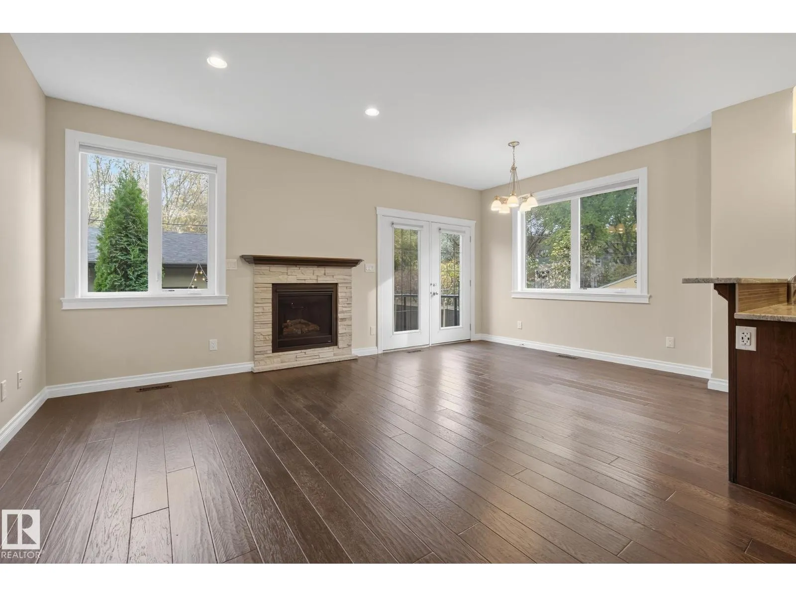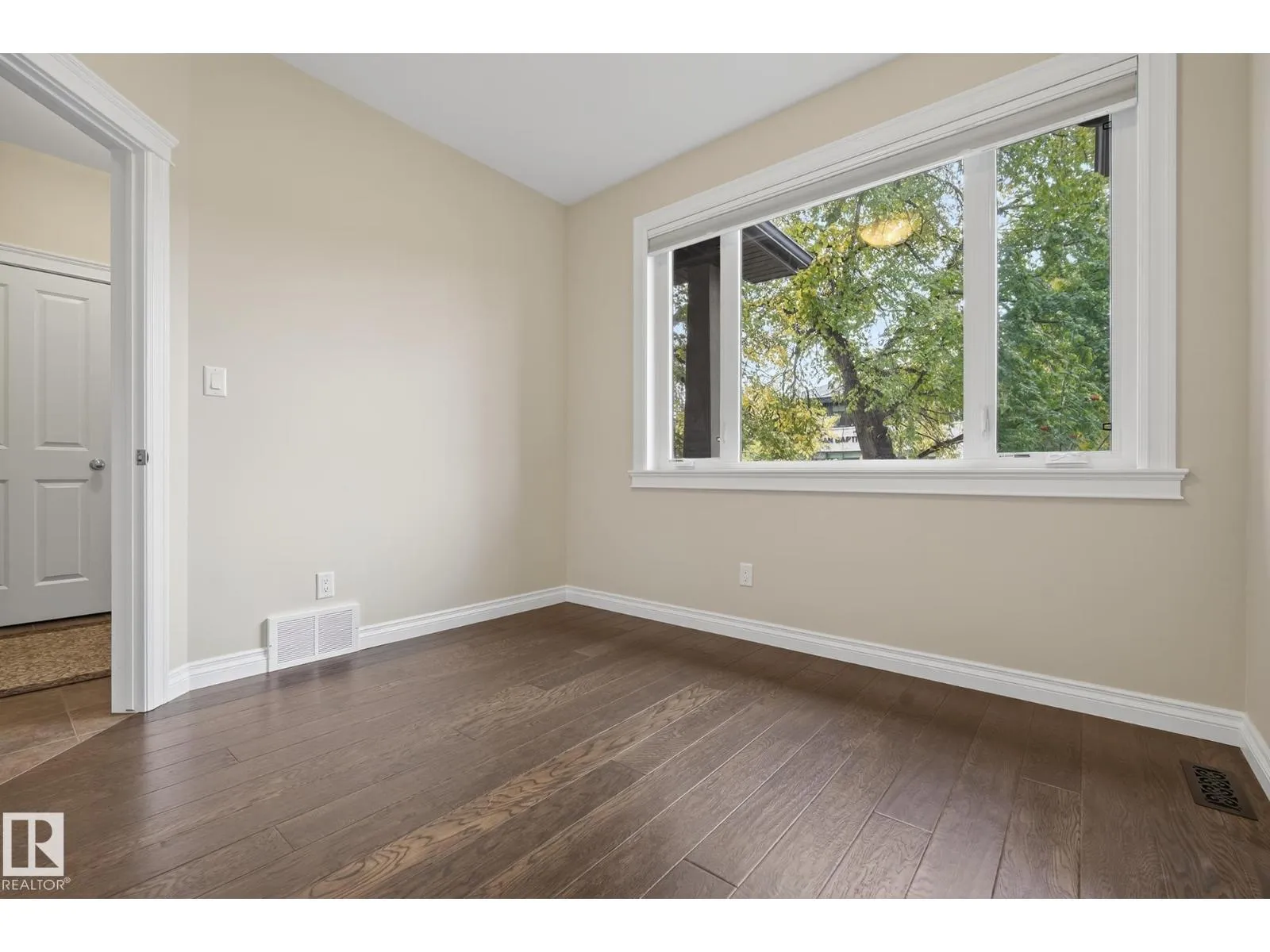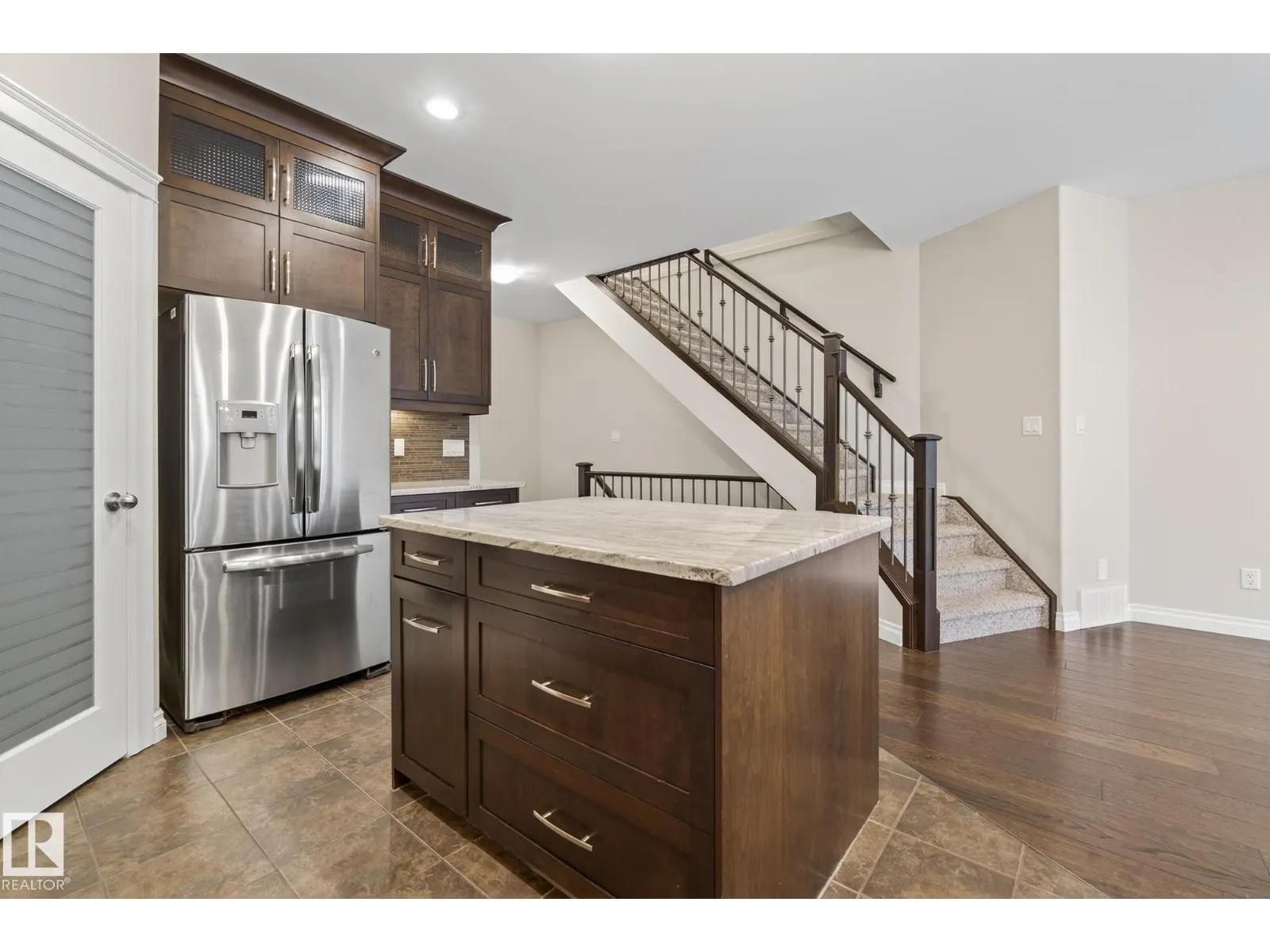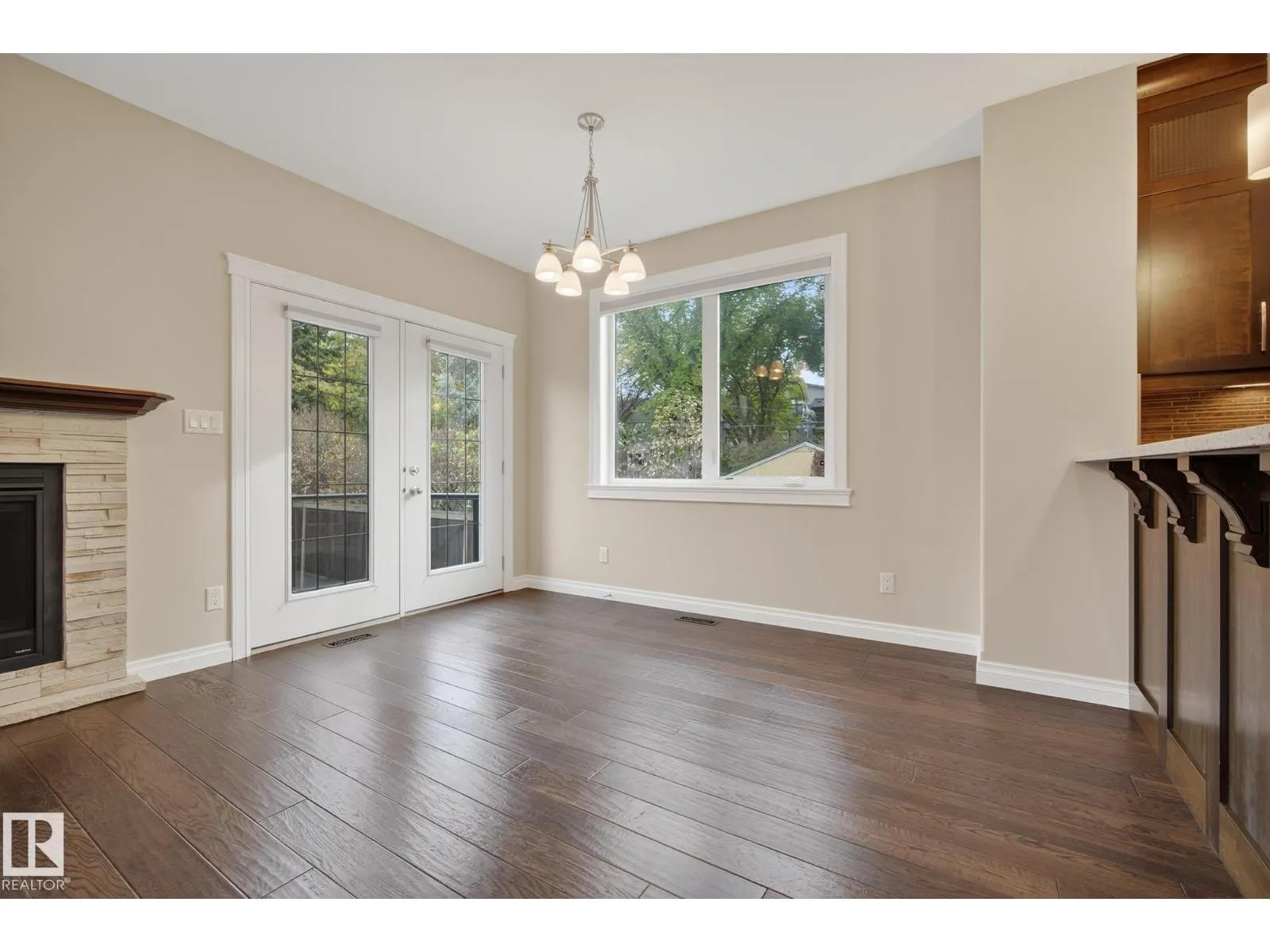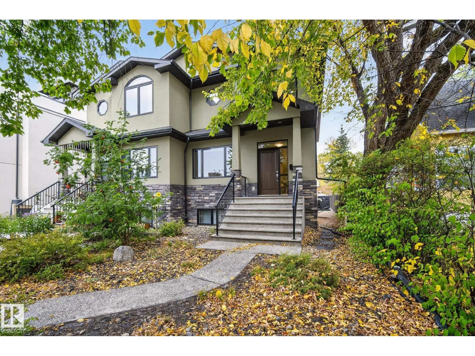 Welcome to McKernan! This beautifully built 3-bedroom, 2-storey half duplex offers over 1,830 sq. ft. of elegant living space steps from the University of Alberta. Thoughtfully designed and energy efficient, the exterior walls are foam-insulated, plus 1 rigid foam exterior insulation for the acrylic stucco R40 value energy efficiency. Featuring 9-foot ceilings, rich oak hardwood, and a cozy gas fireplace on the main floor. The gorgeous kitchen showcases mocha-stained maple cabinetry, granite counters, a large island, stainless steel appliances, and a corner pantry. A main floor den is perfect for a home office or guest room. Upstairs, the spacious primary suite includes a 5-piece ensuite and walk-in closet, with laundry conveniently nearby. Enjoy a maintenance-free composite deck, brick patio, and detached garage with extra parking. With quality finishes and timeless style, this home offers comfort and value in one of Edmontonâs most sought-after central neighbourhoods. (Some photos virtually staged) (id:27476)