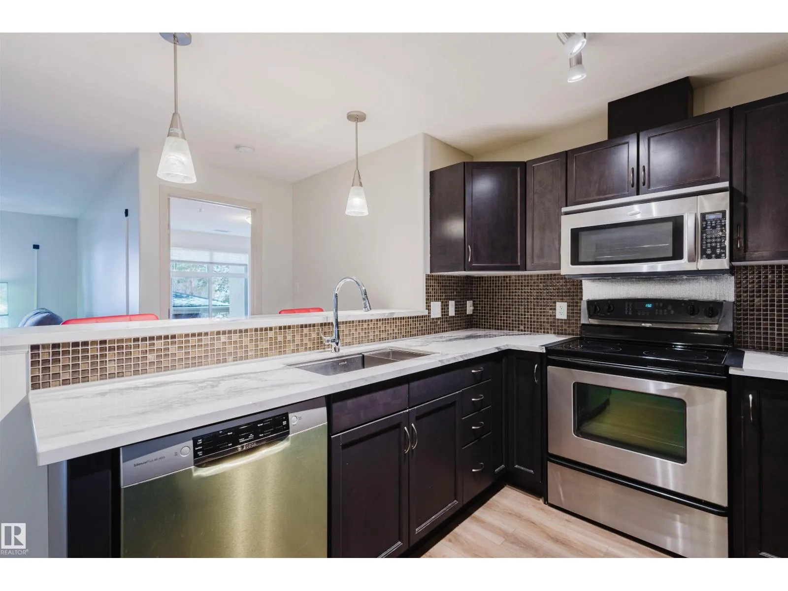 Welcome to URBAN VILLAGE - A well-managed complex offering exceptional amenities: swimming pool, hot tub, sauna, fitness room, library, social room & guest suite! This SPACIOUS, 1,000+ sqft, TWO bedrooms TWO baths unit has a very functional OPEN CONCEPT floor plan. Spacious foyer w/ tile flooring welcomes you into the unit. East facing living room has newer vinyl flooring & enough space for entertaining. Galley kitchen has new countertop, SS appliances & loads of cabinets. Primary bedroom has walkthrough closets & 3 pc ensuite. Large balcony has BBQ gas hook-up, in-suite laundry with storage space. One titled underground heated parking w/ storage cage. Steps to Whtye AVE & short commute to UofA, downtown & easy access to Sherwood Park Freeway & Anthony Henday. A fantastic opportunity for comfortable condo livingâdonât miss it! (id:27476)