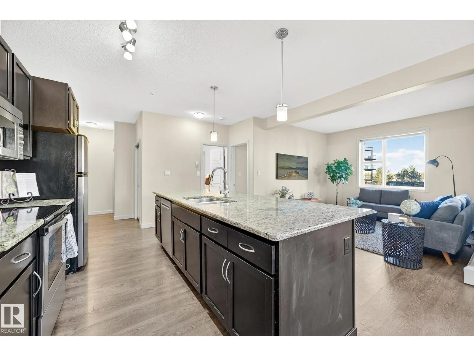 AMAZING opportunity to own this 985 sq.ft BRIGHT & MODERN 2 BED+DEN & 2 Bath CORNER Unit with TANDEM (2) UNDERGROUND PARKING & STORAGE CAGE located in the highly sought after & conveniently located community of AMBLESIDE! Surrounded by walking trails, you'll love being just STEPS to the Currents of Windermere with endless shops, restaurants & amenities and quick access to the Henday. This beautiful home offers an open concept floor plan with 9 Ft ceilings & LARGE WINDOWS THROUGHOUT and features a CAPTIVATING kitchen with an EXPANSIVE island with stunning granite counters, sleek s/s appliances & espresso cabinetry & overlooks the spacious living room & dining room that separates both bedrooms for added privacy. The versatile den is great for a home office or extra storage. The primary bedroom offers a walkthru closet & 3pc ensuite & rounding off the space is the 2nd bedroom, 4pc bath & INSUITE LAUNDRY. Building amenities include the FITNESS CENTRE, GUEST SUITE & SOCIAL ROOM complete with a pool table. (id:27476)