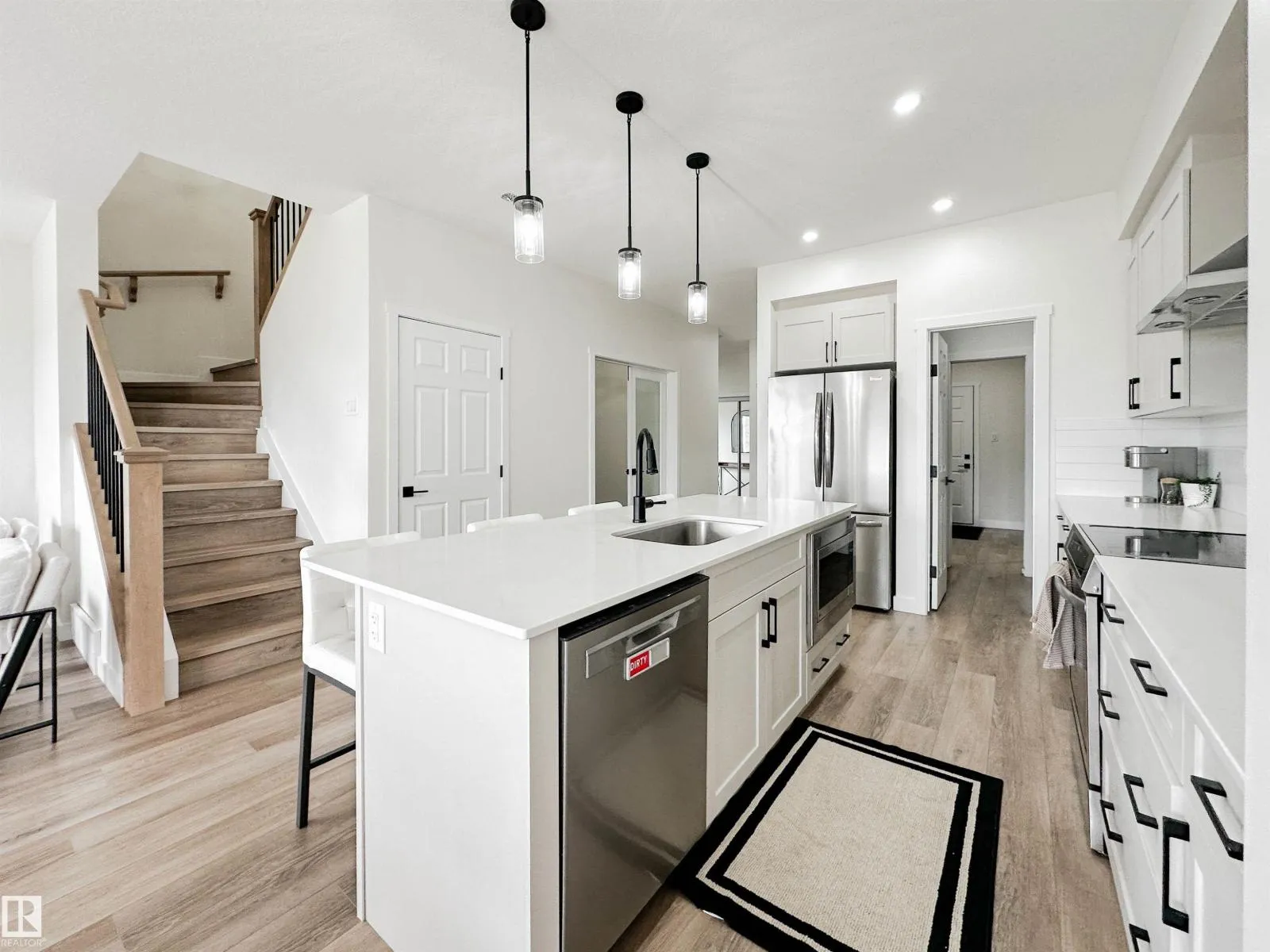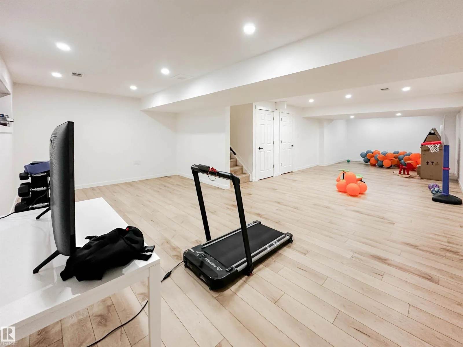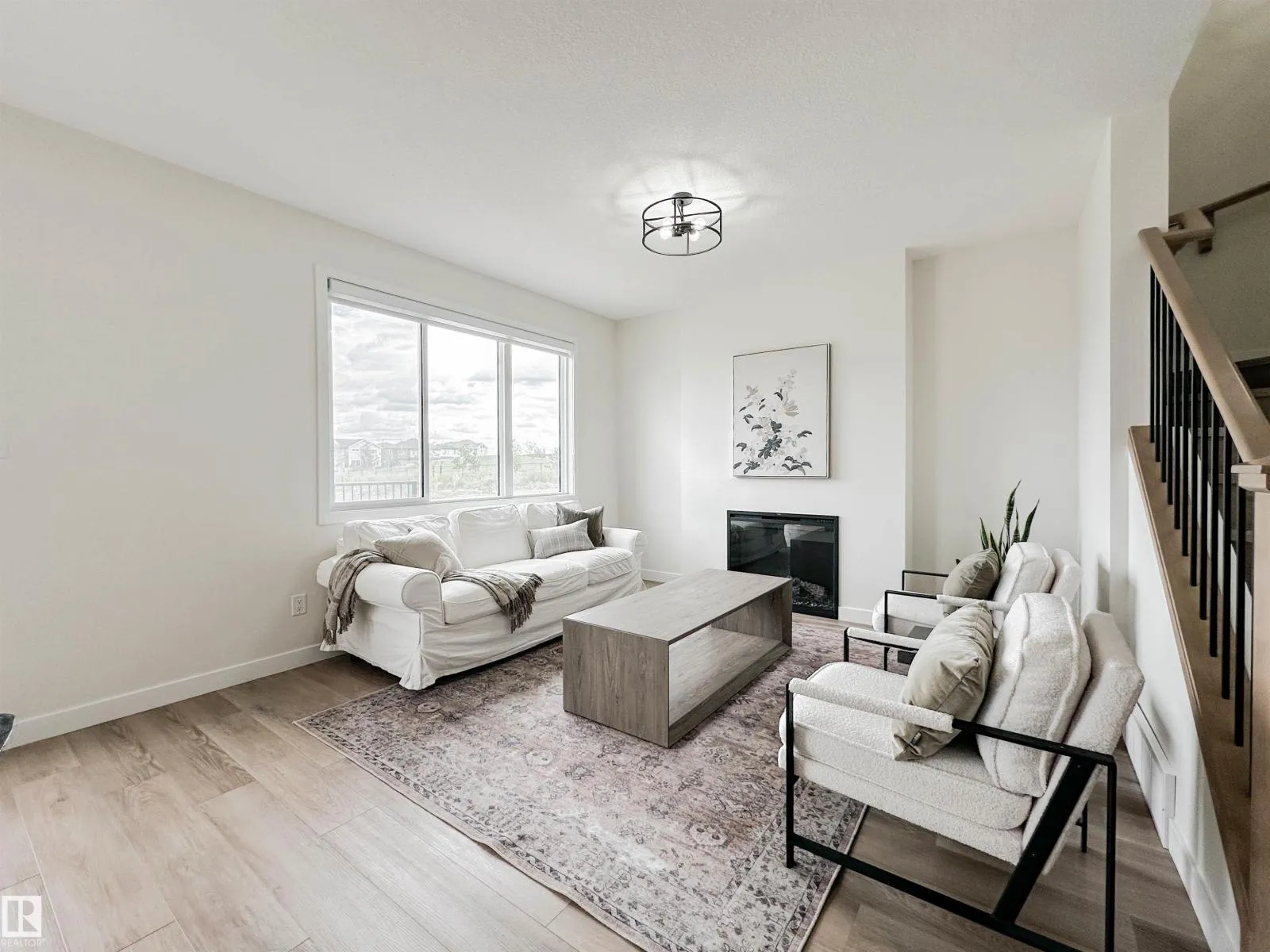 Welcome to this beautifully crafted family home, perfectly located on a quiet street in the heart of Trumpeter at Big Lake. Offering nearly 2,200 sqft. of thoughtfully designed living space, this home blends style with everyday functionality. The main floor features a spacious foyer, versatile flex room, & bright open-concept kitchen with quartz countertops & walk-through pantry leading to a mudroom with built-in cubbies, large closet, & garage access. The great room is highlighted by a cozy electric fireplace, while oversized windows flood the space with natural light. A convenient 2-pc bath completes the main level. Upstairs offers 3 bedrooms, including a primary suite with a walk-in closet & 3-pc ensuite, plus a bonus room, 4-pc bath, & laundry. The finished basement includes a large recreation area with potential for an additional bedroom & bathroom, along with ample storage. Ideally located close to all amenities with quick access to the Henday & Yellowhead Trail, perfect for modern family living. (id:27476)