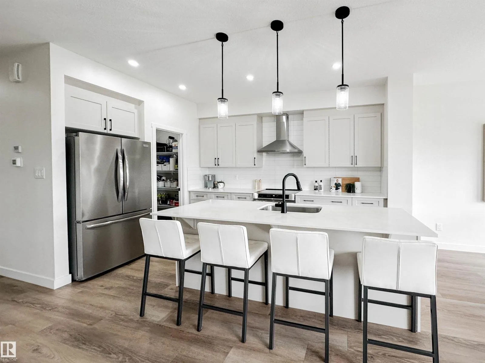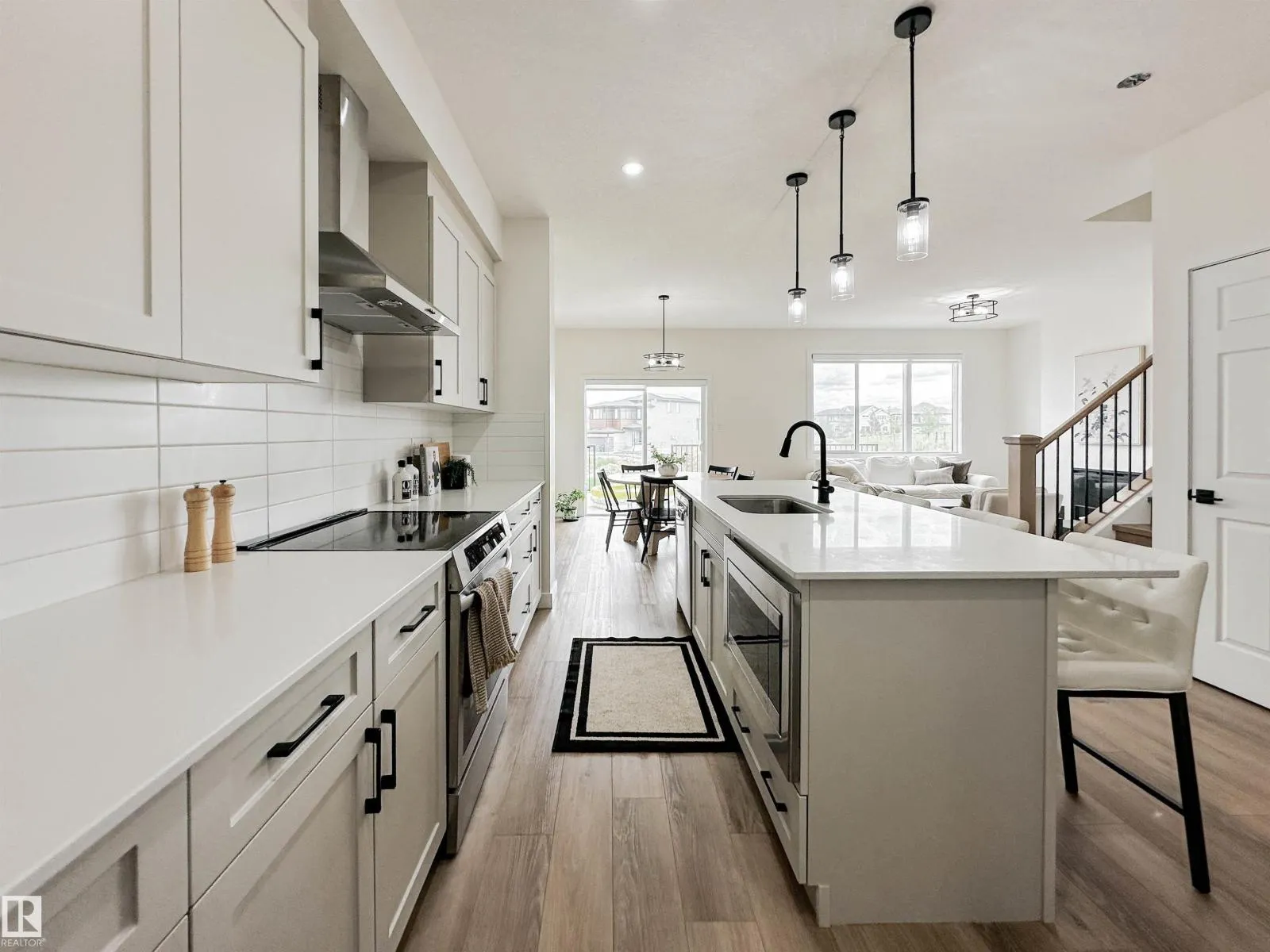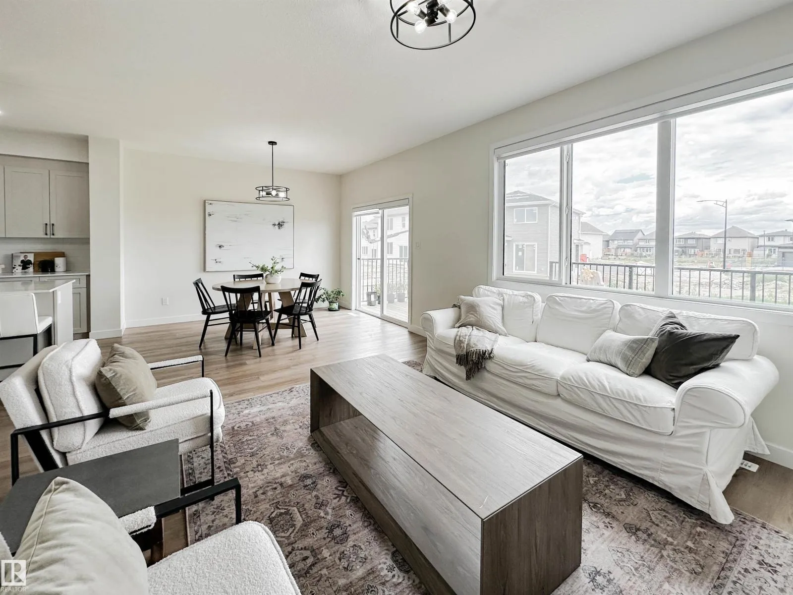 Welcome to this beautifully crafted family home, perfectly located on a quiet street in the heart of Trumpeter at Big Lake. Offering nearly 2,200 sqft. of thoughtfully designed living space, this home blends style with everyday functionality. The main floor features a spacious foyer, versatile flex room, & bright open-concept kitchen with quartz countertops & walk-through pantry leading to a mudroom with built-in cubbies, large closet, & garage access. The great room is highlighted by a cozy electric fireplace, while oversized windows flood the space with natural light. A convenient 2-pc bath completes the main level. Upstairs offers 3 bedrooms, including a primary suite with a walk-in closet & 3-pc ensuite, plus a bonus room, 4-pc bath, & laundry. The finished basement includes a large recreation area with potential for an additional bedroom & bathroom, along with ample storage. Ideally located close to all amenities with quick access to the Henday & Yellowhead Trail, perfect for modern family living. (id:27476)