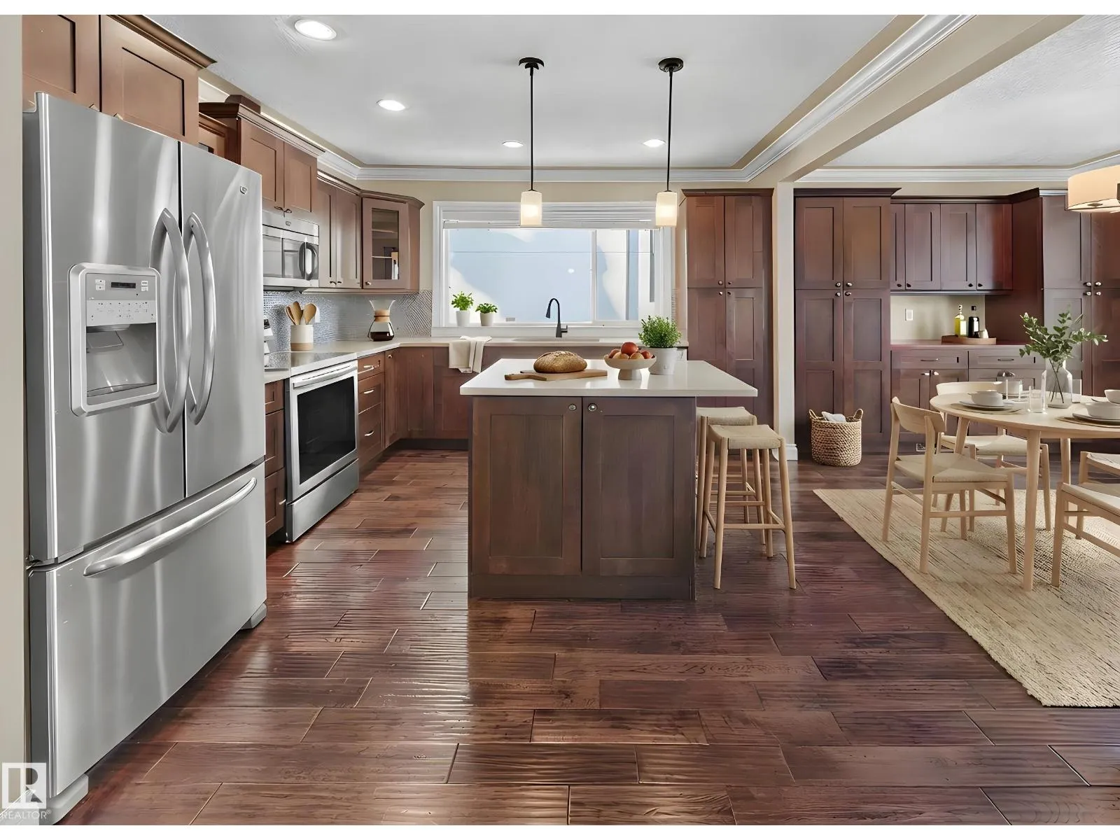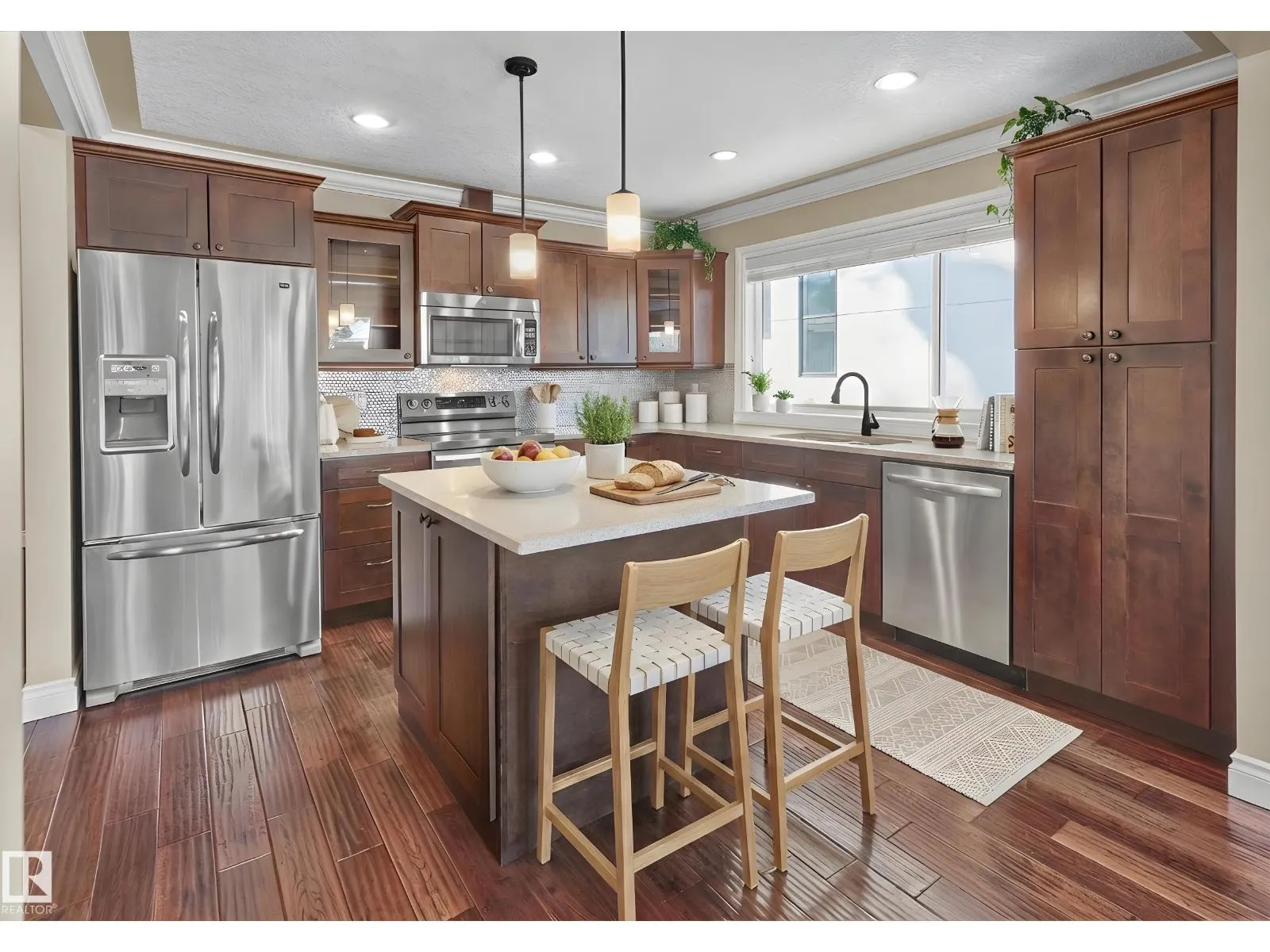 This well-updated 1,271 sq.ft. bungalow in the heart of Belgravia offers 5 bedrooms total & a highly functional layout ideal for a variety of living arrangements. The open main floor features hardwood and tile flooring, a spacious living room, formal dining area, & an updated chefâs kitchen w/ sit-up island, quartz countertops, tile backsplash, undermount sink, & updated high-end stainless steel appliances. Three well-sized bedrooms, a stylish four-piece bathroom w/ quartz & tile finishes, & main-floor laundry complete the level. The fully finished lower level is accessed via a separate side entrance and includes a second kitchen, living area, two bedrooms, a full bathroom with a tile surround, a second laundry, & ample storage. Additional updates include windows, forced-air furnace, 100-amp electrical, and a finished, heated double detached garage. Ideally located close to the University of Alberta, River Valley, transit, and everyday amenities, this is a rare opportunity in one of Edmontons top areas! (id:27476)