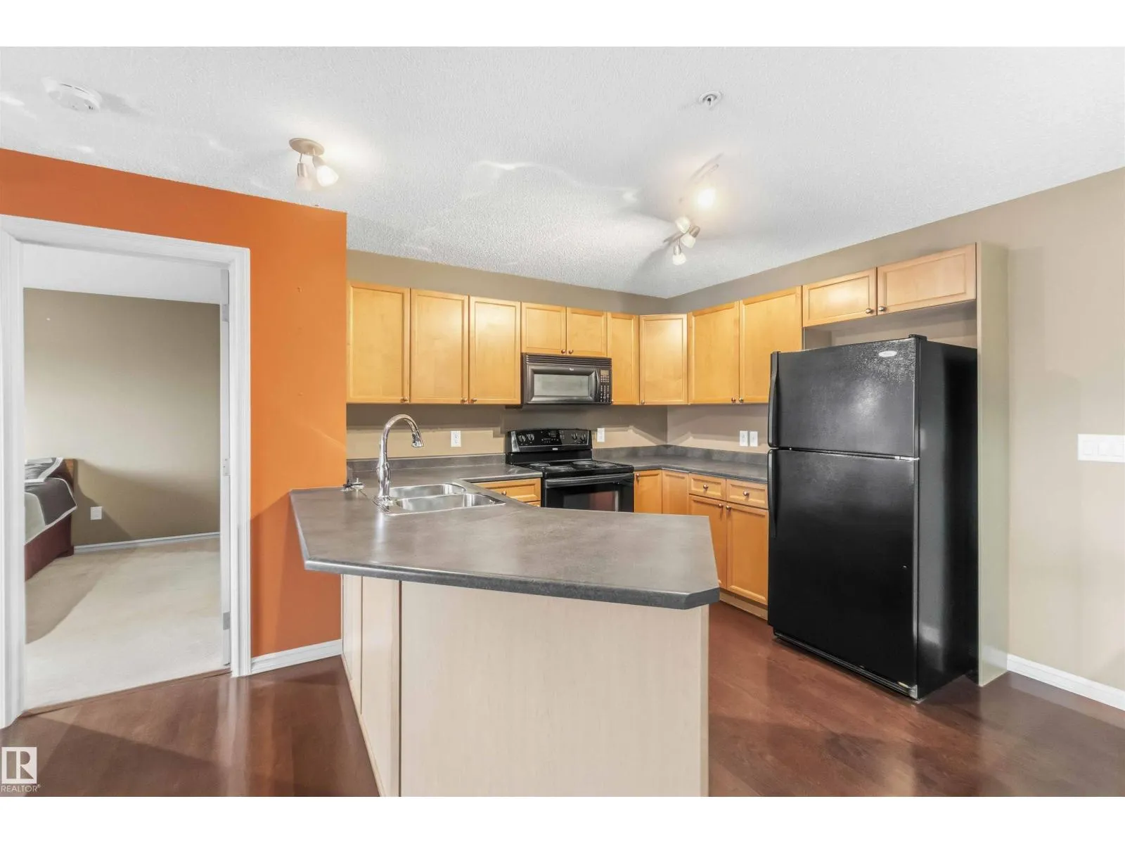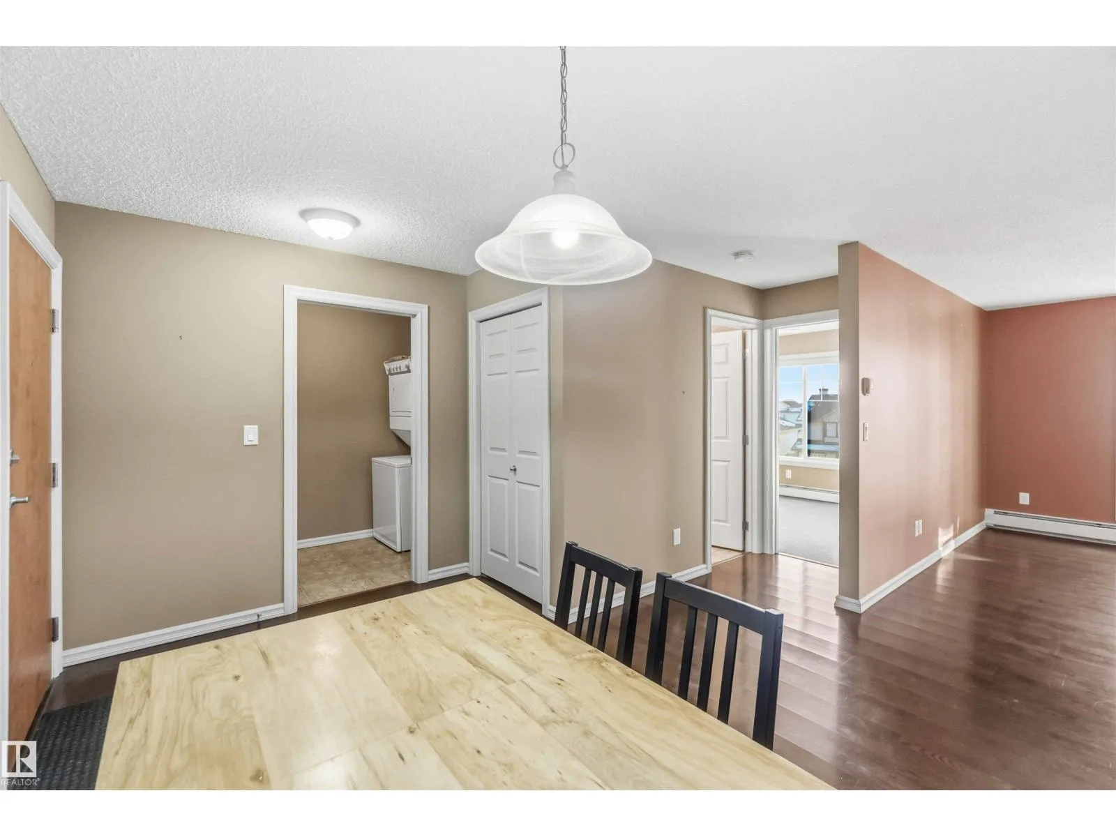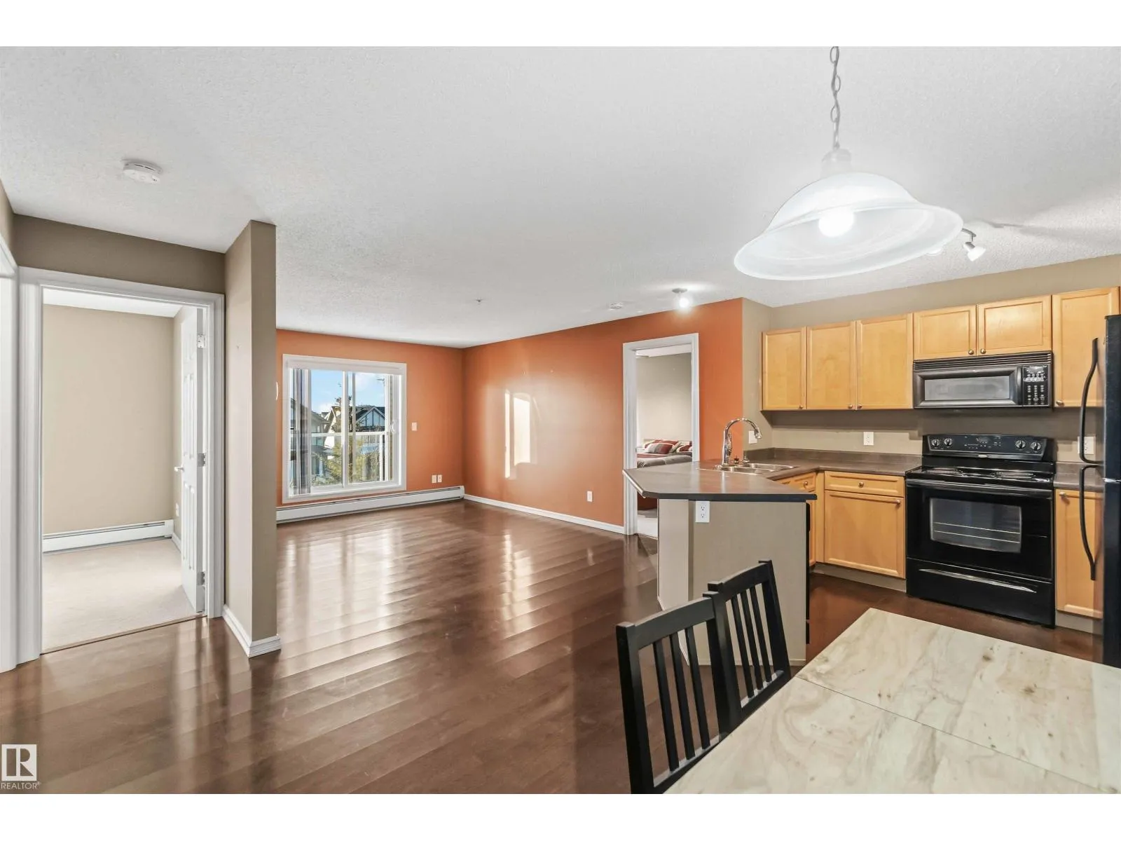 This move-in-ready 2 Bedroom, 2 Bathroom apartment offers a bright, open-concept layout with no hallways, creating a spacious and seamless flow throughout. The primary bedroom features a convenient walkthrough closet and private ensuite. The kitchen is both functional and inviting, complete with maple cabinets, matching appliances, and a peninsula eating bar ideal for casual dining or entertaining. Enjoy the ease of in-suite laundry and extra storage, along with two parking stallsâone securely located in the heated underground parkade. Step out onto the lovely west-facing balcony and take in sweeping views over neighboring rooftops, perfect for sunset watching and relaxing in the afternoons. The clean, modern building includes a fitness room, and just north of the property youâll find beautiful green space with fantastic walking trails, making this home an ideal blend of comfort, convenience, and lifestyle. (id:27476)