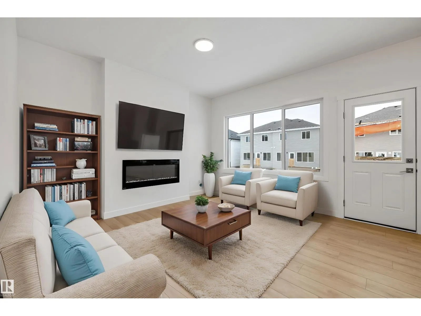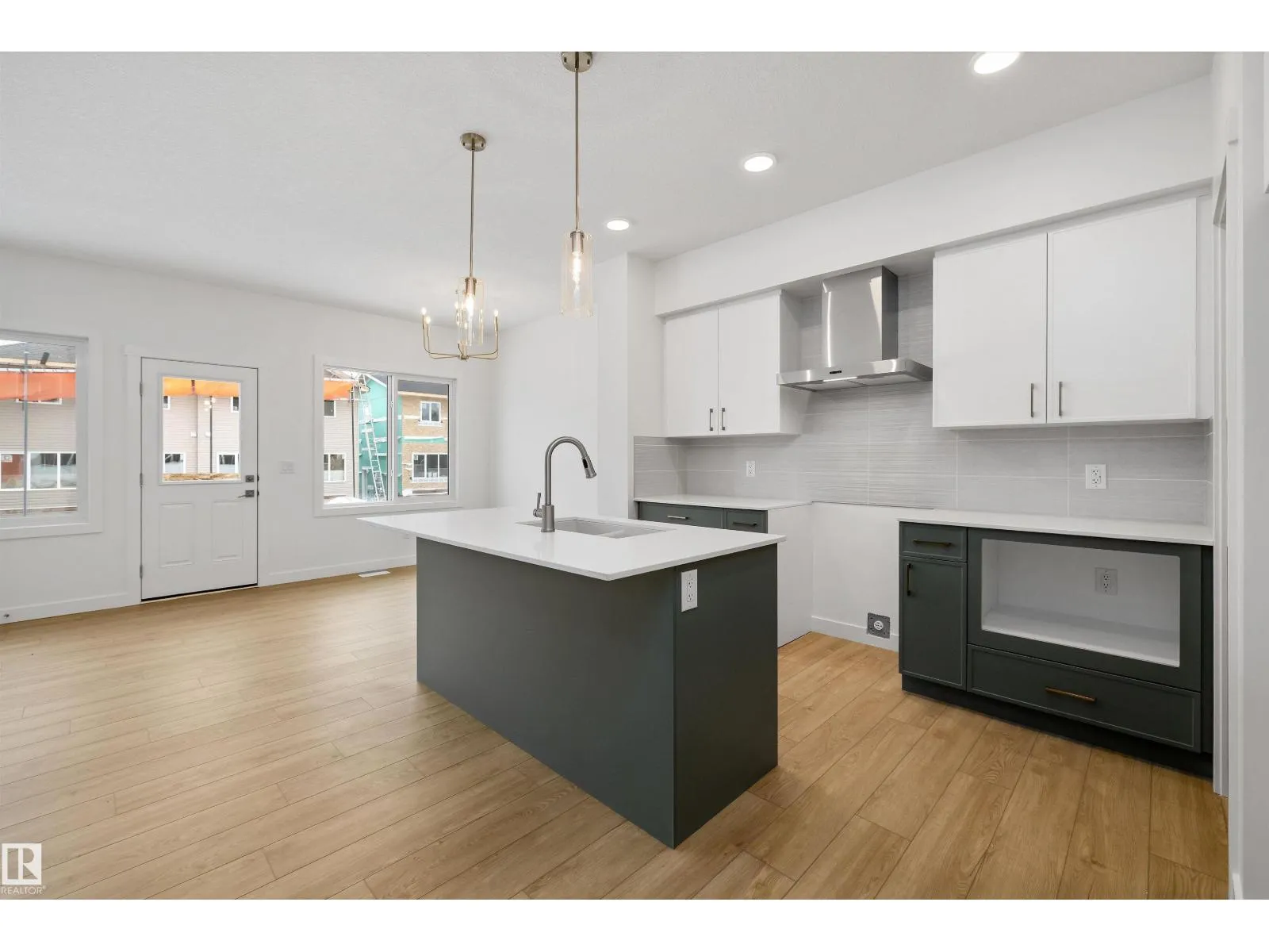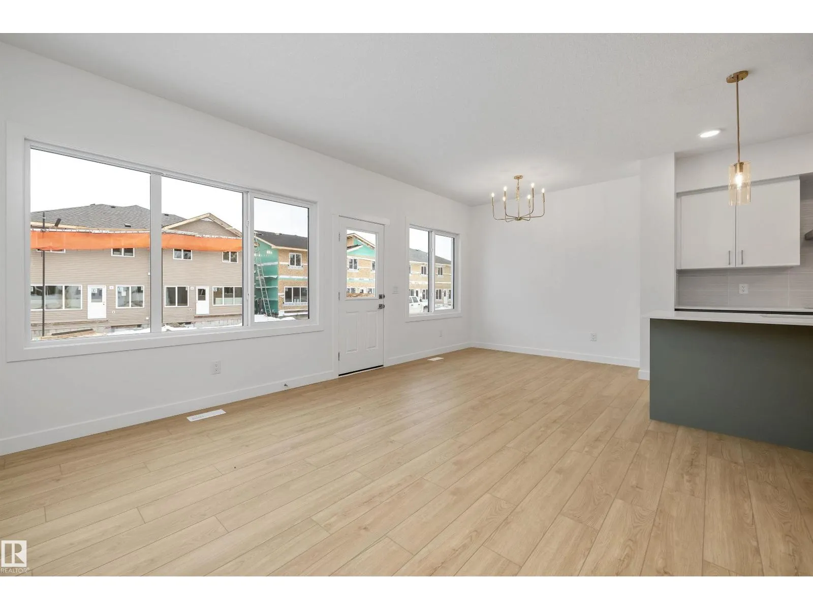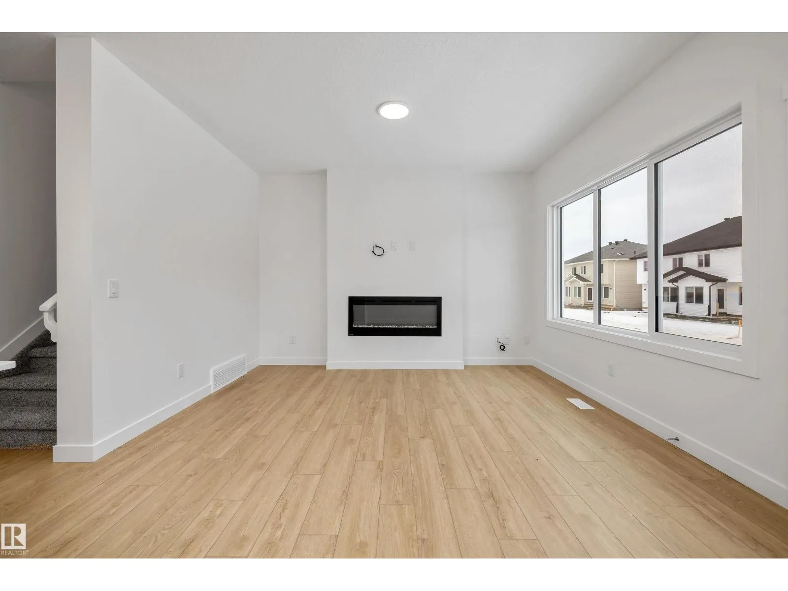 Modern luxury meets everyday functionality in The Renew, a beautifully finished half-duplex featuring impressive 9-foot ceilings on both the main floor and basement. The open-concept main level is styled with durable luxury vinyl plank flooring and a welcoming foyer. At the heart of the home, the designer kitchen showcases quartz countertops, upgraded soft-close Thermofoil cabinetry, and a chimney-style hood fan with a full-height backsplash. The central island with a Silgranit undermount sink and pendant lighting overlooks a bright great room, complete with an electric fireplace and access to the future deck. Upstairs, you will find a versatile bonus room, laundry area, and three bedrooms, including a primary suite with a walk-in closet and private ensuite. Notable extras include a double attached garage with a floor drain, a separate side entrance, brushed nickel fixtures, and basement rough-ins for two future bedrooms. This home is designed for comfort and growth. (id:27476)