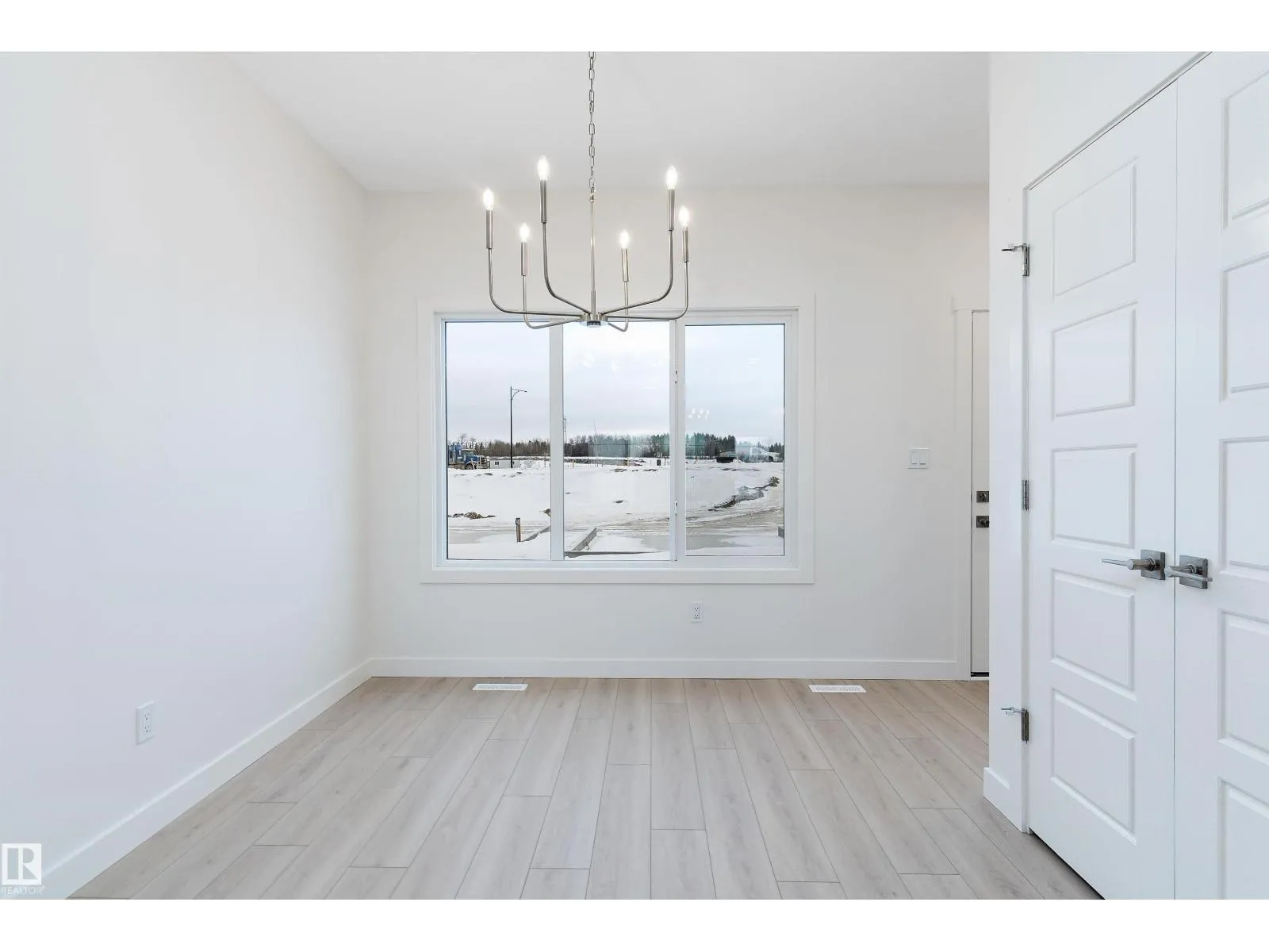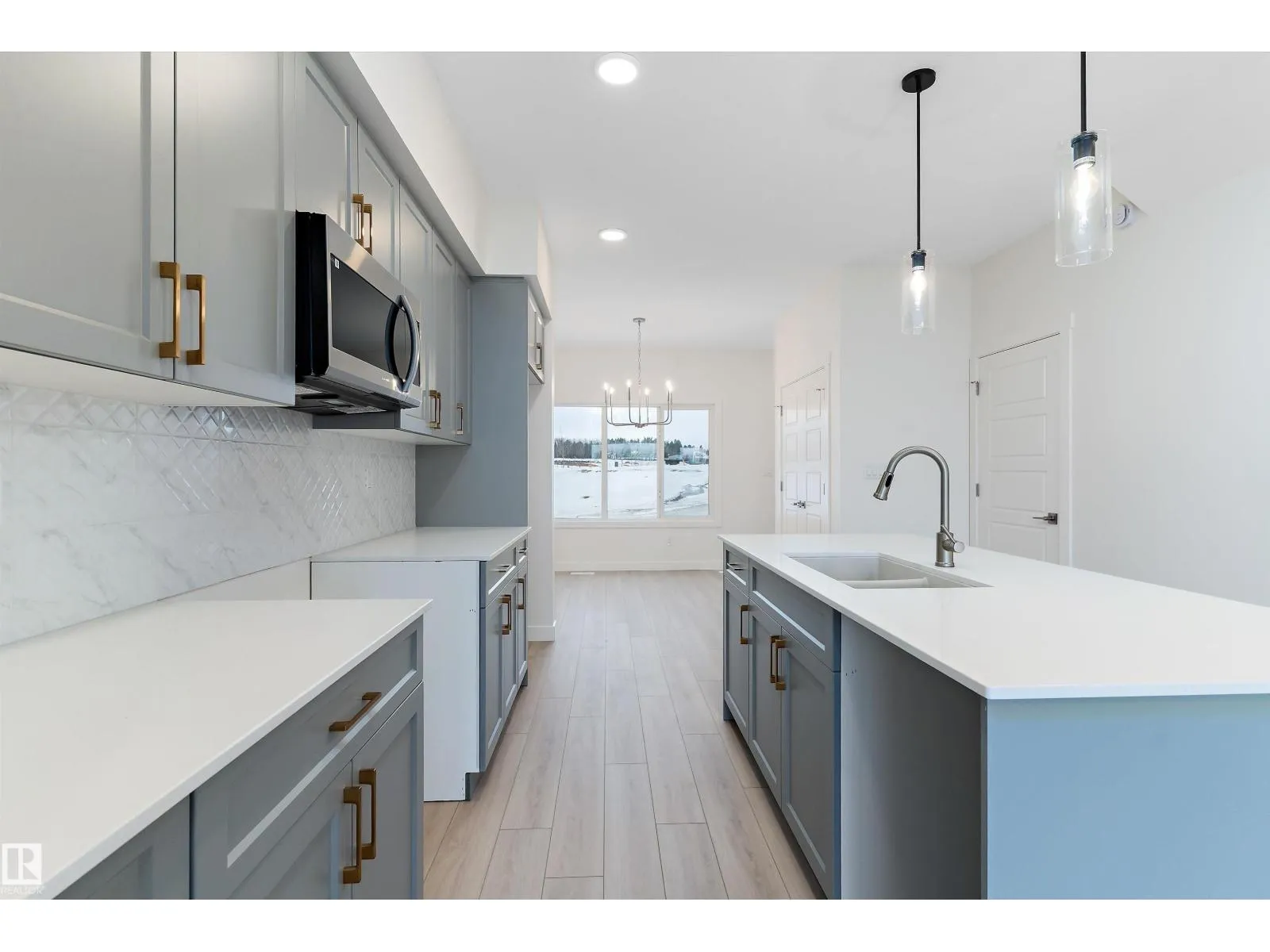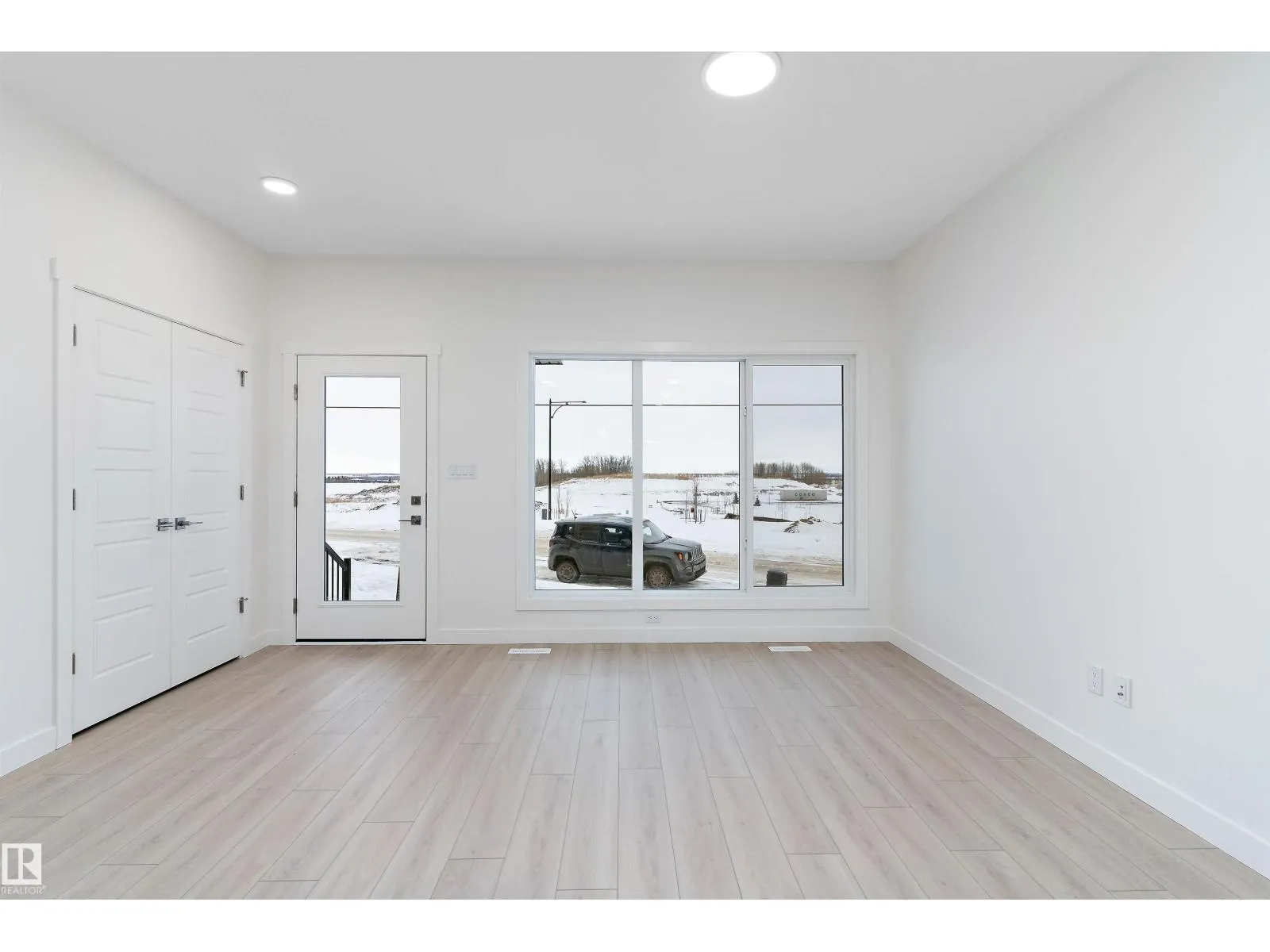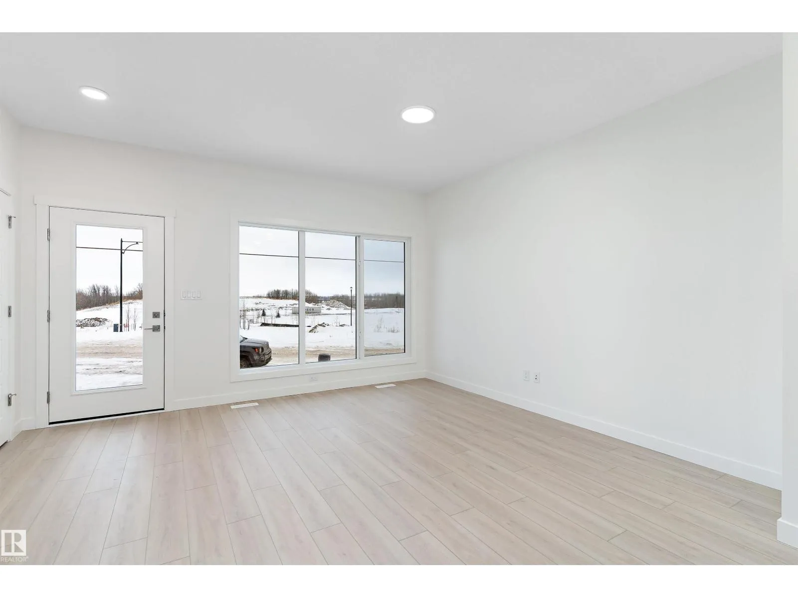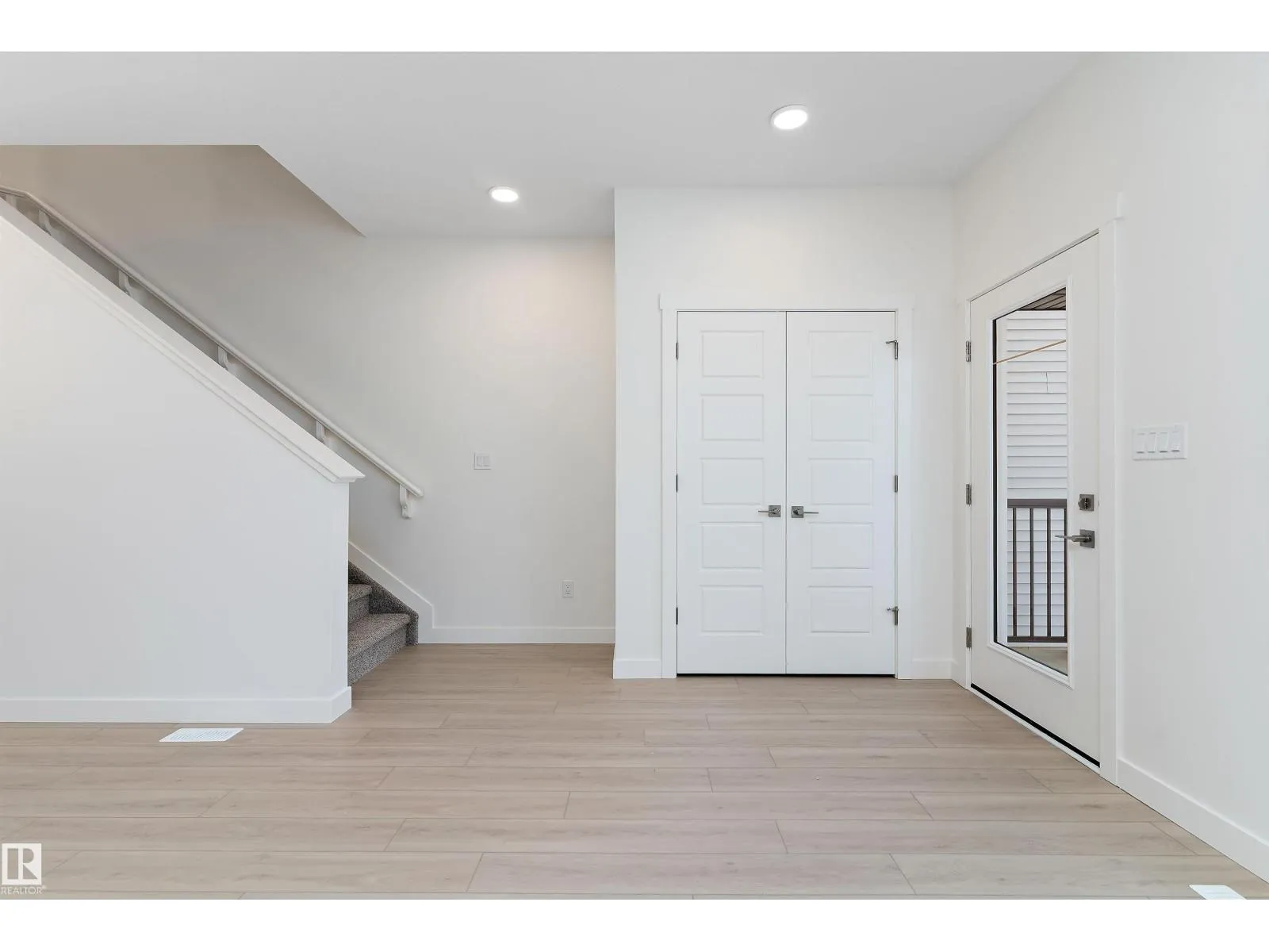 The Stellar offers modern comfort and efficient design with luxury vinyl plank flooring and 9â ceilings on the main floor. A bright foyer with coat closet leads into a sun-filled great room with a large front window. The central kitchen features quartz countertops throughout, an island with eating ledge, undermount composite sink, upgraded Thermofoil cabinetry, and a spacious pantry. The rear dining area overlooks the backyard and sits alongside a convenient powder room and back entry to a parking pad, with the option to add a detached double garage. Upstairs includes an open loft, a primary bedroom with walk-in closet and 3-piece ensuite, two additional bedrooms, a main 3-piece bath, and a stackable laundry closet. Added features include brushed nickel fixtures, 9â ceilings on the main and basement levels, a separate side entrance, and basement rough-in plumbing. (id:27476)