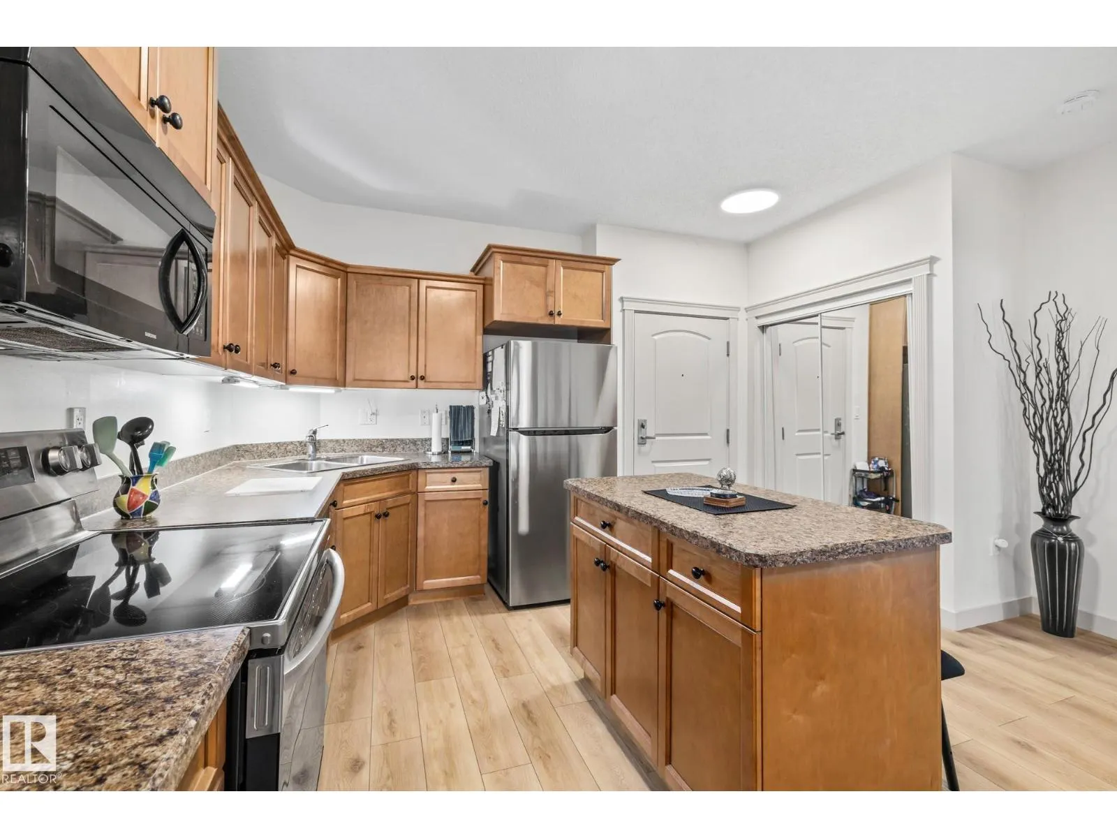 Welcome to The Vanier, an exclusive residence tailored for adults aged 55+. Step into this fully renovated 2-bedroom, 2-bathroom sanctuary, adorned with fresh paint and new vinyl plank flooring throughout. The open-concept layout welcomes you into a spacious kitchen with ample cabinetry and an inviting island. Retreat to the expansive primary bedroom, boasting a generous walk-in closet and a luxurious 3-piece en-suite. Large 4-piece bathroom conveniently located off the living room next to spacious second bedroom. In-suite laundry with new washer and dryer. Step outside onto your BRAND NEW, private north-facing balcony to soak in the sunshine and fresh air. Fan coil cooling for hot summer nights! Underground parking, complete with secure storage and a convenient car wash bay. Embrace a vibrant community lifestyle with our scheduled monthly events, experience upscale living at The Vanier. Non-smoking building. (id:27476)
