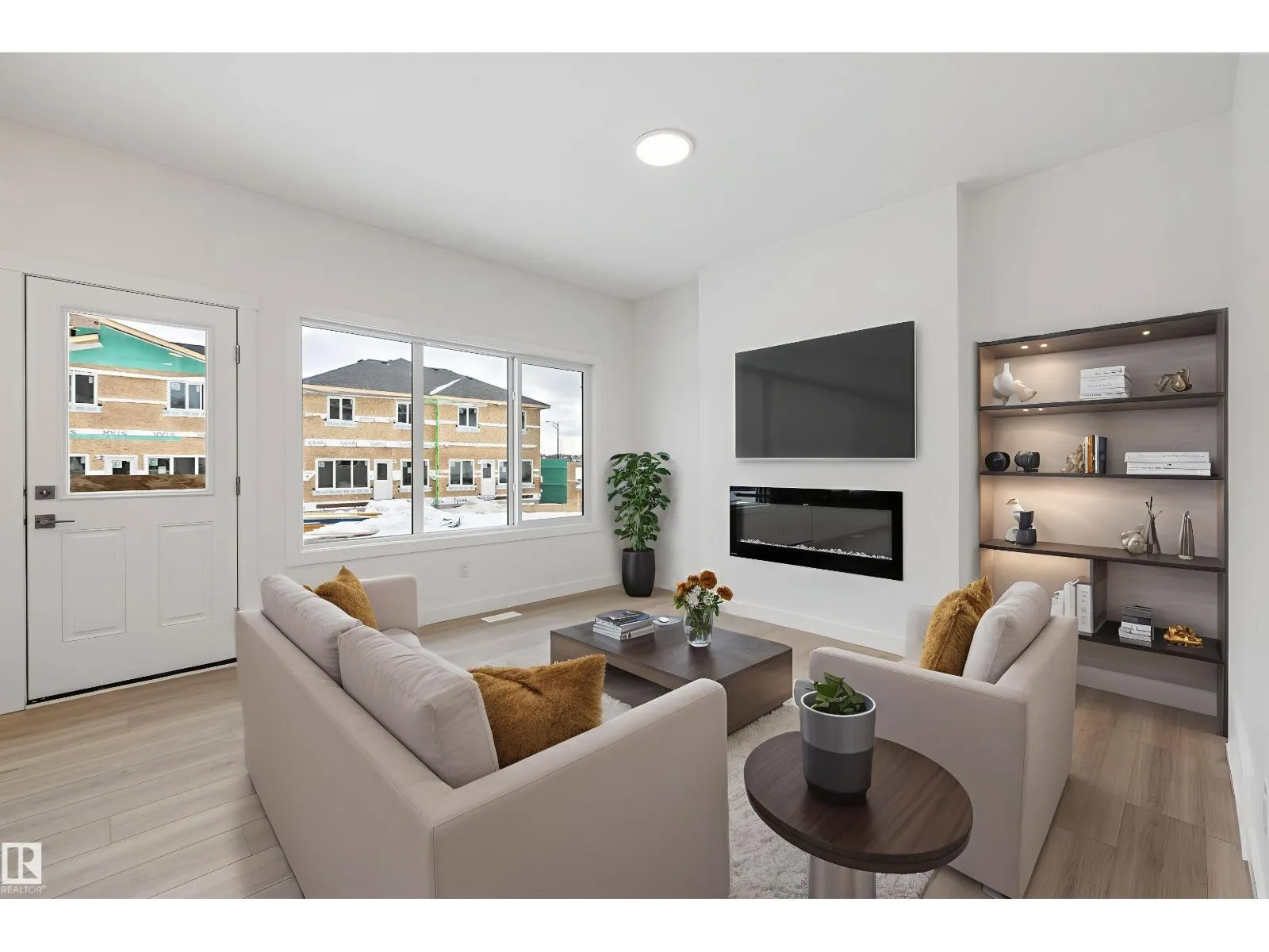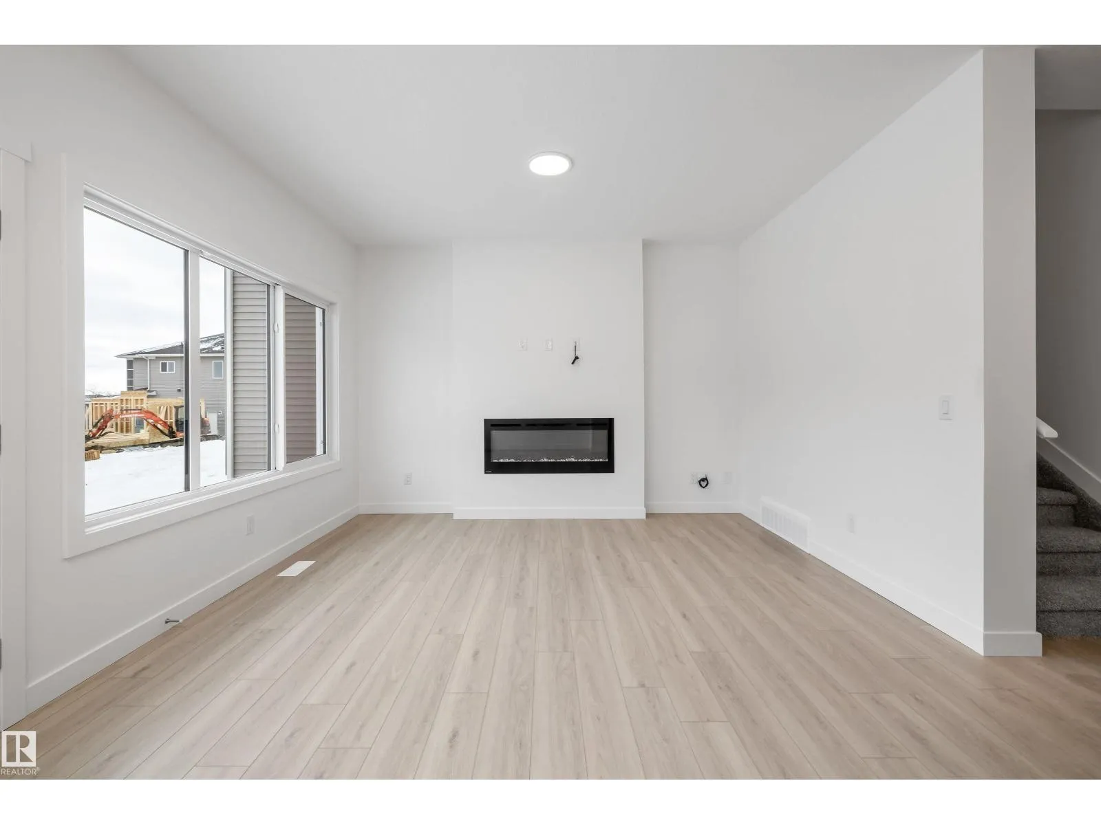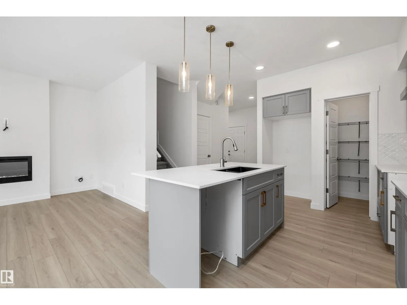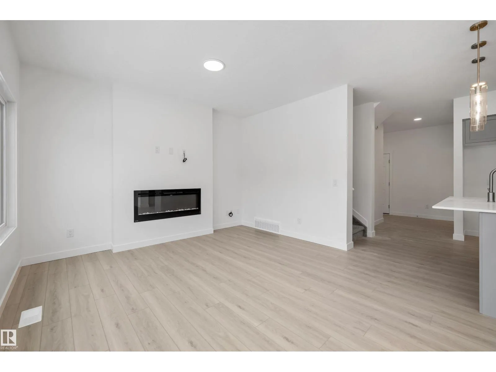 Experience the perfect blend of style and function in The Renew, a sophisticated half-duplex featuring 9-foot ceilings on both the main floor and basement levels. This open-concept home is finished with luxury vinyl plank flooring and a welcoming foyer that leads into a gourmet kitchen. The kitchen is a standout with upgraded soft-close Thermofoil cabinetry, quartz countertops, a corner pantry, and a central island with a Silgranit undermount sink. High-end touches include a chimney-style hood fan, built-in microwave, and elegant pendant lighting. The great room, anchored by a modern electric fireplace, offers large windows and access to the future deck. Upstairs, you will find a versatile bonus room, dedicated laundry, and three spacious bedrooms, including a primary suite with a walk-in closet and private ensuite. Complete with a separate side entrance, a double attached garage with a floor drain, and brushed nickel accents throughout, this home is move-in ready. (id:27476)