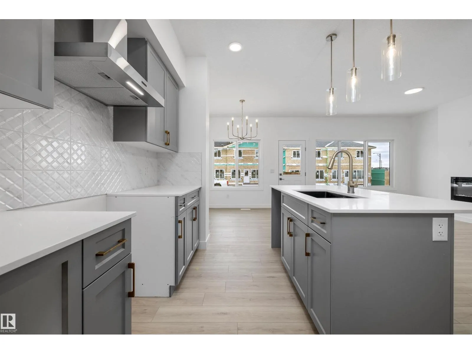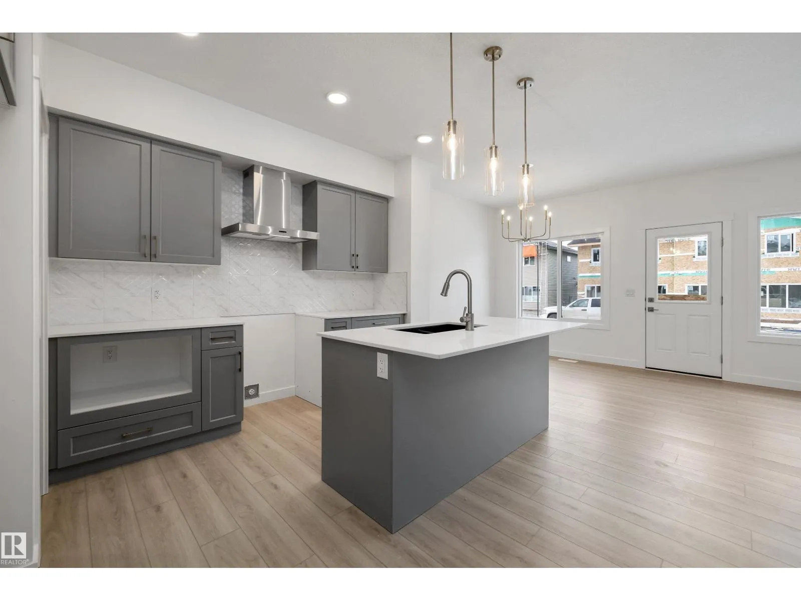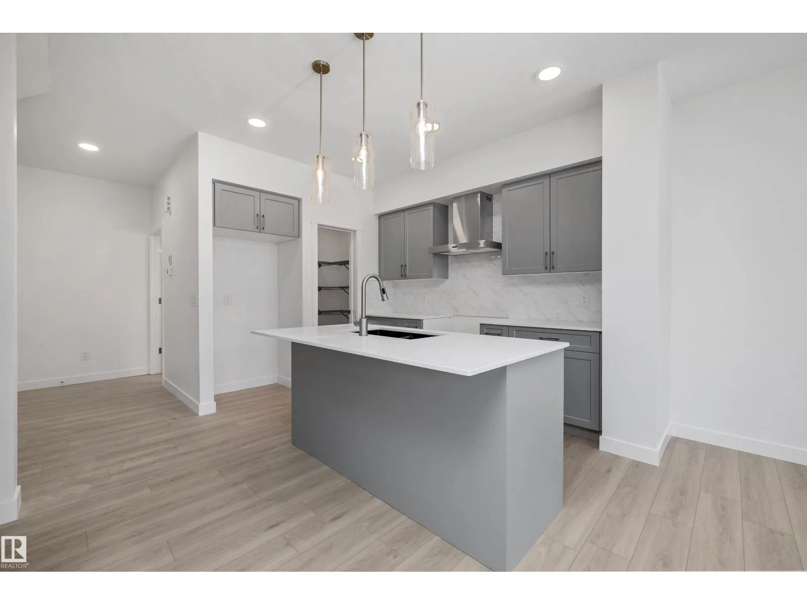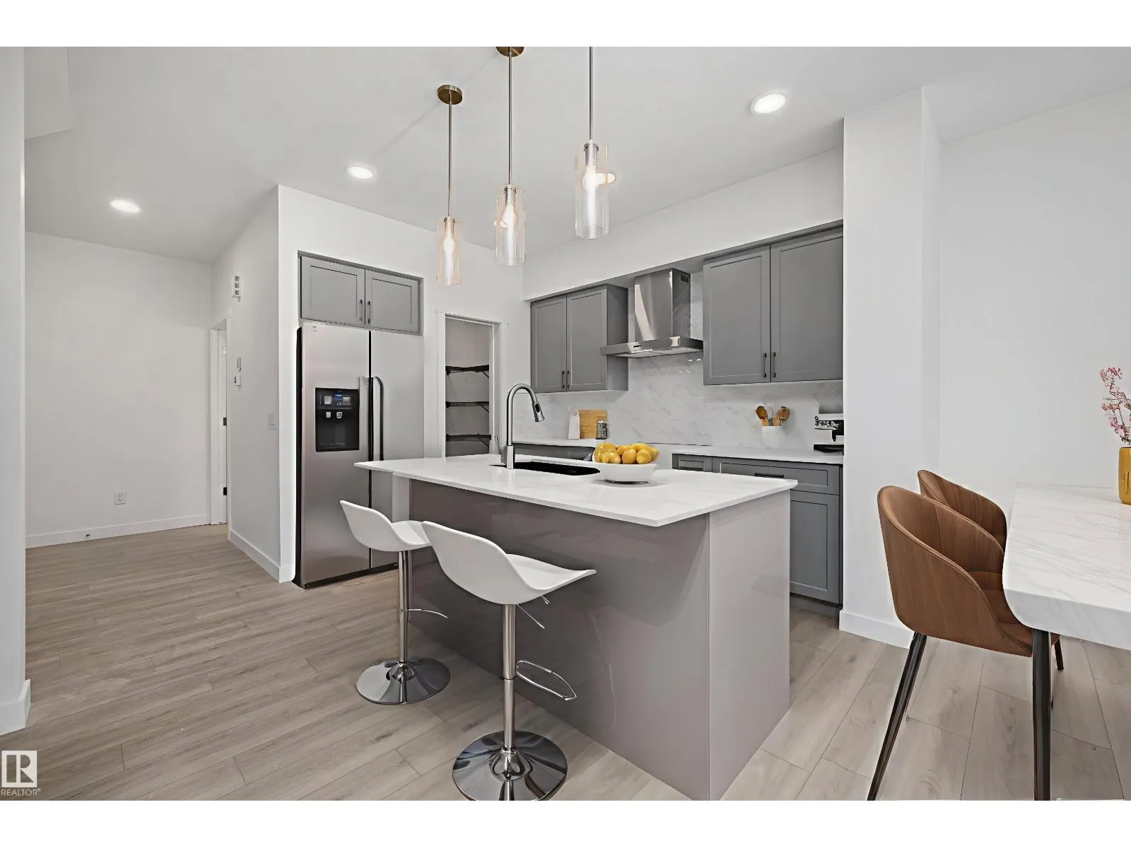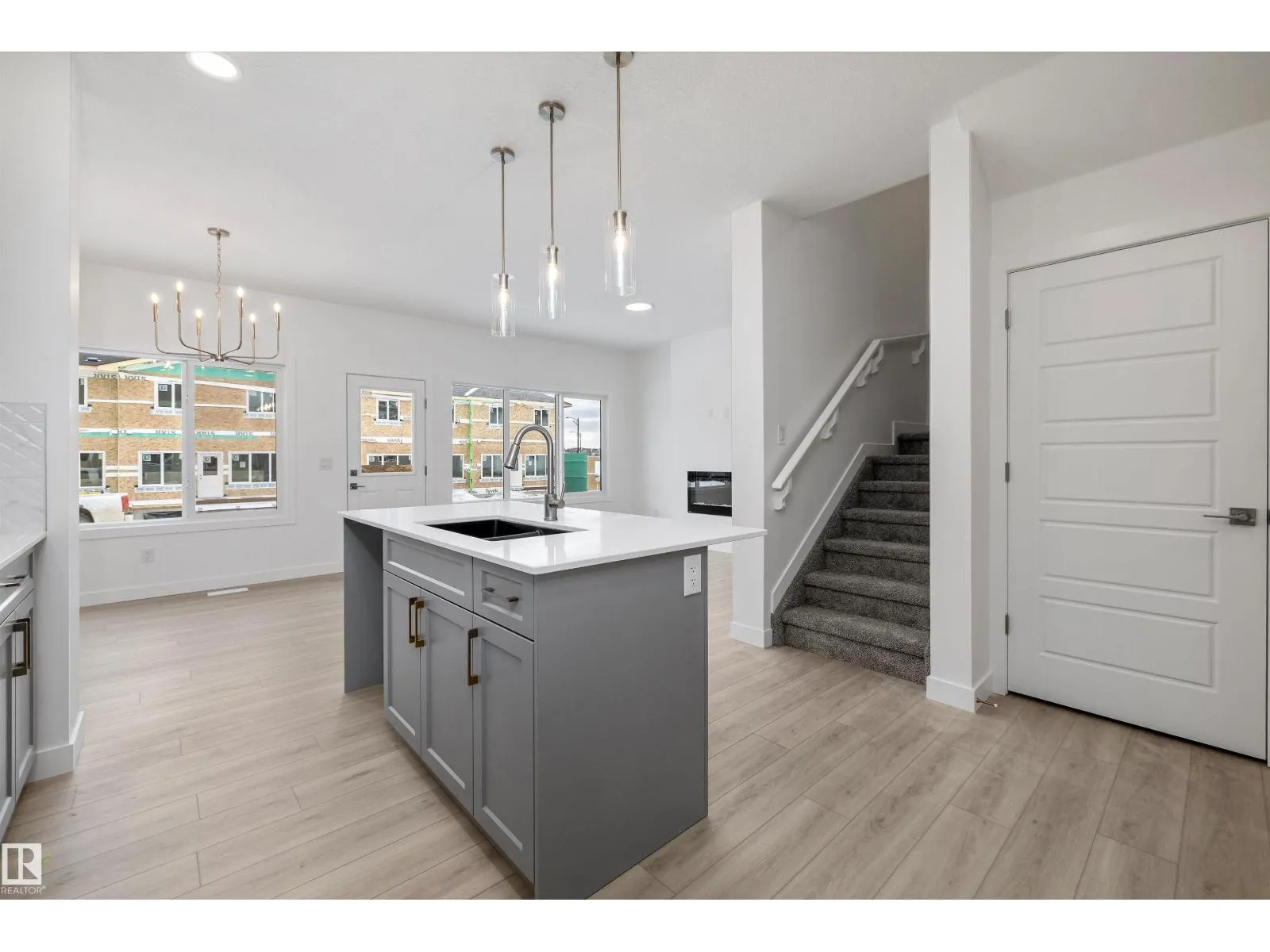 Experience the perfect blend of style and function in The Renew, a sophisticated half-duplex featuring 9-foot ceilings on both the main floor and basement levels. This open-concept home is finished with luxury vinyl plank flooring and a welcoming foyer that leads into a gourmet kitchen. The kitchen is a standout with upgraded soft-close Thermofoil cabinetry, quartz countertops, a corner pantry, and a central island with a Silgranit undermount sink. High-end touches include a chimney-style hood fan, built-in microwave, and elegant pendant lighting. The great room, anchored by a modern electric fireplace, offers large windows and access to the future deck. Upstairs, you will find a versatile bonus room, dedicated laundry, and three spacious bedrooms, including a primary suite with a walk-in closet and private ensuite. Complete with a separate side entrance, a double attached garage with a floor drain, and brushed nickel accents throughout, this home is move-in ready. (id:27476)