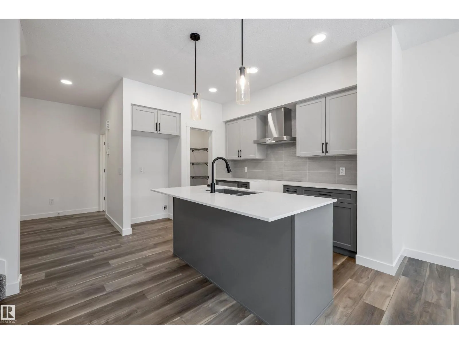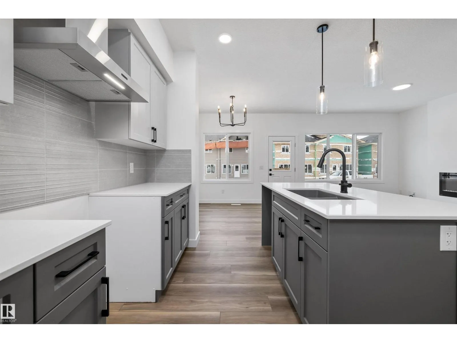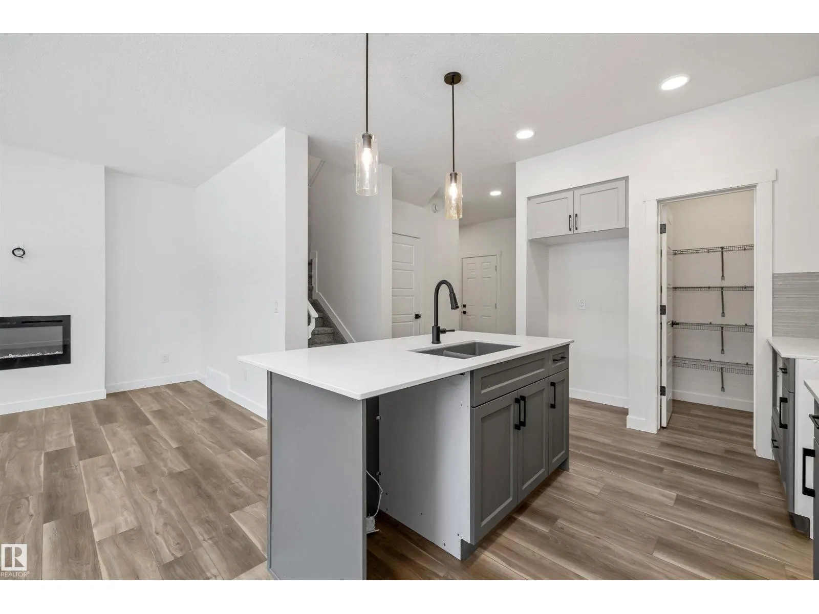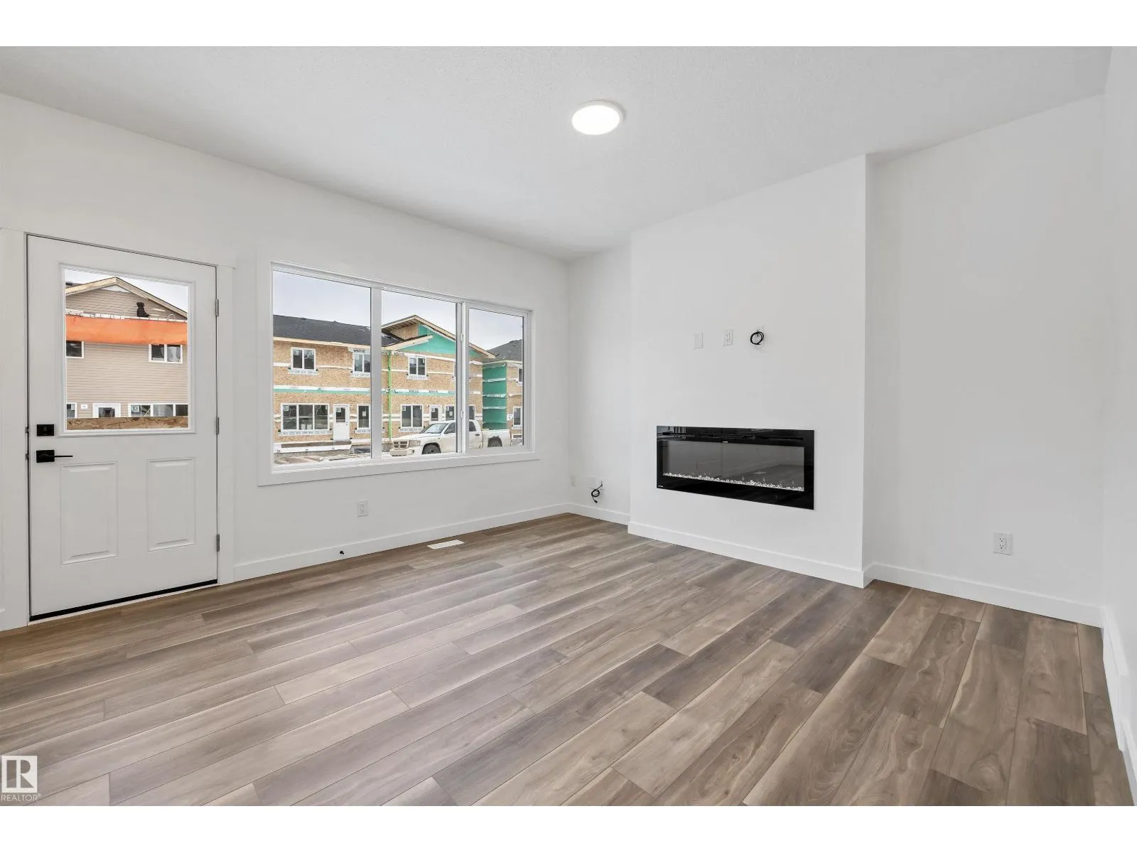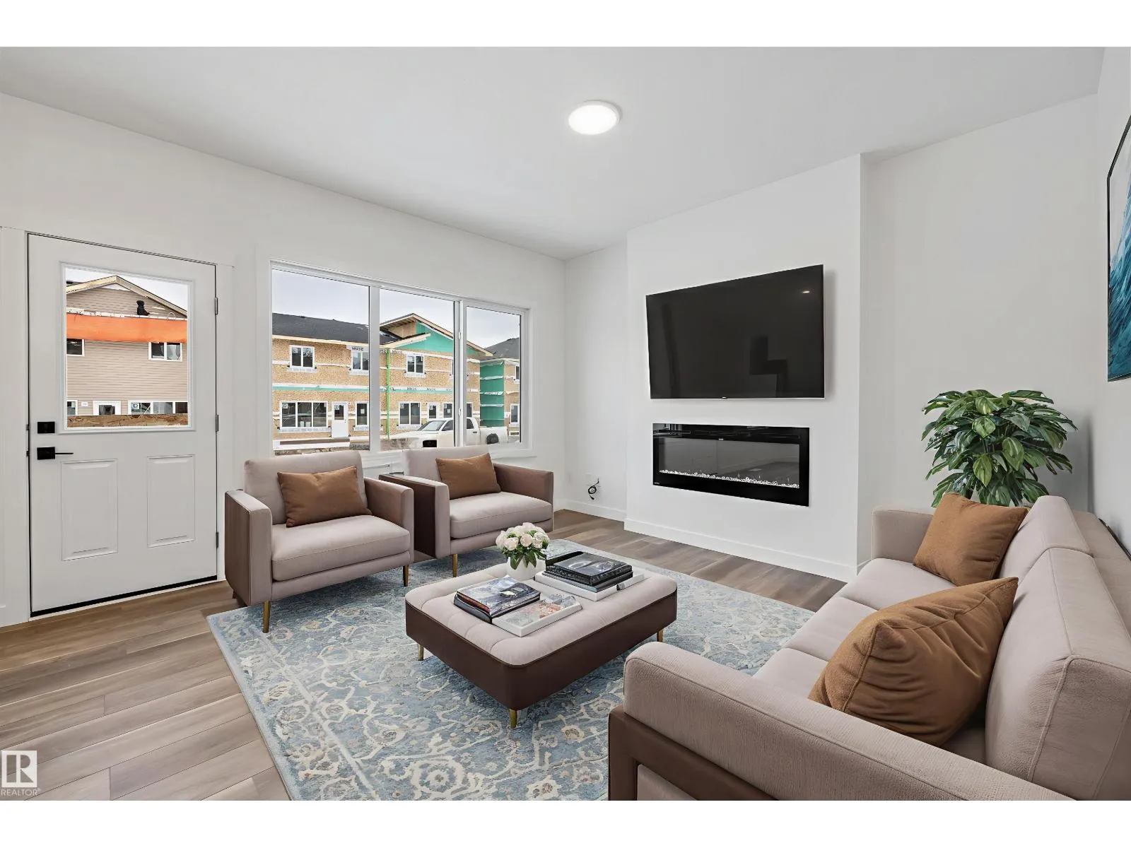 Welcome to The Renew, a sophisticated half-duplex offering exceptional craftsmanship and a thoughtful layout. This home features 9-foot ceilings on both the main and basement levels, paired with luxury vinyl plank flooring for a seamless, modern feel. The gourmet kitchen is a chefâs dream, boasting upgraded soft-close Thermofoil cabinetry, quartz countertops, a corner pantry, and a large island with a Silgranit sink. Premium finishes include a chimney-style hood fan, full-height backsplash, and sleek black plumbing and lighting fixtures throughout. The open-concept great room is centered by a cozy electric fireplace and leads to a backyard ready for your future deck. Upstairs, discover a versatile bonus room, convenient laundry, and three bedrooms, including a primary retreat with a walk-in closet and 3-piece ensuite. Practicality is built-in with a double attached garage featuring a floor drain, a separate side entrance, and basement rough-ins for two additional bedrooms. (id:27476)