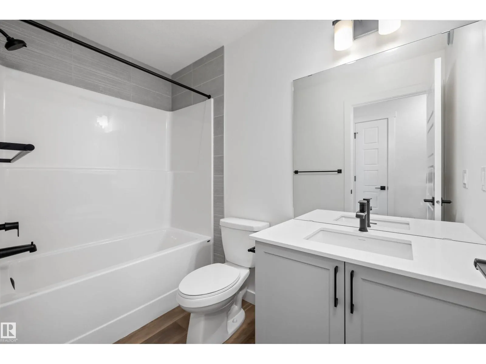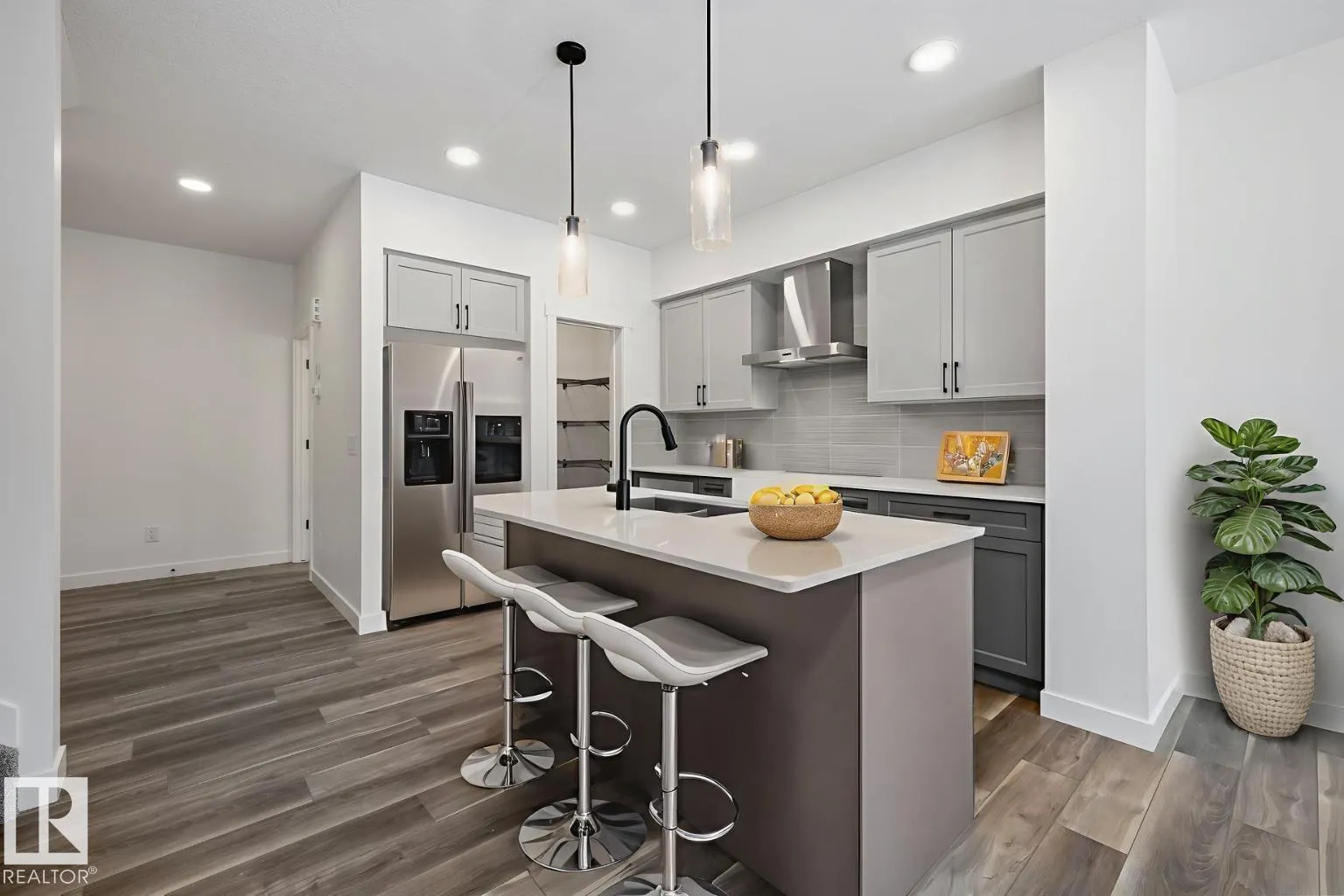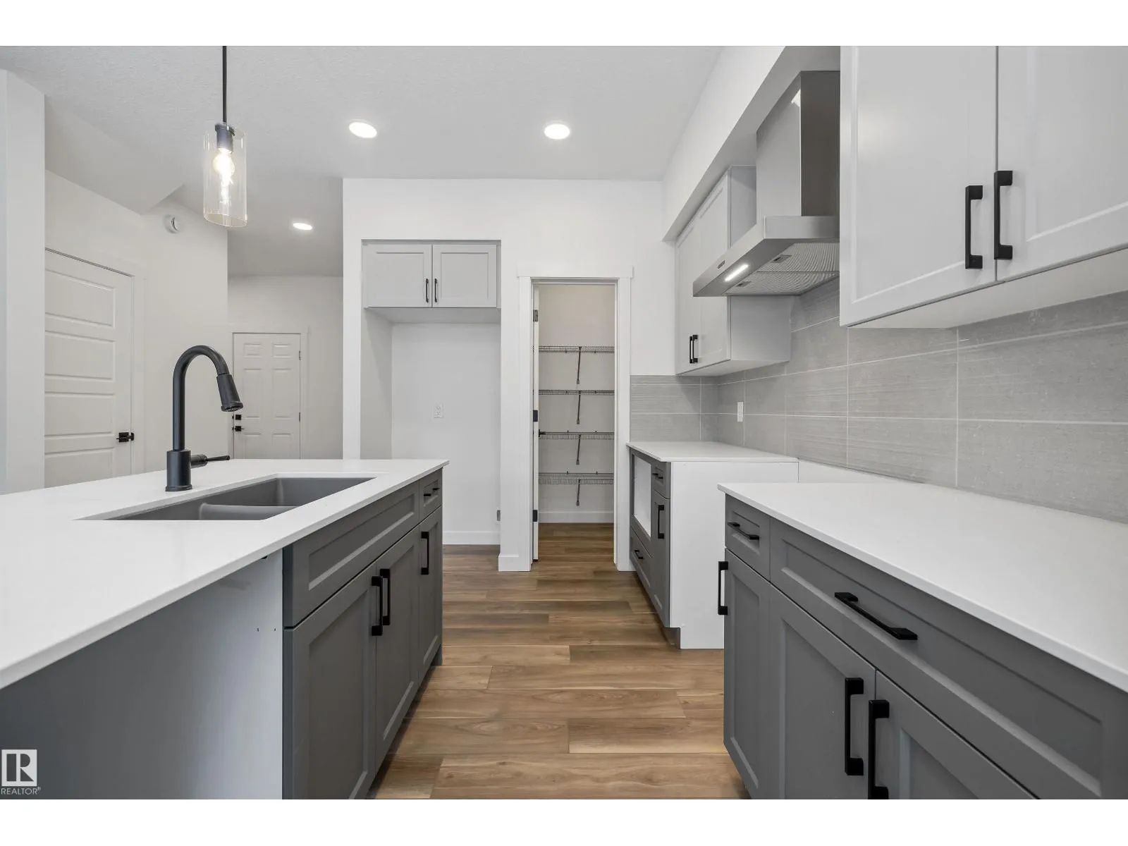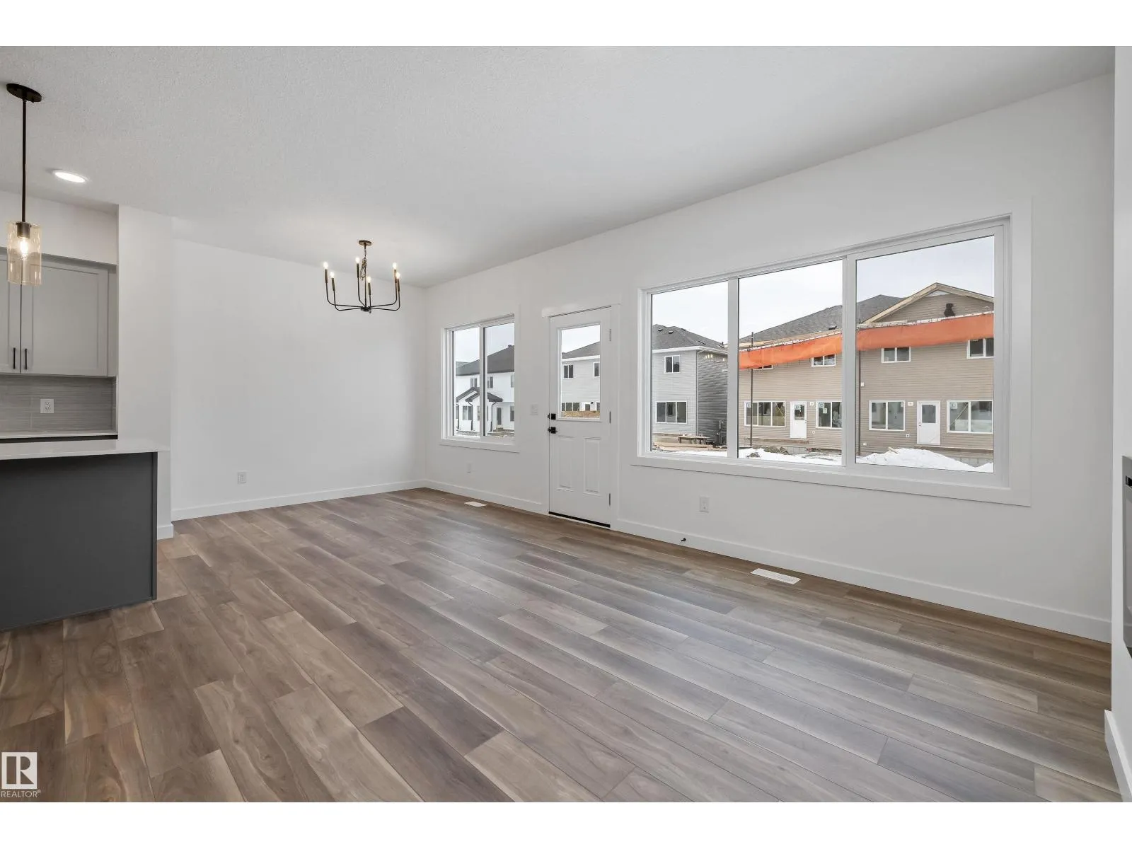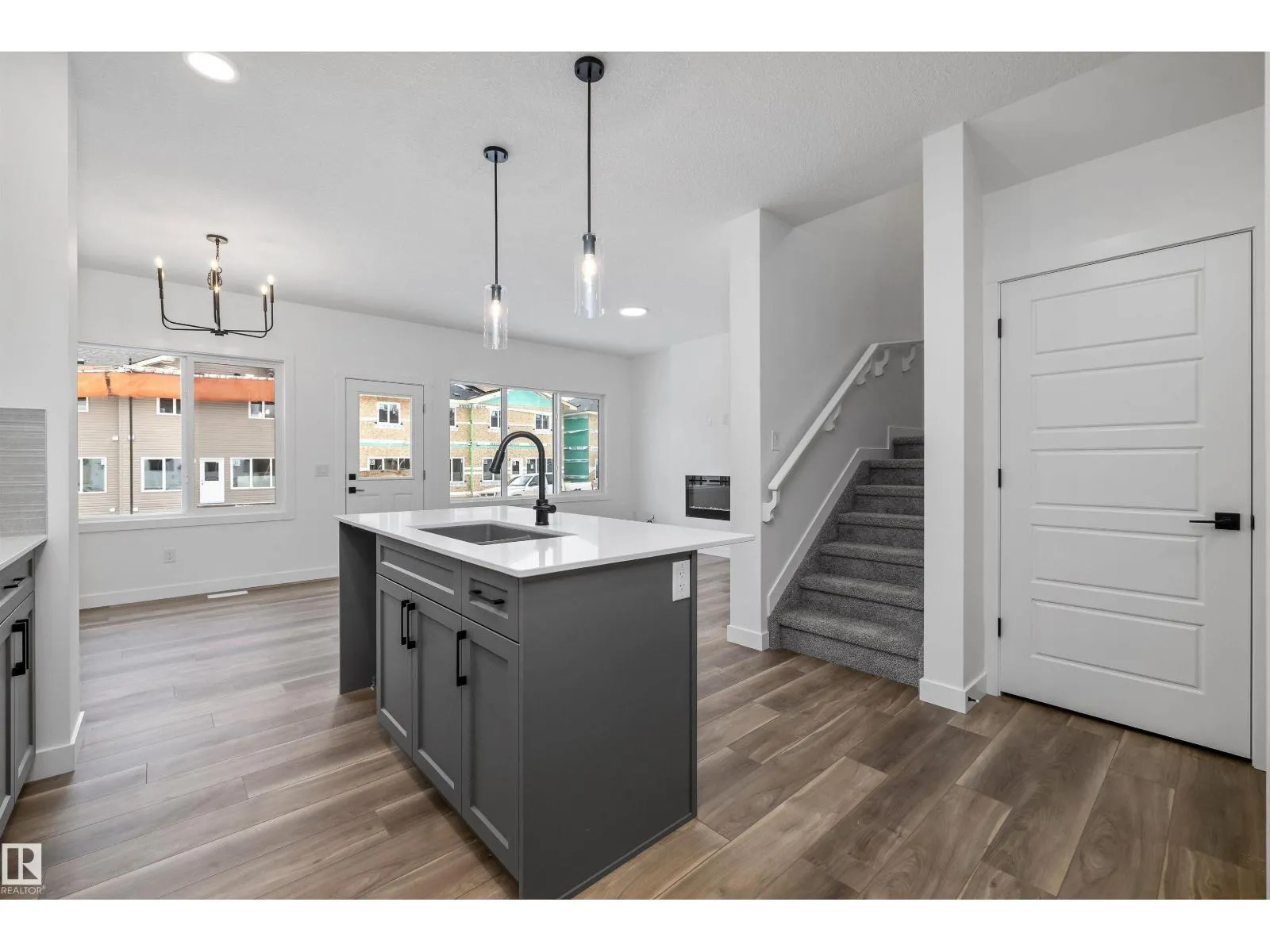 Welcome to The Renew, a sophisticated half-duplex offering exceptional craftsmanship and a thoughtful layout. This home features 9-foot ceilings on both the main and basement levels, paired with luxury vinyl plank flooring for a seamless, modern feel. The gourmet kitchen is a chefâs dream, boasting upgraded soft-close Thermofoil cabinetry, quartz countertops, a corner pantry, and a large island with a Silgranit sink. Premium finishes include a chimney-style hood fan, full-height backsplash, and sleek black plumbing and lighting fixtures throughout. The open-concept great room is centered by a cozy electric fireplace and leads to a backyard ready for your future deck. Upstairs, discover a versatile bonus room, convenient laundry, and three bedrooms, including a primary retreat with a walk-in closet and 3-piece ensuite. Practicality is built-in with a double attached garage featuring a floor drain, a separate side entrance, and basement rough-ins for two additional bedrooms. (id:27476)