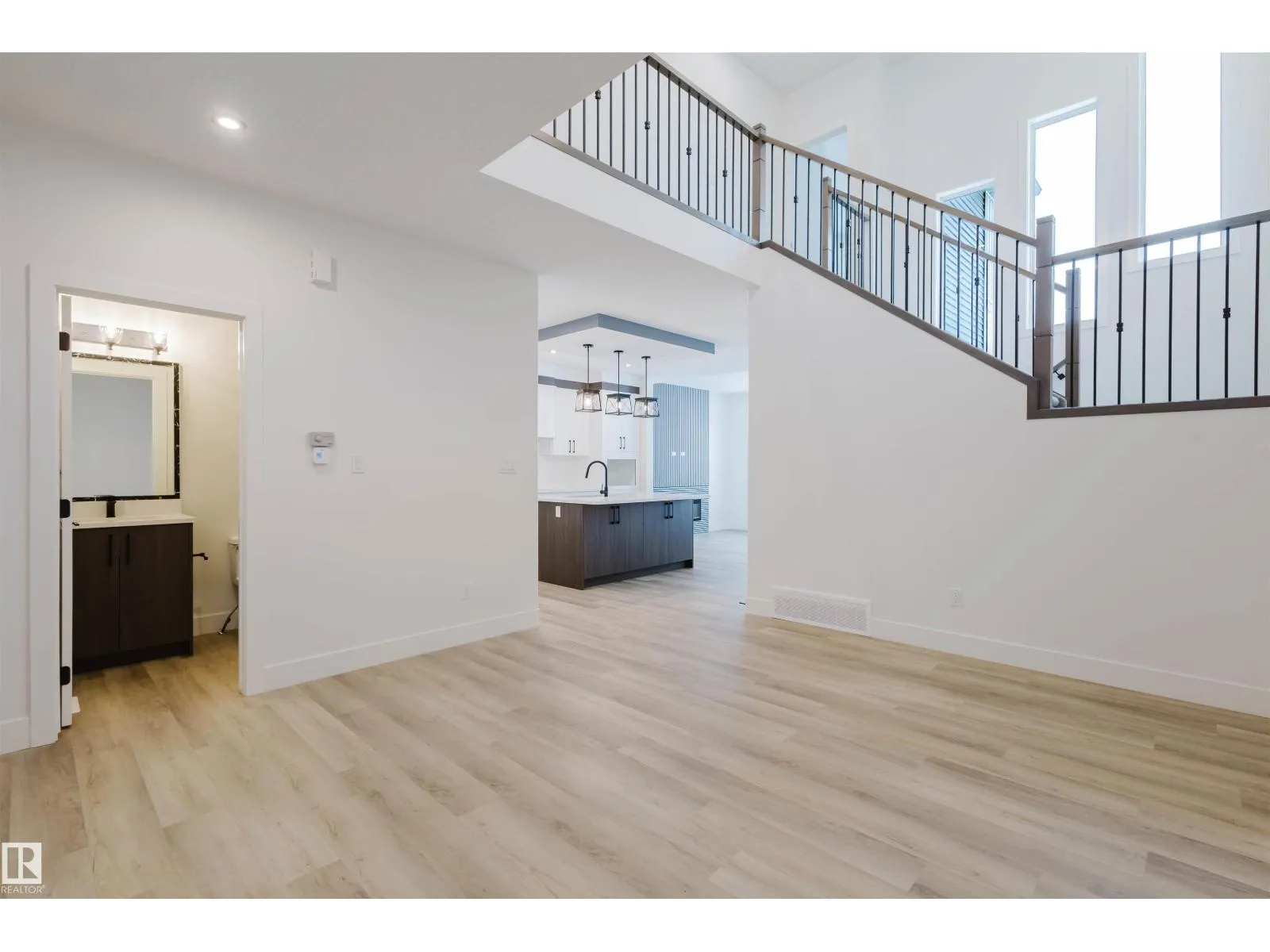 Welcome to this stunning brand new home in the highly sought-after Edgemont community of west Edmonton, backing onto a tranquil dry pond with beautiful open views. Offering 5 bedrooms and 4 full bathrooms, this exceptional property includes a main-floor bedroom with a full washroomâperfect for guests or multi-generational living. The show-stopping open-to-below living room with a fireplace creates a grand yet inviting atmosphere, while the upper level features four generously sized bedrooms and a spacious bonus room ideal for family living. Designed for both functionality and entertaining, the home boasts a well-equipped spice kitchen, an oversized double attached garage, and a convenient side entrance with excellent future development potential. Step out onto the deck and enjoy peaceful pond views, all while being minutes from parks, trails, schools, and shoppingâthis home perfectly blends luxury, space, and lifestyle. (id:27476)