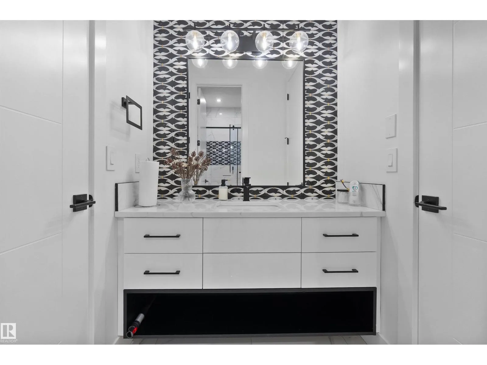 Located in the PRESTIGIOUS Estates of Granville, this custom-built 2 storey home offers 3675 sqft of thoughtfully designed living space W/quality finishes throughout. The main lvl features 10-ft ceilings, an open-concept living area with wide open-to-below design and coffered ceiling, a powder Room wrapped in gorgeous tiles, mudroom with custom cabinetry & a bench, a bright breakfast nook, chefâs kitchen with quartz countertops and SS appliances, and a functional spice kitchen w/gas cooktop. Built-in spkrs and a stylish electric fireplace complete the lvl. The upper lvl offers a spacious bonus area and 4 beds. The master bed features a 5pc ensuite W/ heated floors, vanity area, and large WIC. The 2nd bed has its own ensuite and WIC, while the 3rd and 4th beds share a beautiful Jack and Jill bath. Incl a sprt entrance to a finished legal basement suite and an additional finished inlaw suite. This home is crafted with exceptional attention to detail, offering the perfect blend of LUXURY, COMFORT & ELEGANCE. (id:27476)
