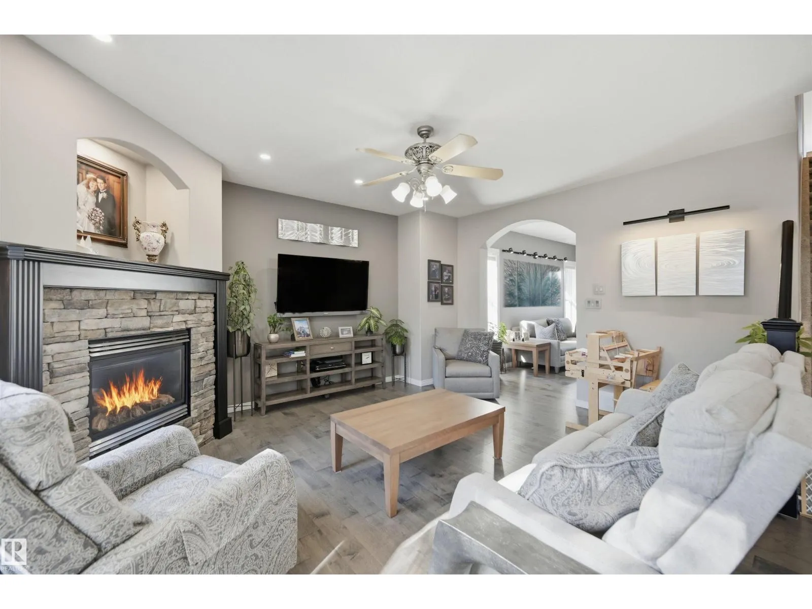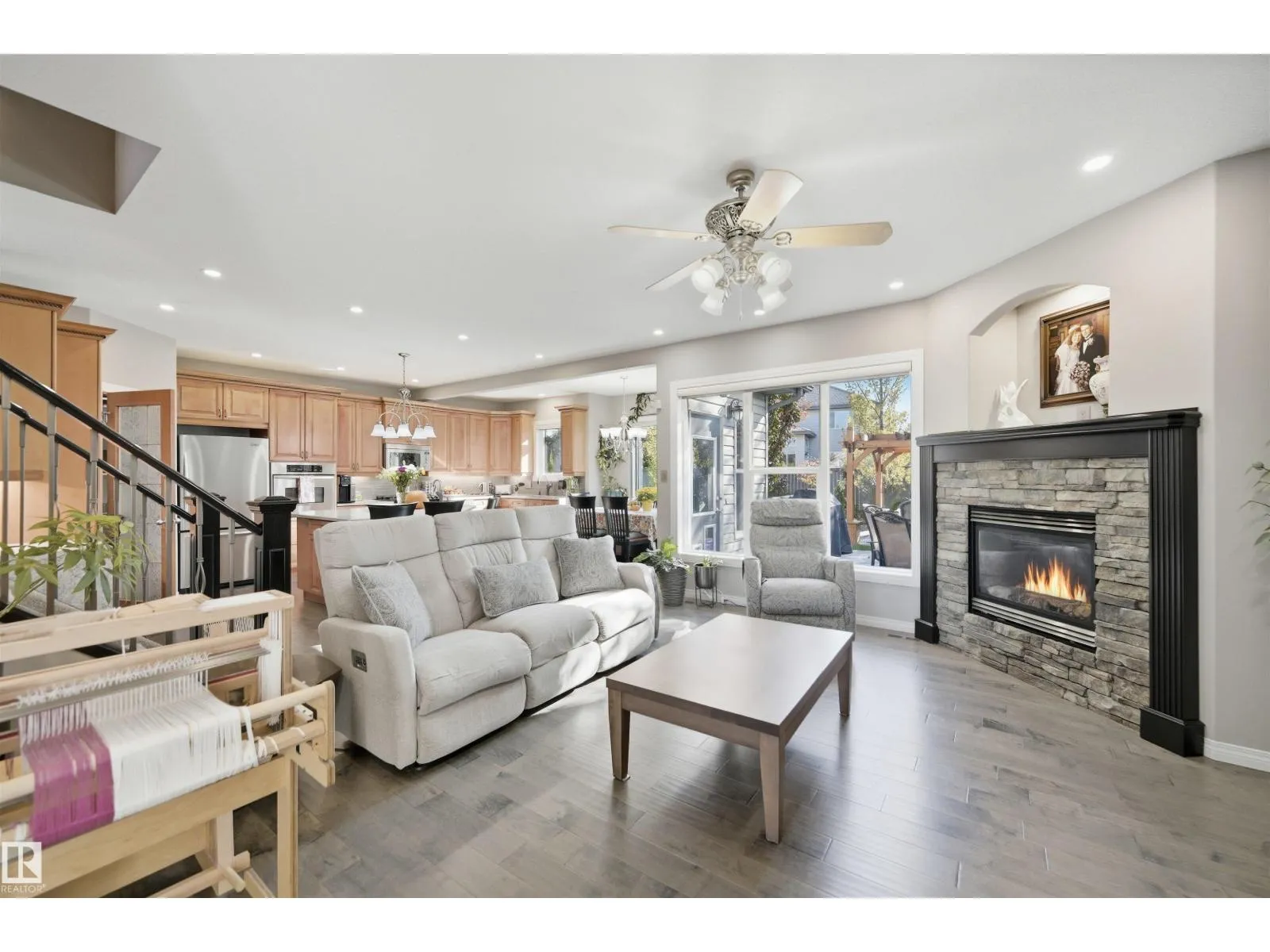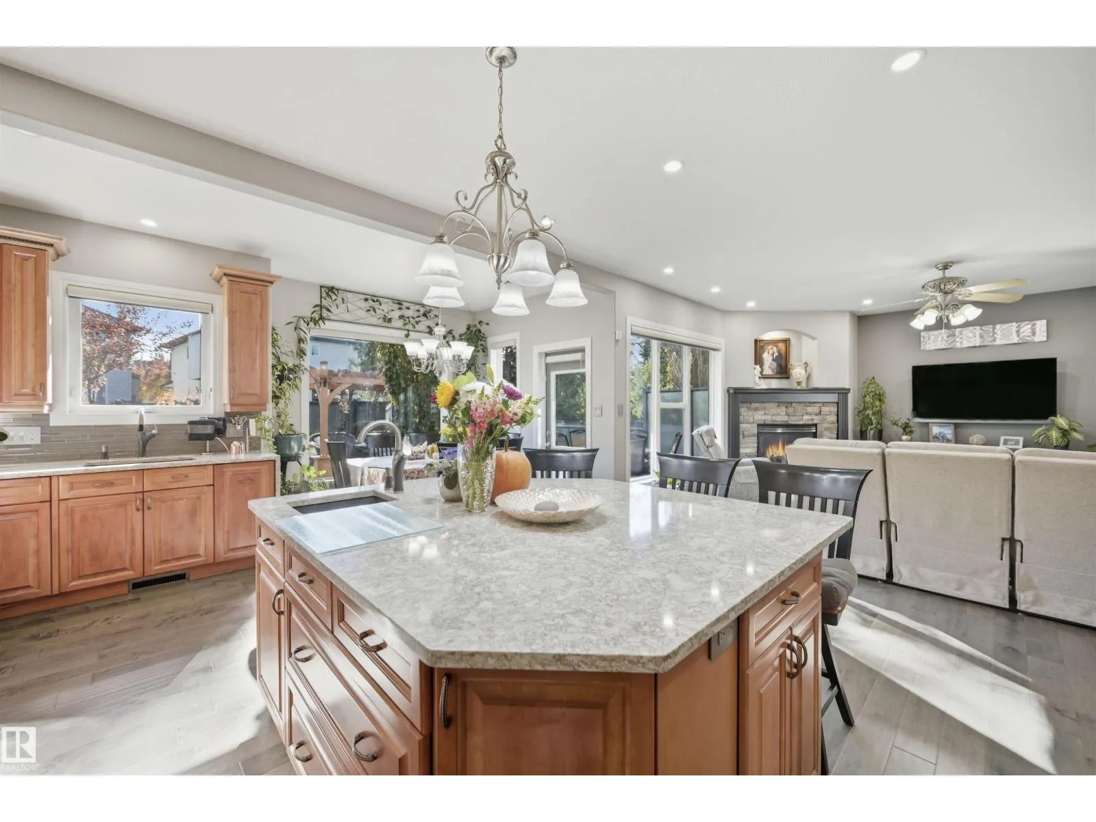 Quiet cul-de-sac living in a family-friendly neighbourhood located close to ravine, creek, and green spaces with extensive walking/biking trails. Close to major routes, amenities, K-12 schools with convenient bussing. Luxury, comfort & functionality shine in this 5-bedroom-up home with spacious bonus room and 3 gas fireplaces (thermostat controlled). You will love the Dream kitchen with walk-thru pantry, dual sinks, double ovens, gas stove, quality cabinetry & Cambria quartz counters. Direct access to deck with remote awning and a nature-lovers backyard featuring low-maintenance landscaping, water feature, irrigation & gazebo. The fully finished basement has a bedroom, bath, rec room and office. Oversized heated garage, A/C, water softener, security system & many upgrades throughout. An exceptional place to call home. A must to see! (id:27476)