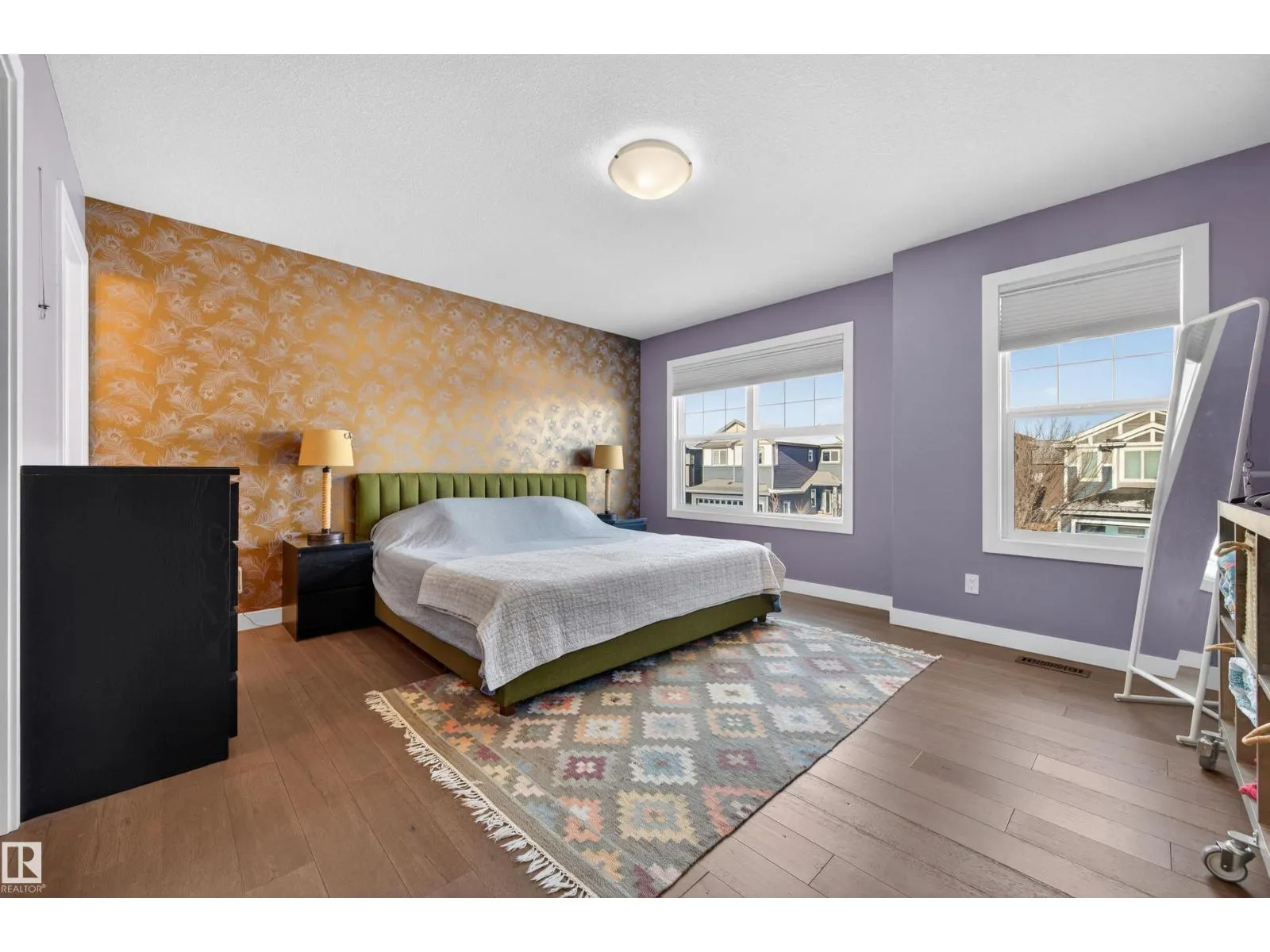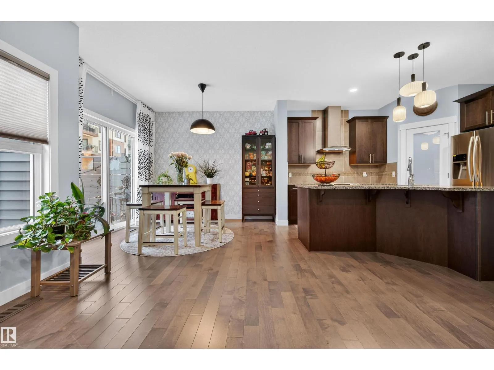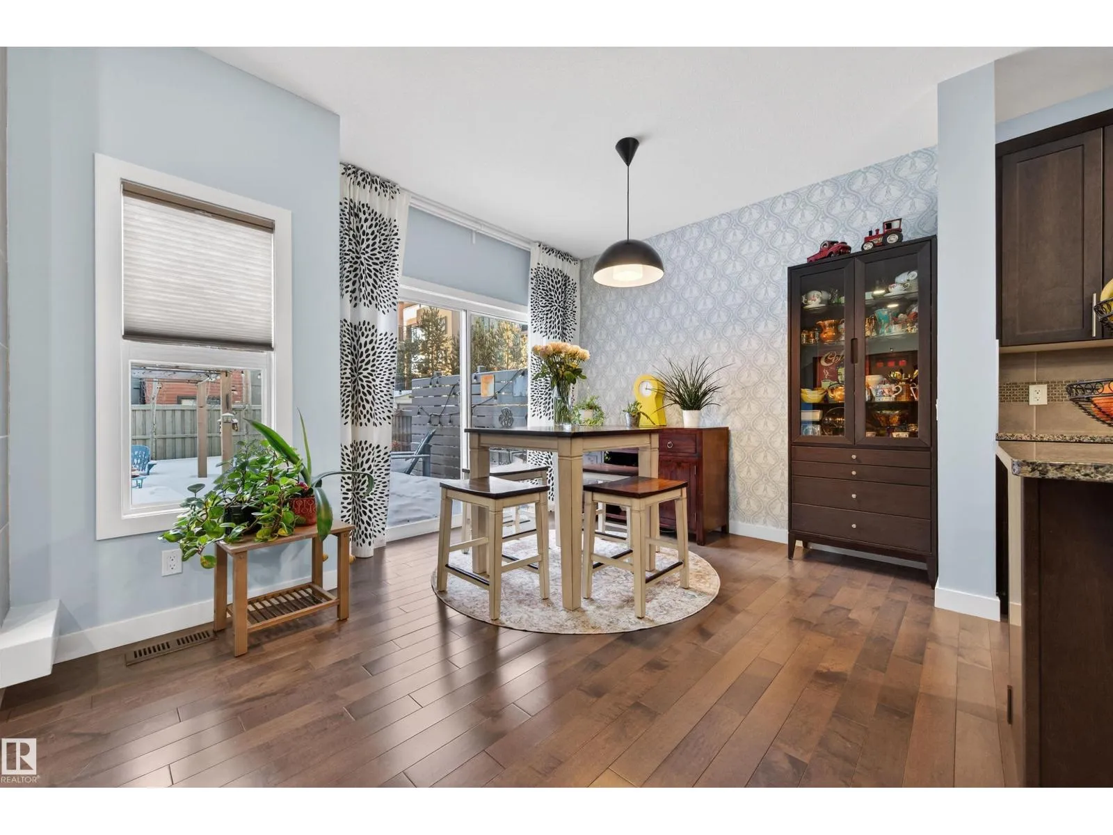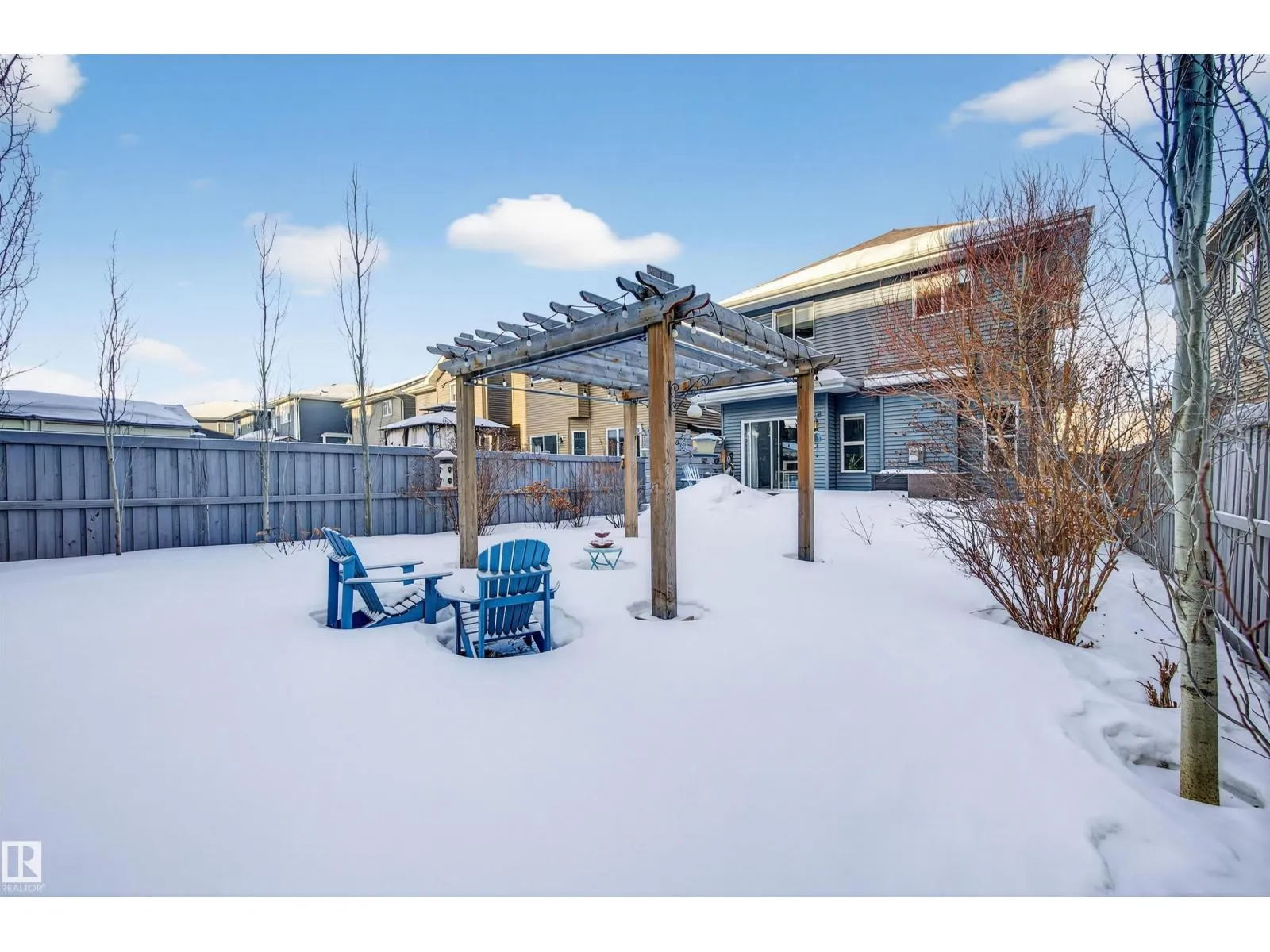 Original owner! Welcome to this spacious detached Daytona home set on a generous lot in Rosenthal's sought-after, family-oriented neighbourhood. Step inside through the wide entryway to discover an open-concept kitchen, dining area, and living room featuring a cozy gas fireplace. This home features 9â ceilings, pot lights, Hunter Douglas blinds, granite countertops, a walk-in pantry, a new stove (2026), and beautiful hardwood floors. Upstairs, youâll find two good size bedrooms, a four-piece bathroom, and a convenient laundry room. The spacious primary suite offers a double vanity, an ensuite shower, and a walk-in closet with custom shelving. The basement remains unfinished, providing ample opportunity for customization. Double attached garage feature epoxy floors. Enjoy a fully landscaped and fenced backyard complete with a charming pergolaâperfect for outdoor entertaining or relaxing evenings. Easy access to nearby schools , WEM, Costco, Public transportation. (id:27476)
